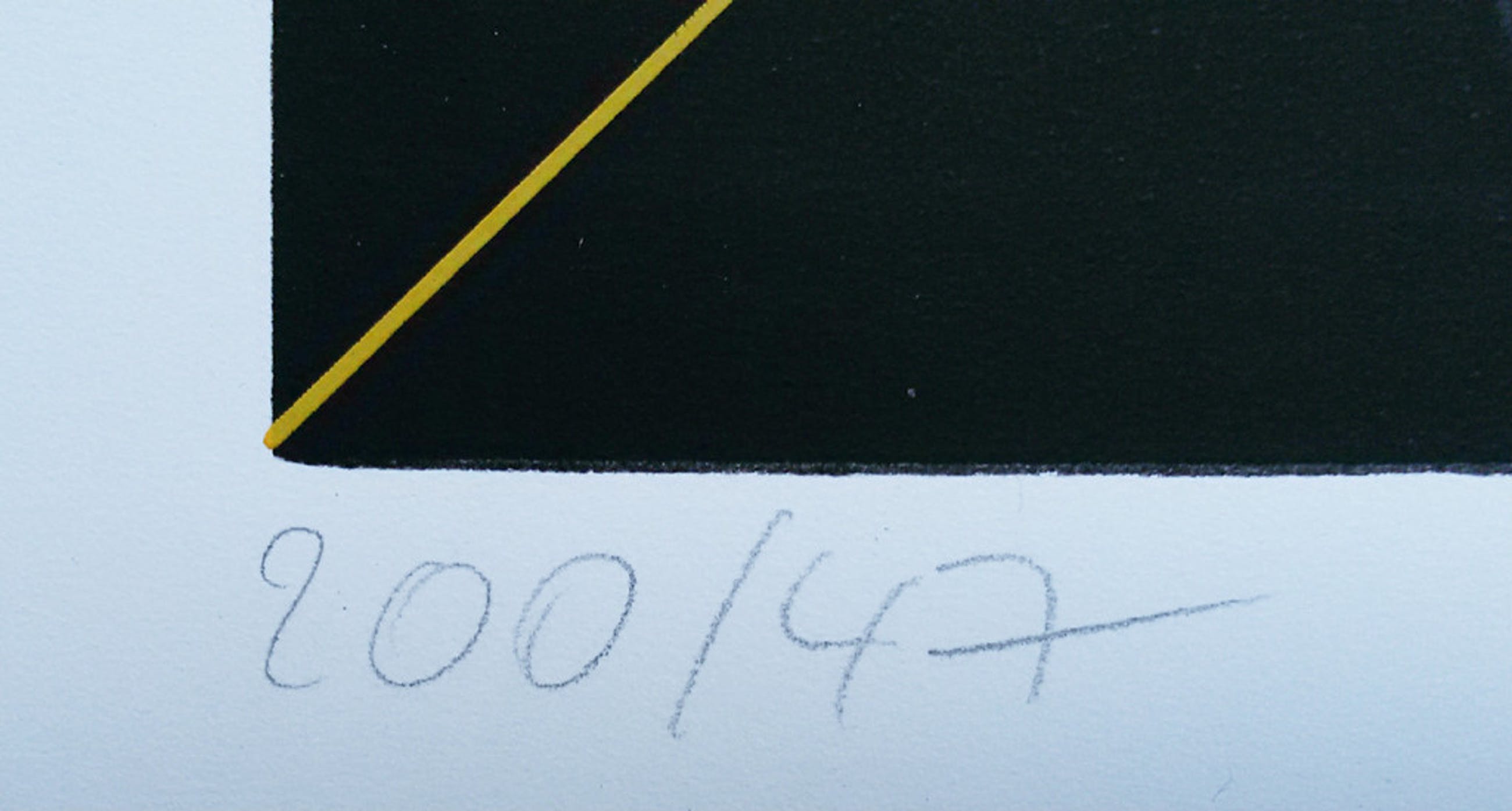 Karakteristiek, geometrisch werk van de Tsjechische kunstenaar Karel Novosad, vooral bekend in Duitsland en natuurlijk Tsjechië. Zeefdruk op wit plastic, met potlood gesigneerd, gedateerd (73) en genummerd (47/200). In zeer goede conditie.