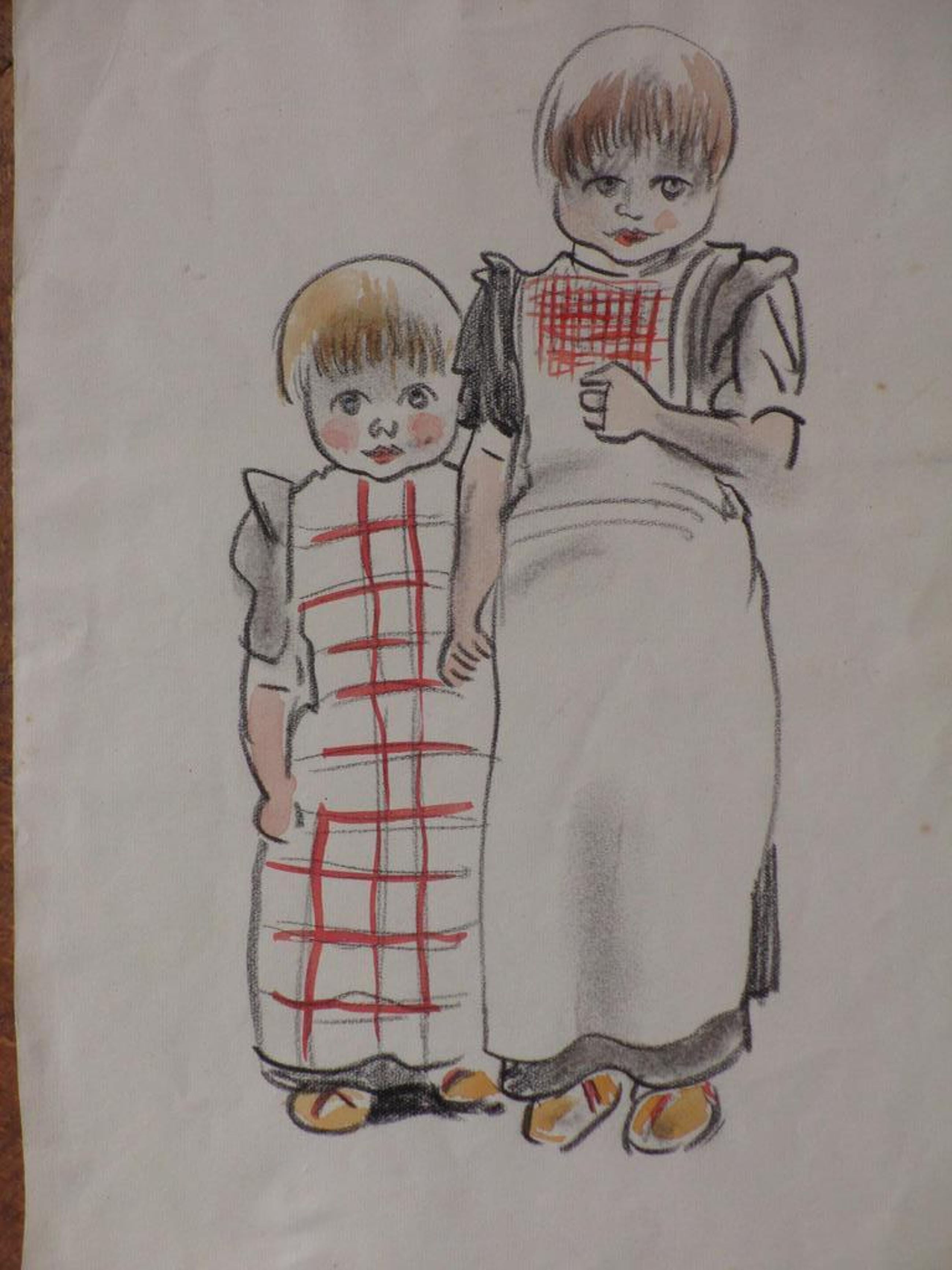 Voorstelling van twee kinderen in Bunschoter klederdracht