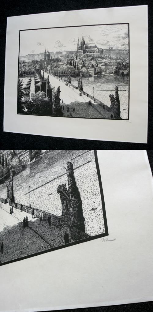Karel Vik - Prag, Karlsbrücke. großer Holzschnitt, 1923.