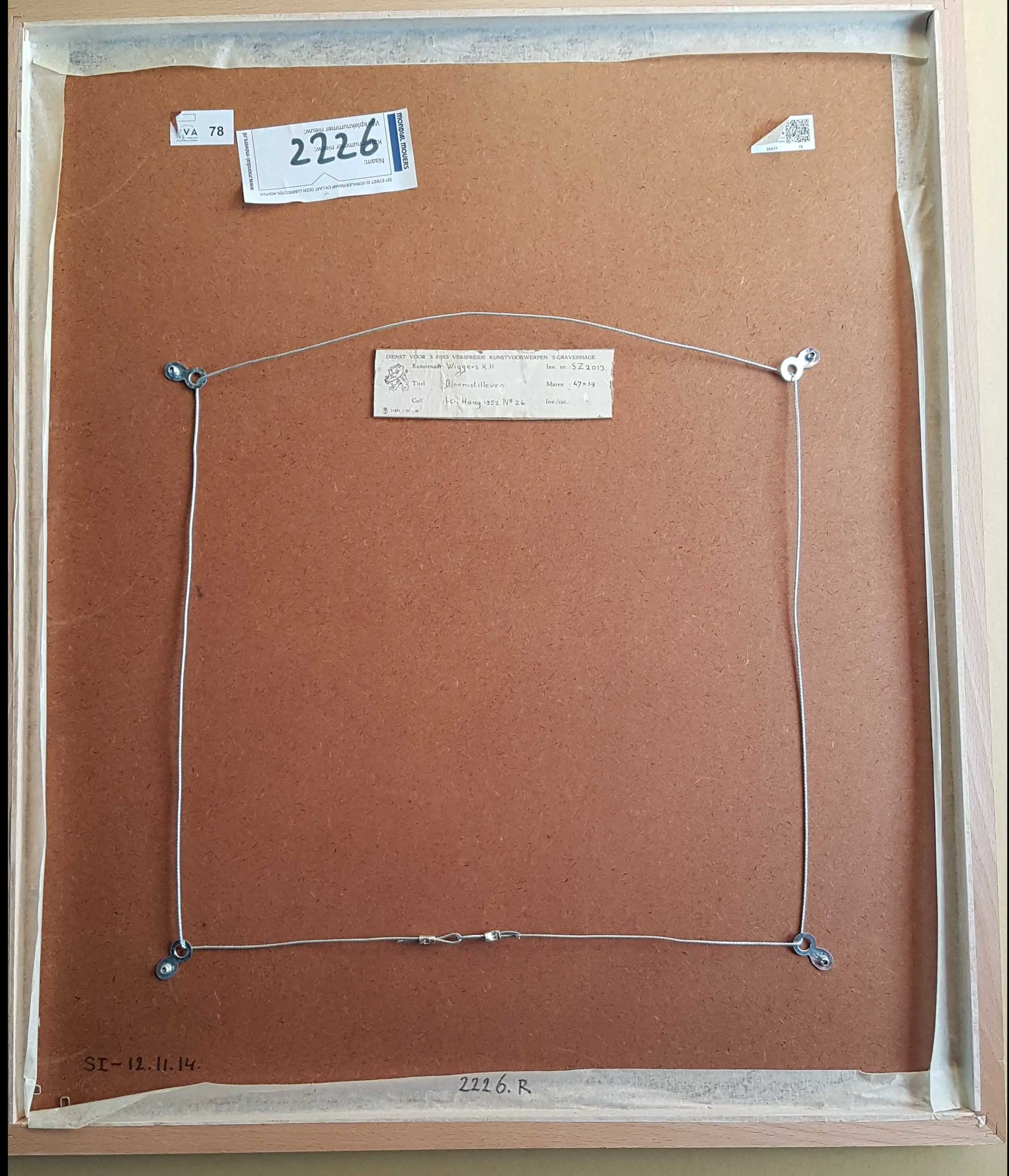 Herkomst: Dienst voor 's Rijks Verspreide Kunstvoorwerpen, s'Gravenhage invoice .nr. SZ 2013, Collectie Den Haag nr 026