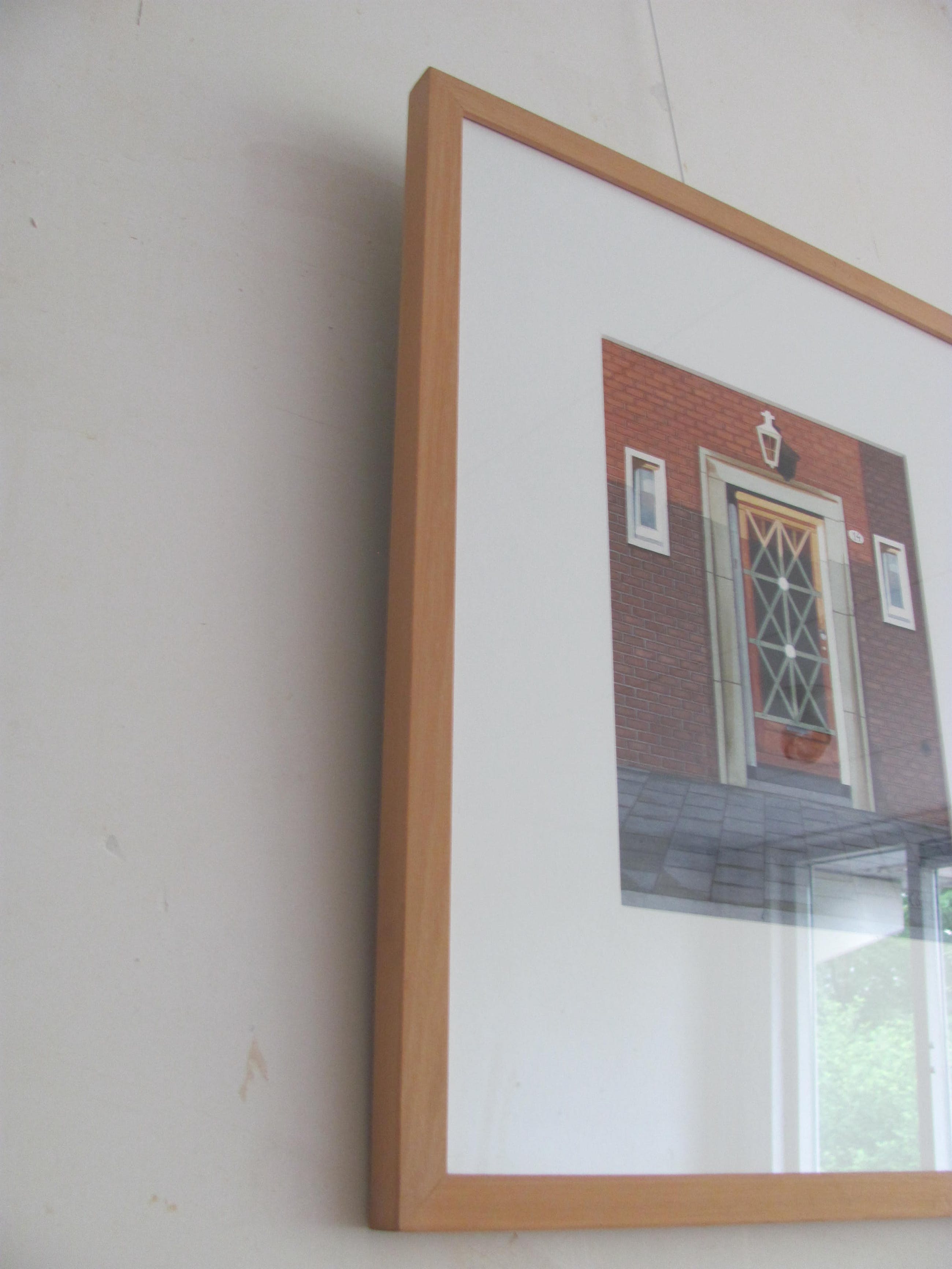 Herkenbare afbeelding van een deur van een Wederopbouw-woning, met een mooie slagschaduw.