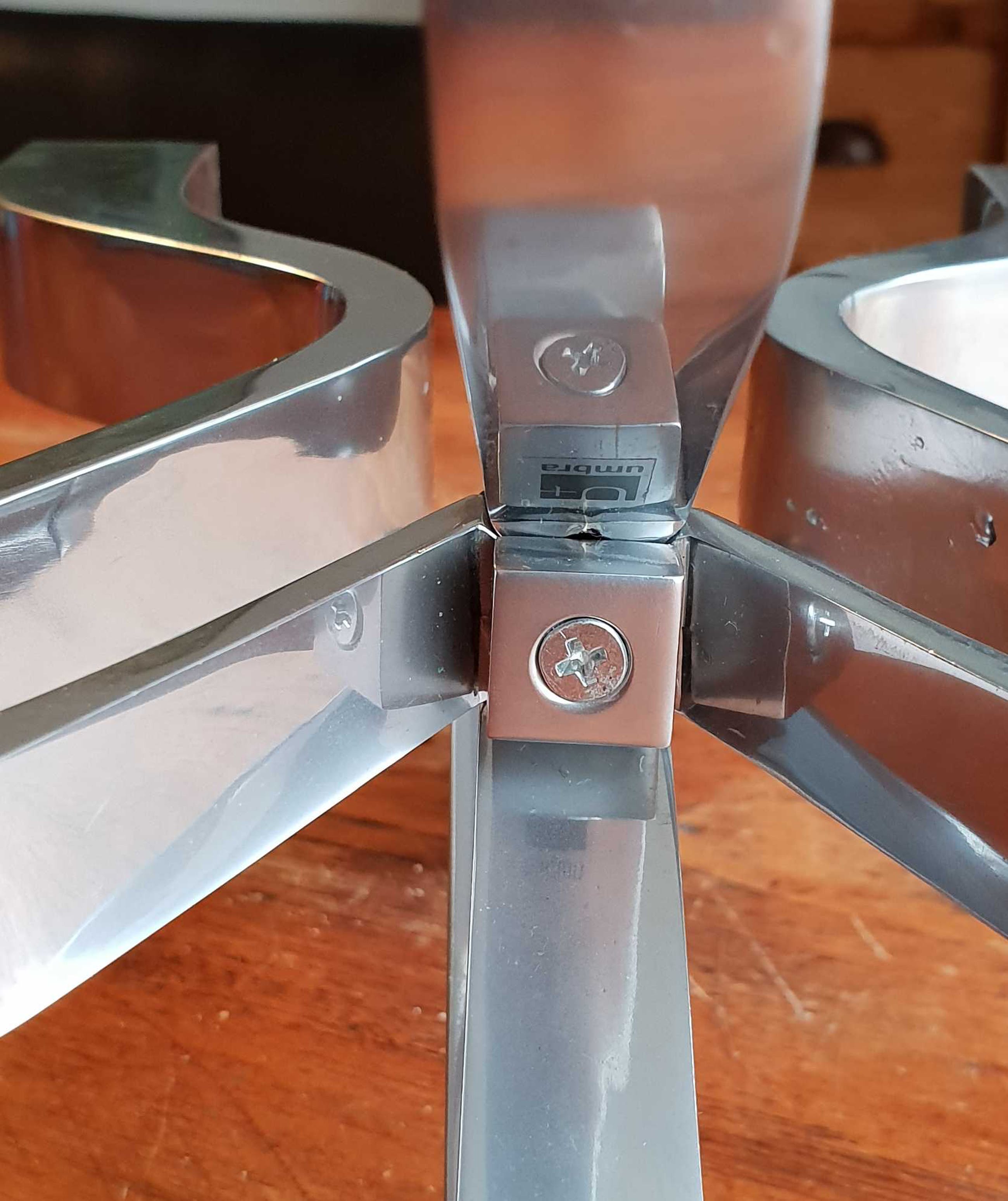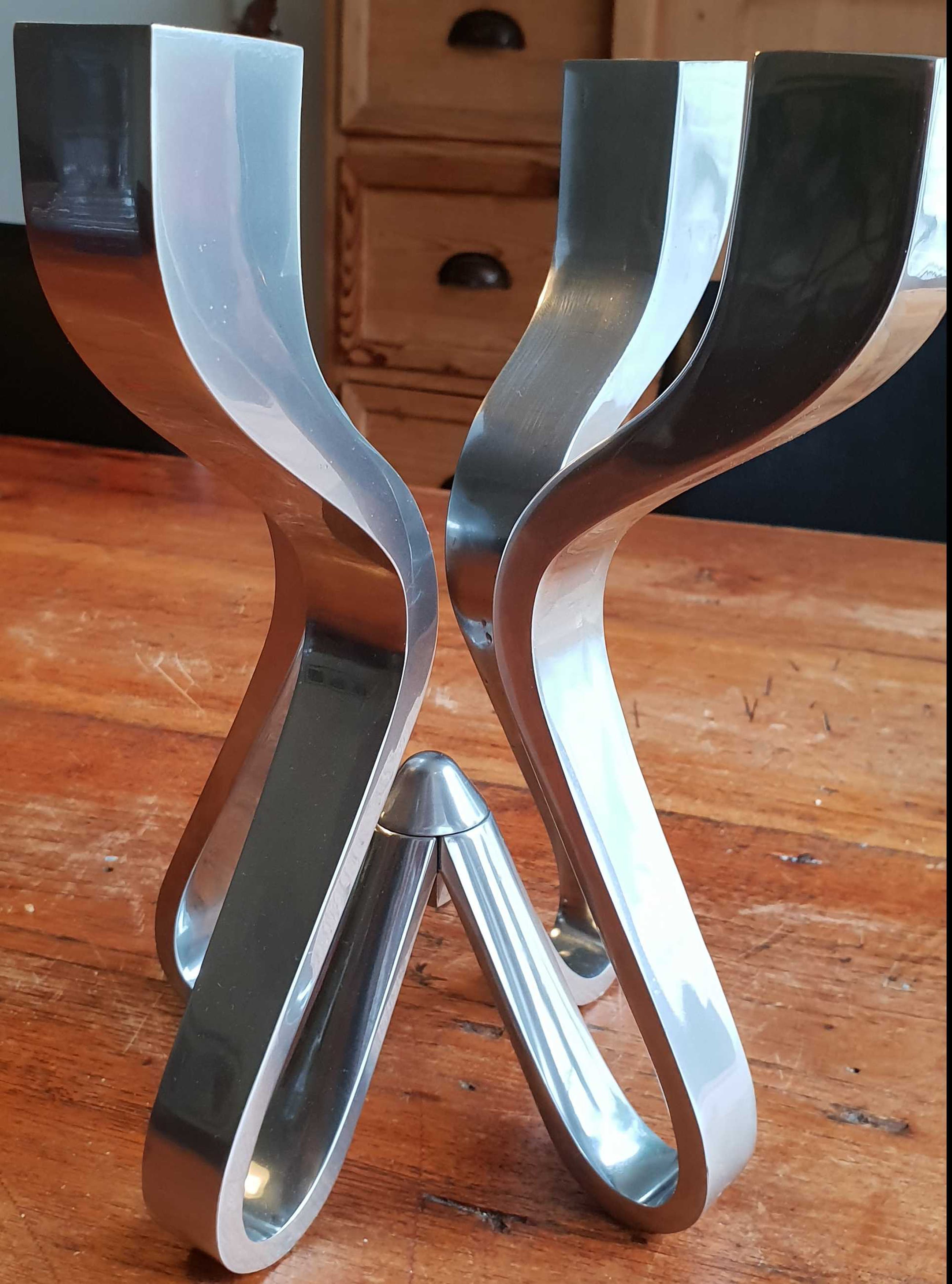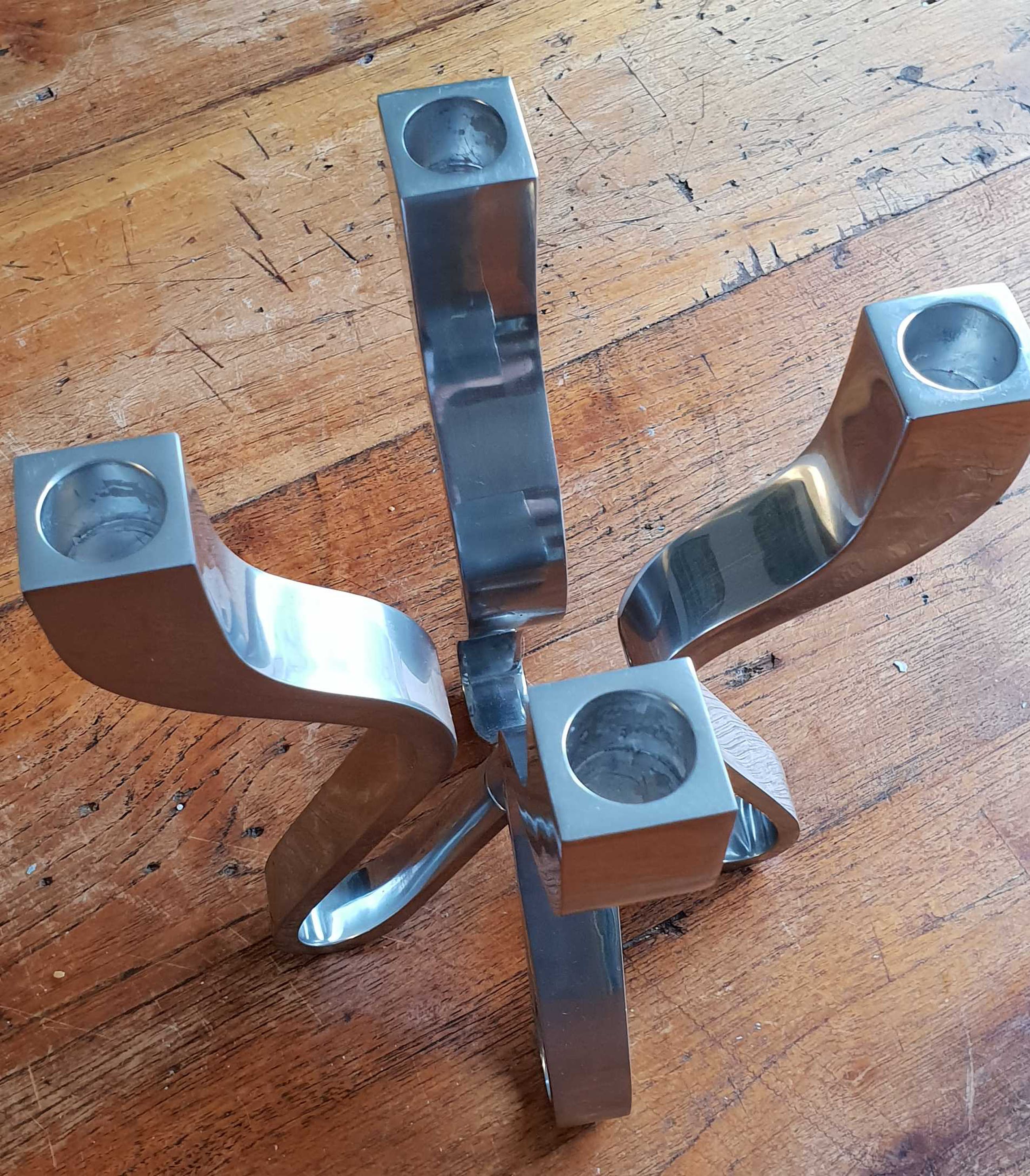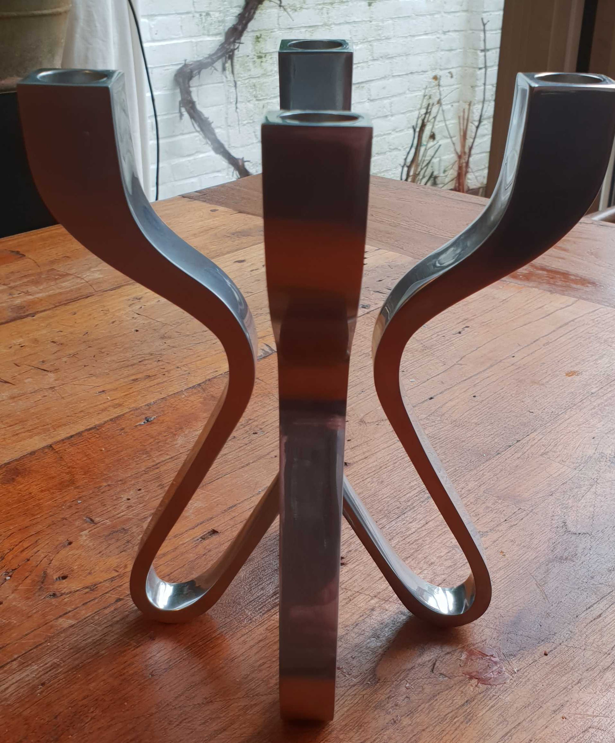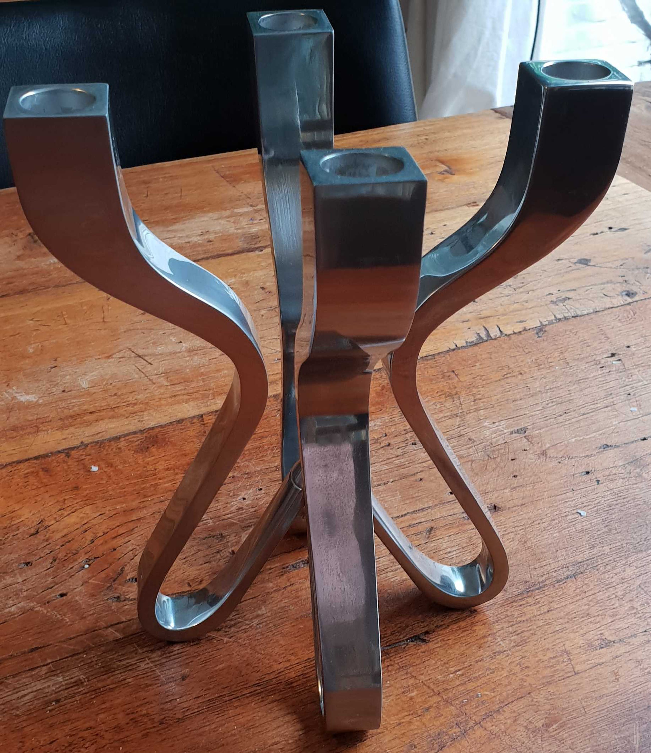 Prachtige moderne chroomstalen 4-armige kandelaar. Model 'Chorus', ontworpen door Karim Rashid in 2002. Geproduceerd door Umbra, Canada.