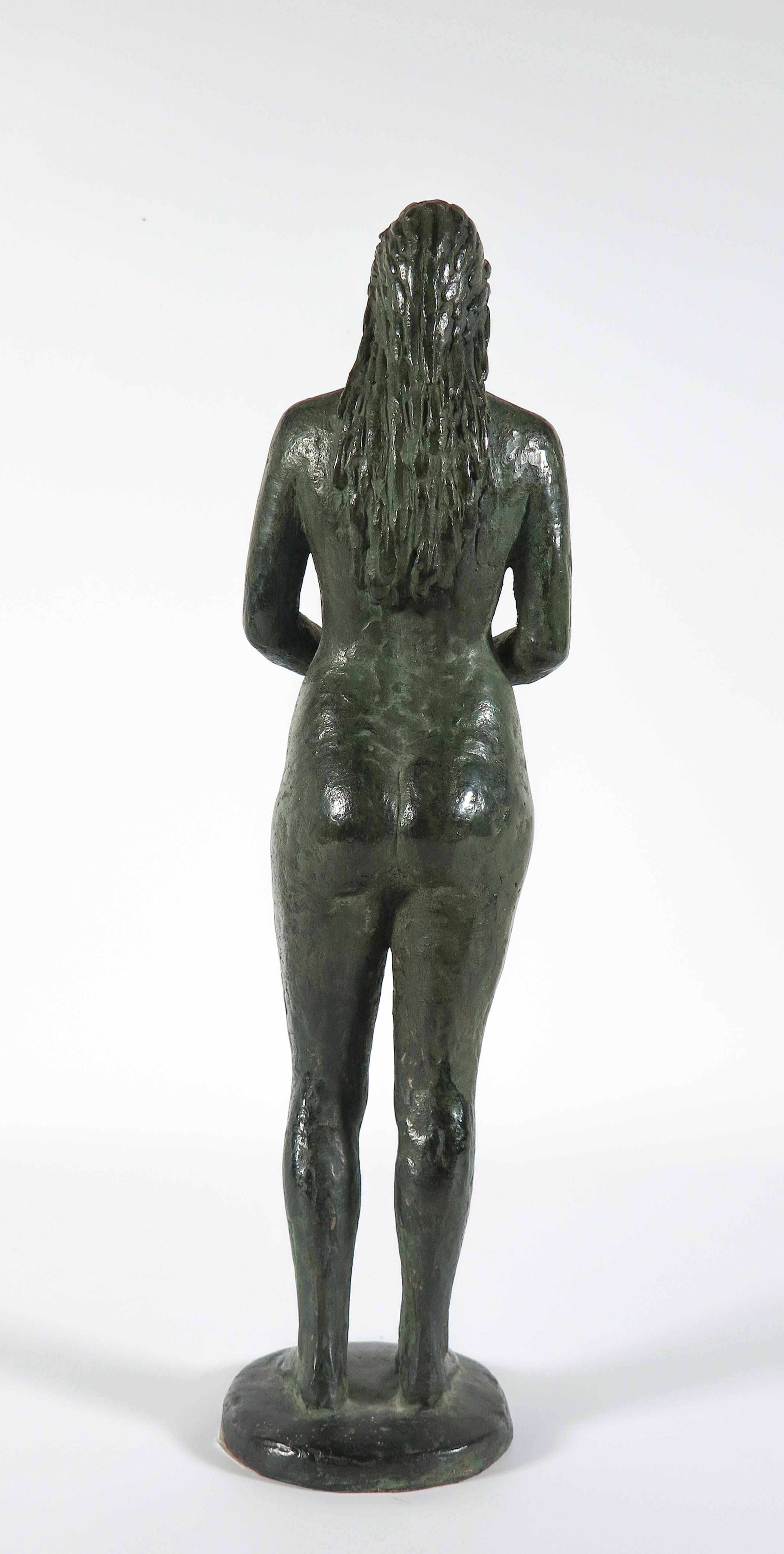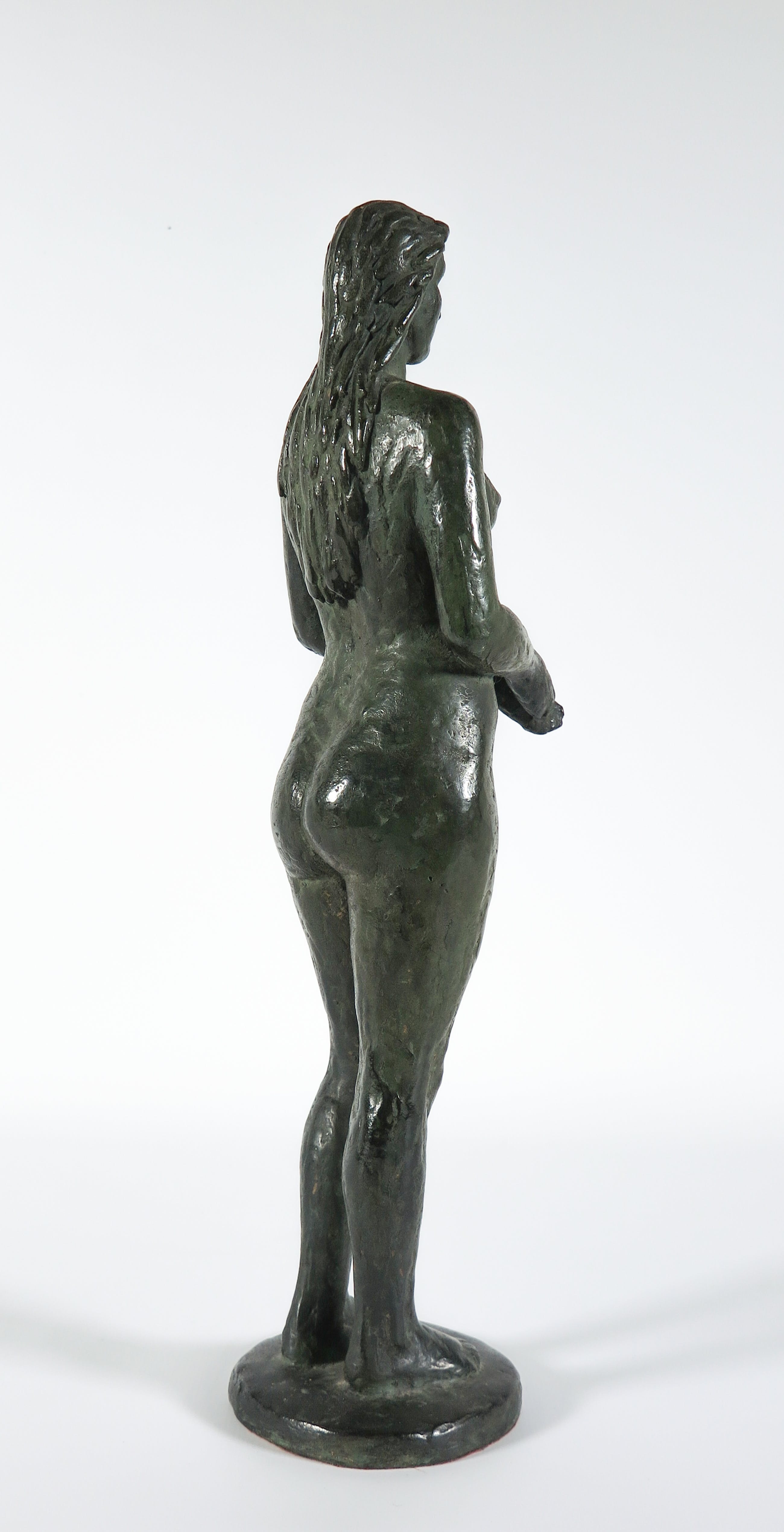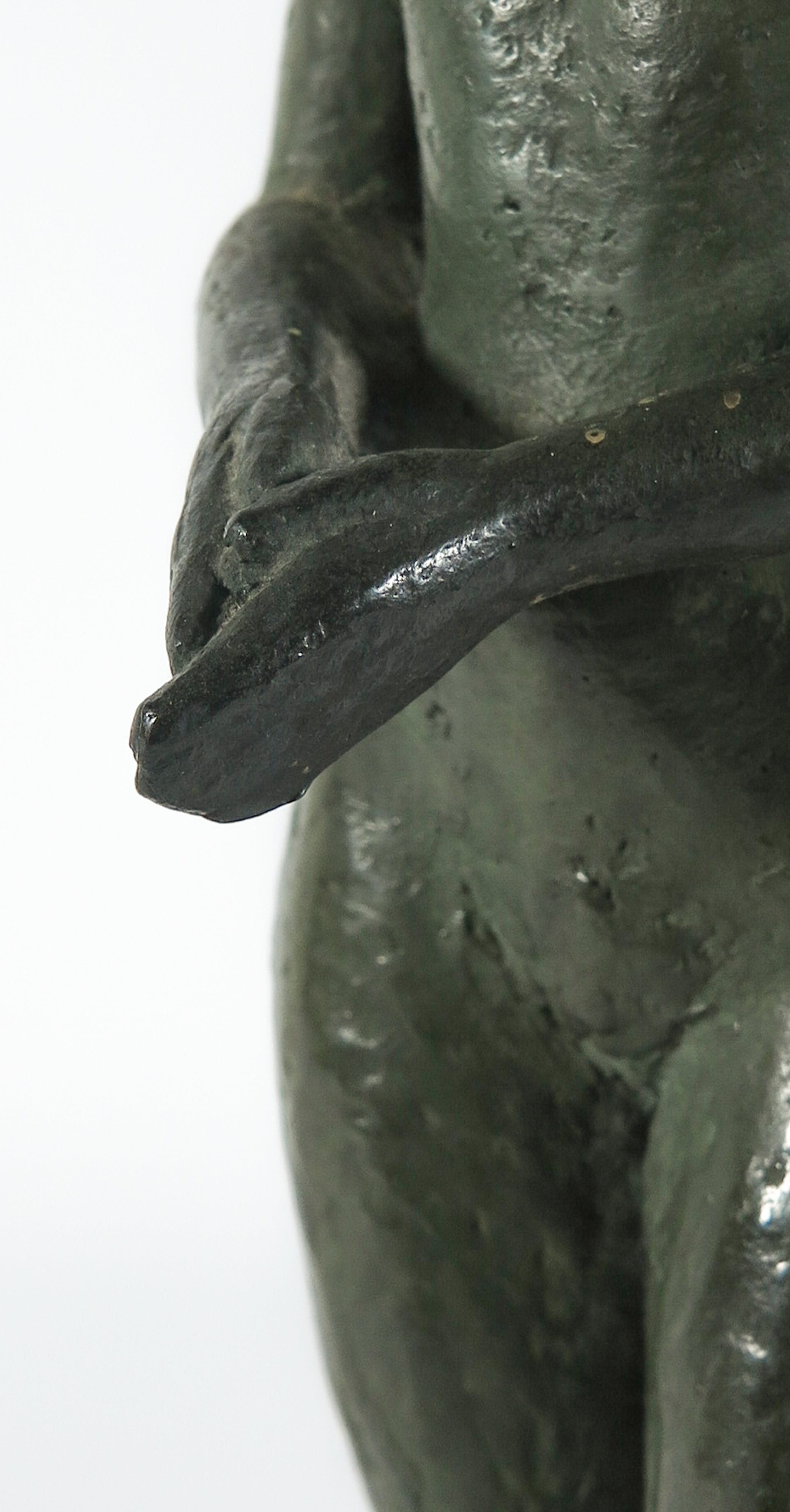 Staand bronzen naakt, getiteld Gwen, door de Amsterdamse kunstenares Karin Beek.