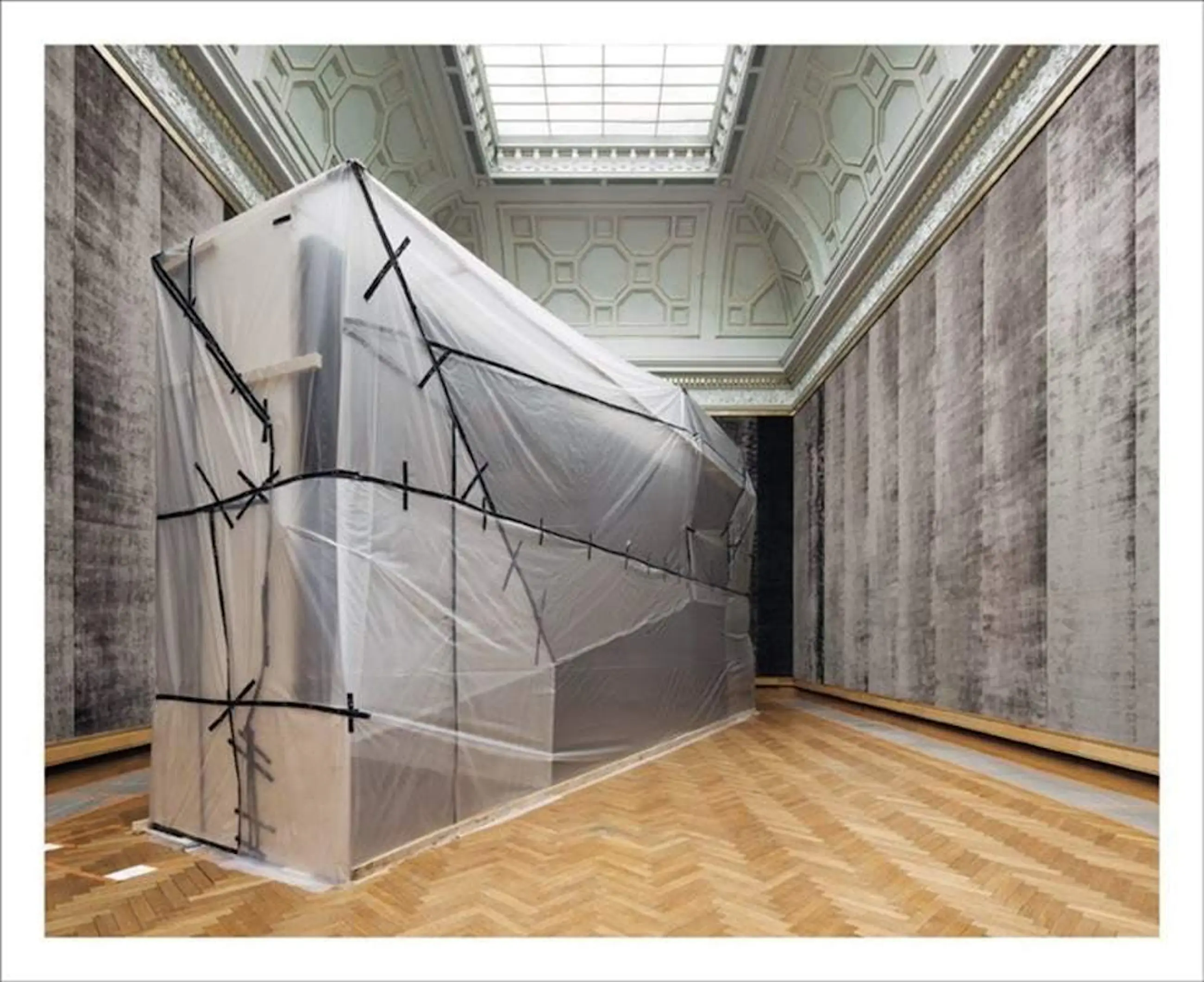 Op de foto zie je de ingepakte schilderijen van Rubens in de Rubenszaal van het KMSKA tijdens de renovatie van het museum. Fotograaf Karin Borghouts volgde de verbouwing van het museum op de voet.