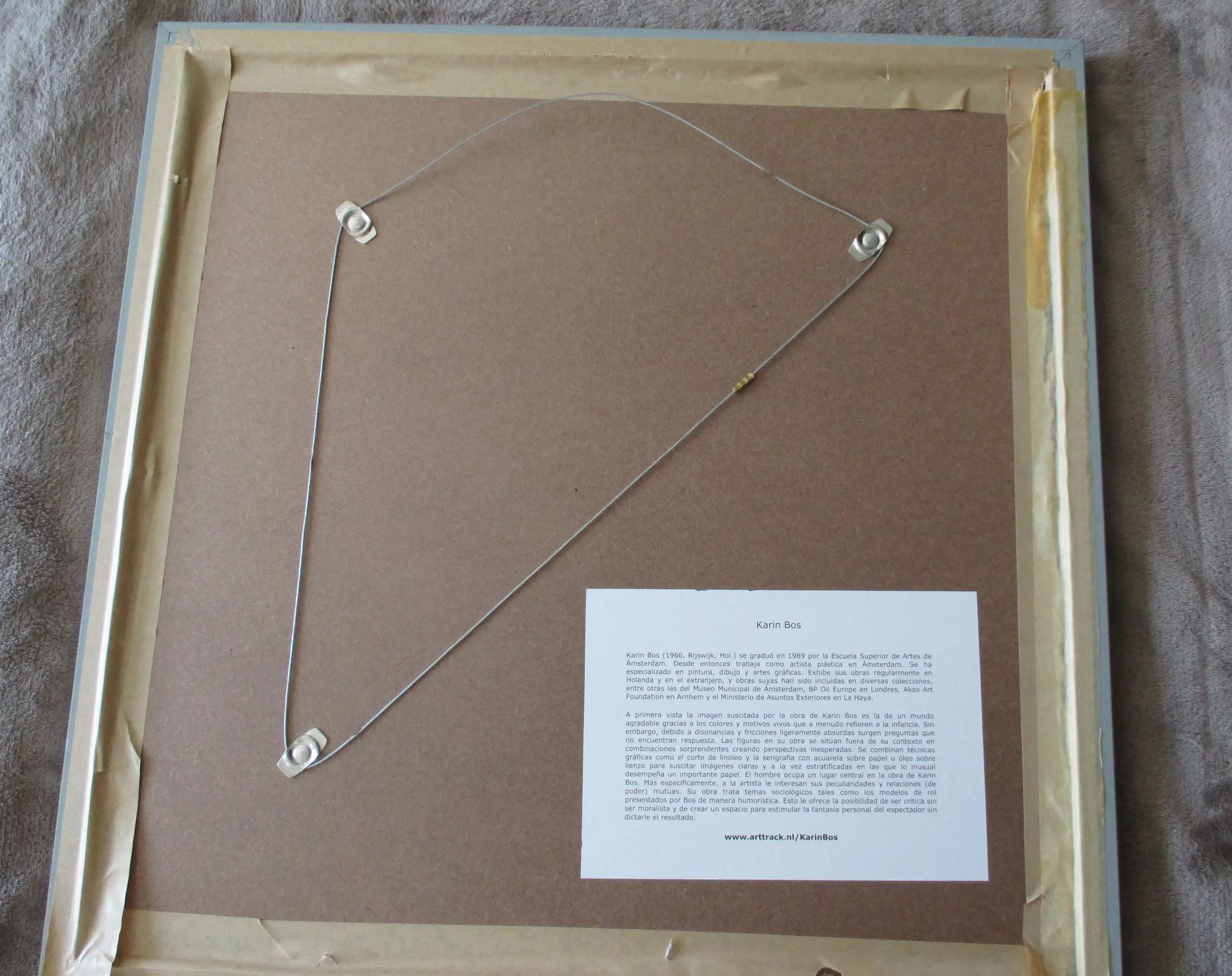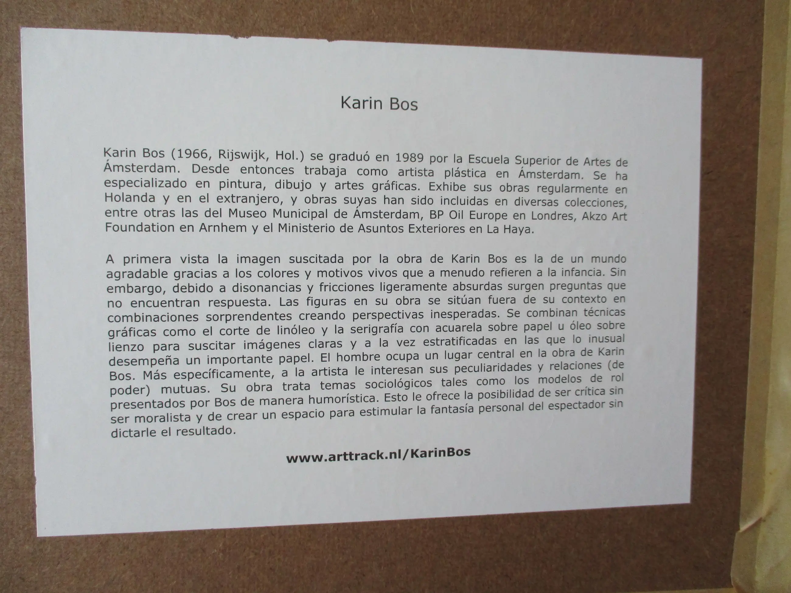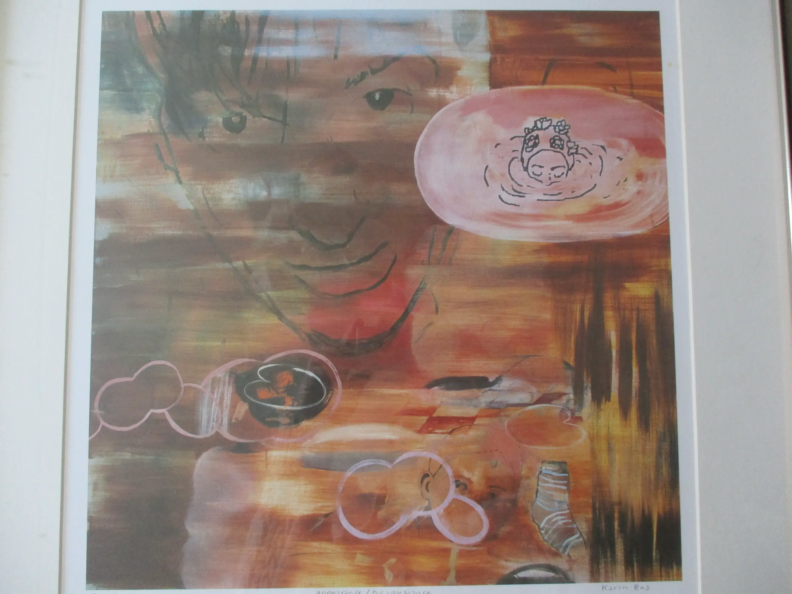 Karin Bos (1966) is in 1989 afgestudeerd aan de Amsterdamse Hogeschool voor de Kunsten. Sindsdien werkt ze als beeldend kunstenaar in Amsterdam. Haar specialisaties zijn: schilderen, tekenen en grafiek. Mensen zijn het centrale onderwerp in haar werk. Hoofdpersonen zijn meestal meisjes of vrouwen. Met name onderlinge relaties en (machts-)verhoudingen hebben haar interesse. Fricties en ongelijkheid in deze relaties is een terugkerend thema. Bijvoorbeeld tussen man en vrouw, volwassene en kind, of tussen kinderen onderling, waarbij groepsgedrag tegenover de eenling een rol speelt. Wanneer het streven naar harmonie mislukt, dan wordt het interessant voor haar werk.(Bron: www.karinbos.info)et werk verkeert in een absoluut goede staat.
