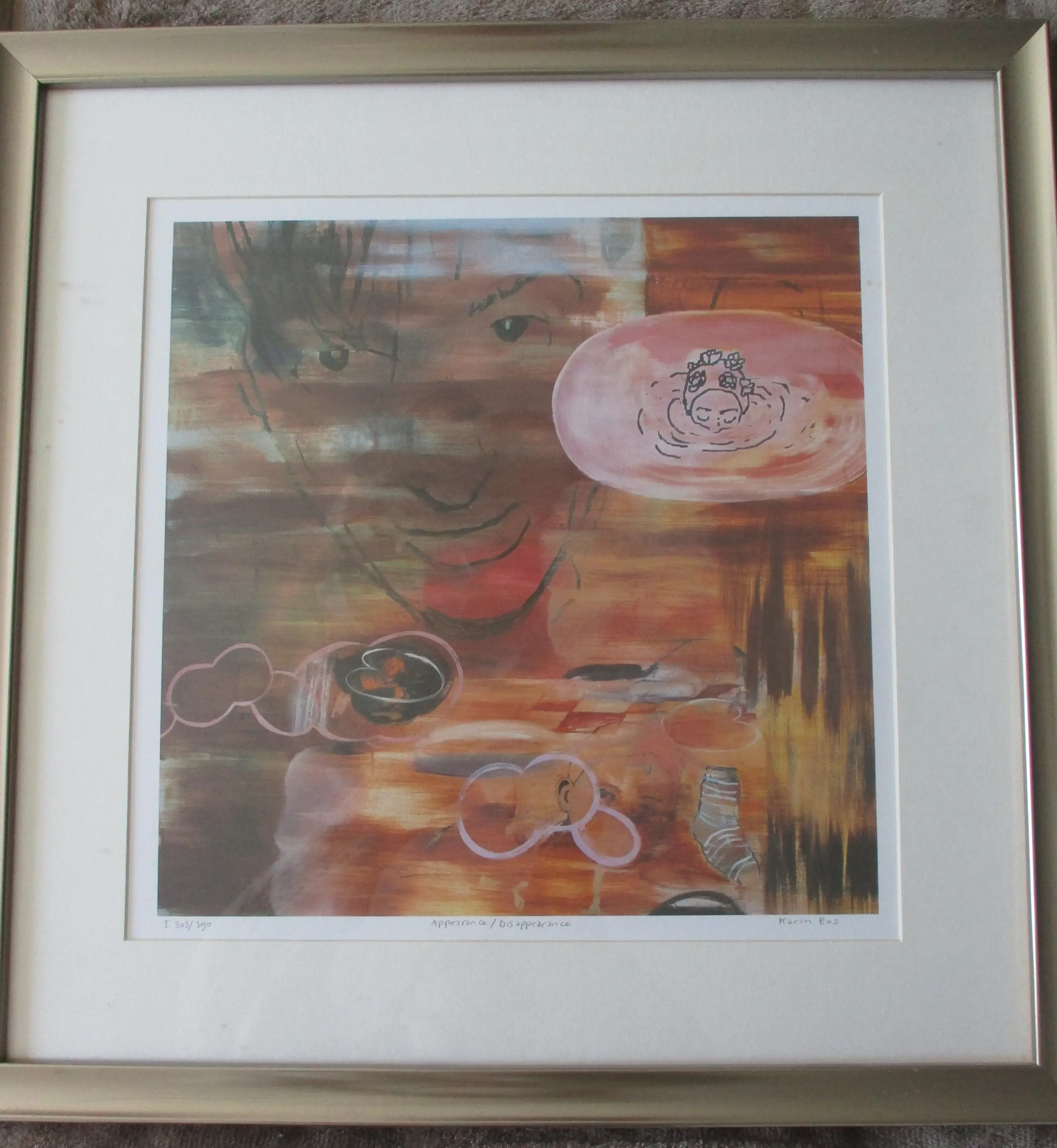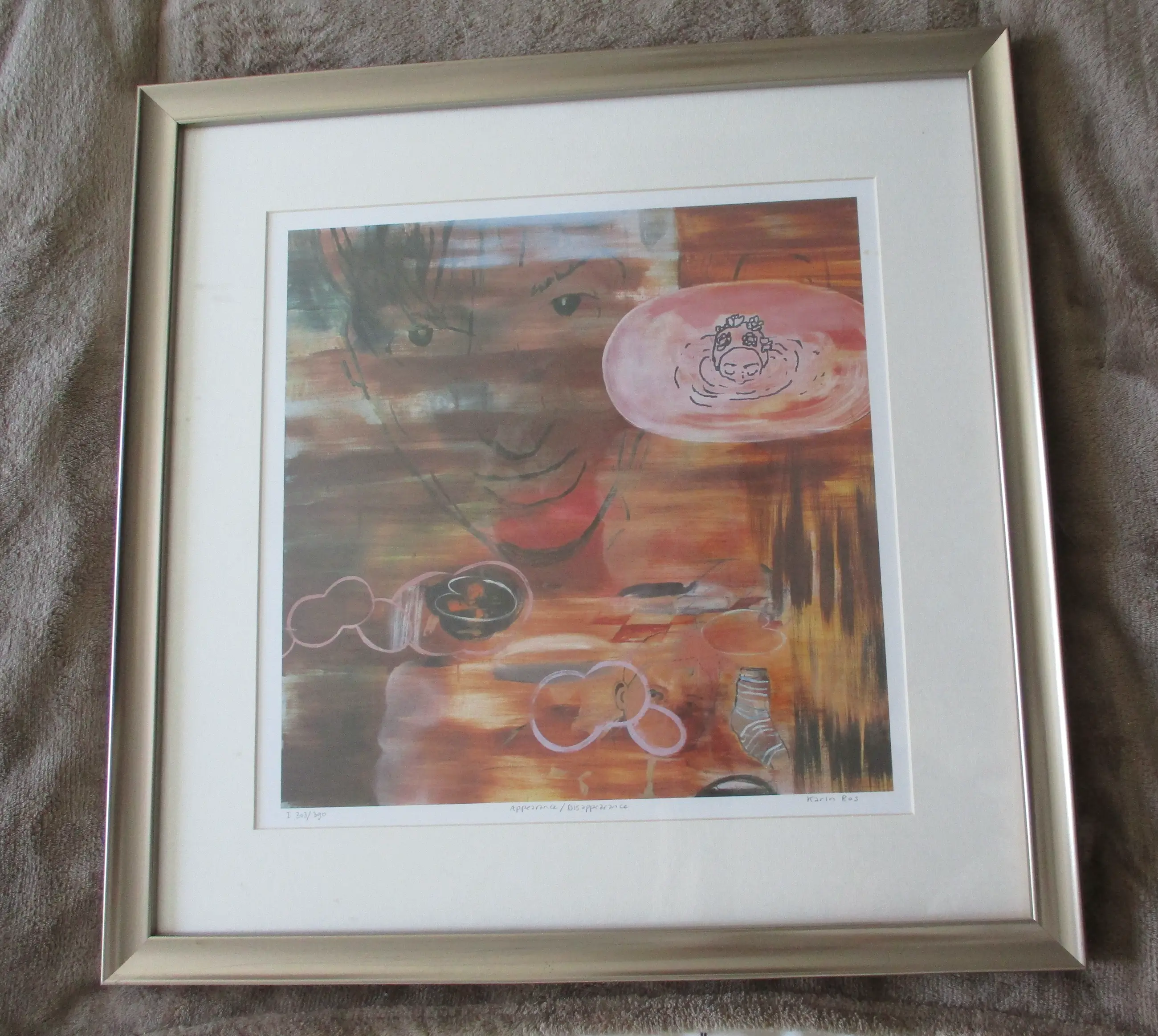 Zeefdruk van Karin Bos, getiteld Appearance / disappearance
