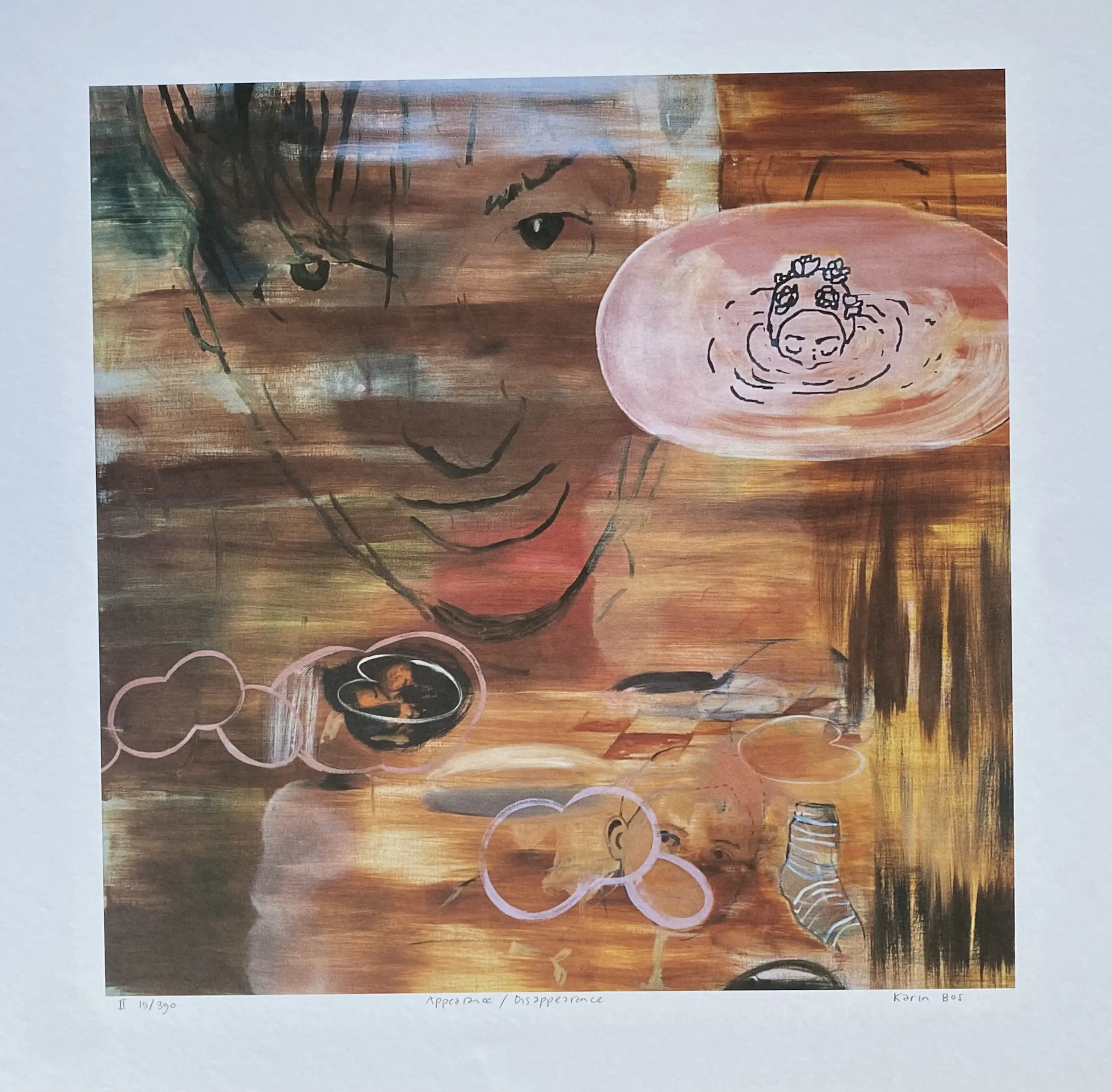 Mooie zeefdruk van Karin Bos, getiteld 'Appearance / disappearance'. Handgesigneerd door de kunstenaar. Gelimiteerd in een oplage van 390. De zeefdruk is ingelijst en in goede staat.
