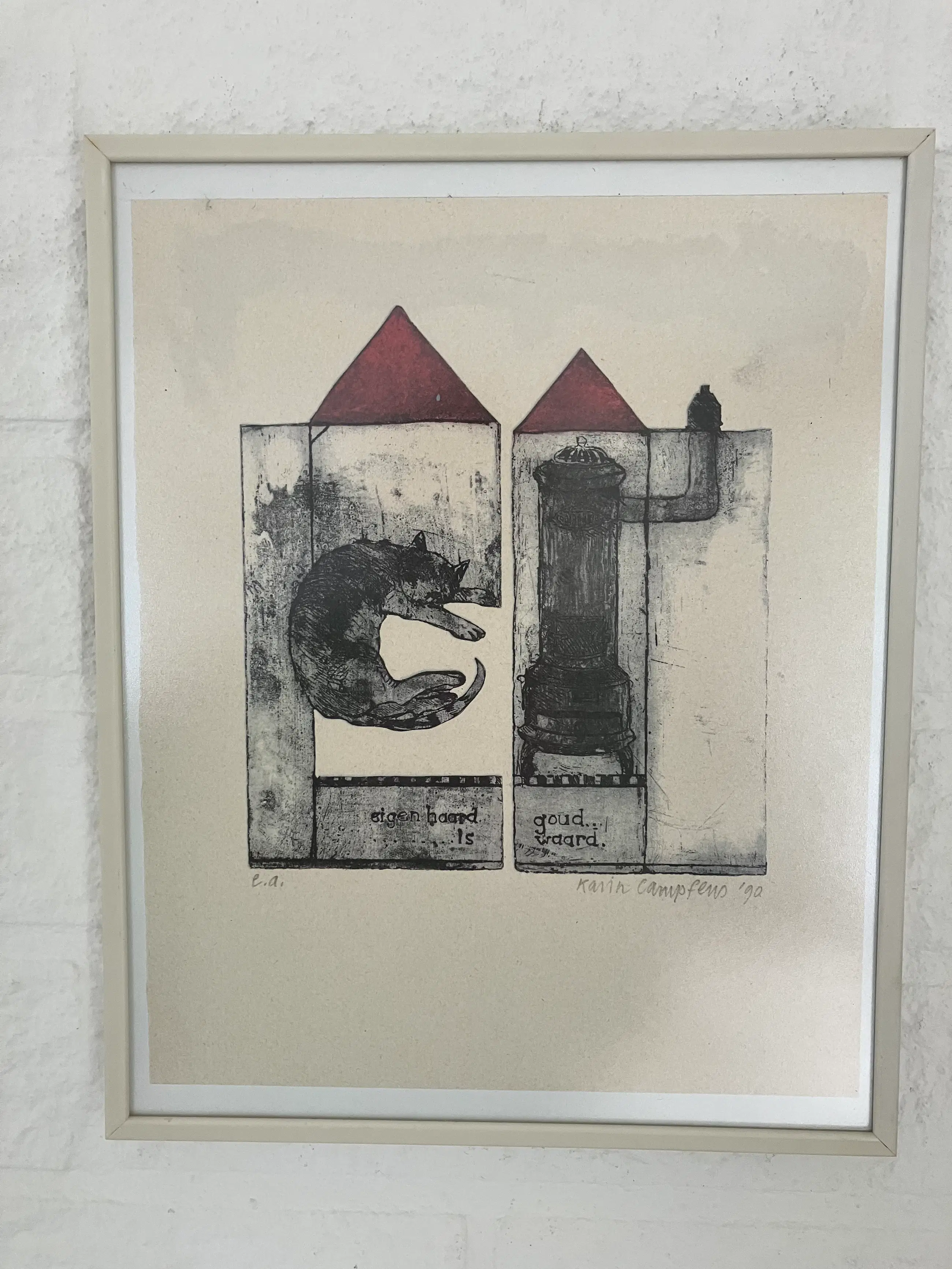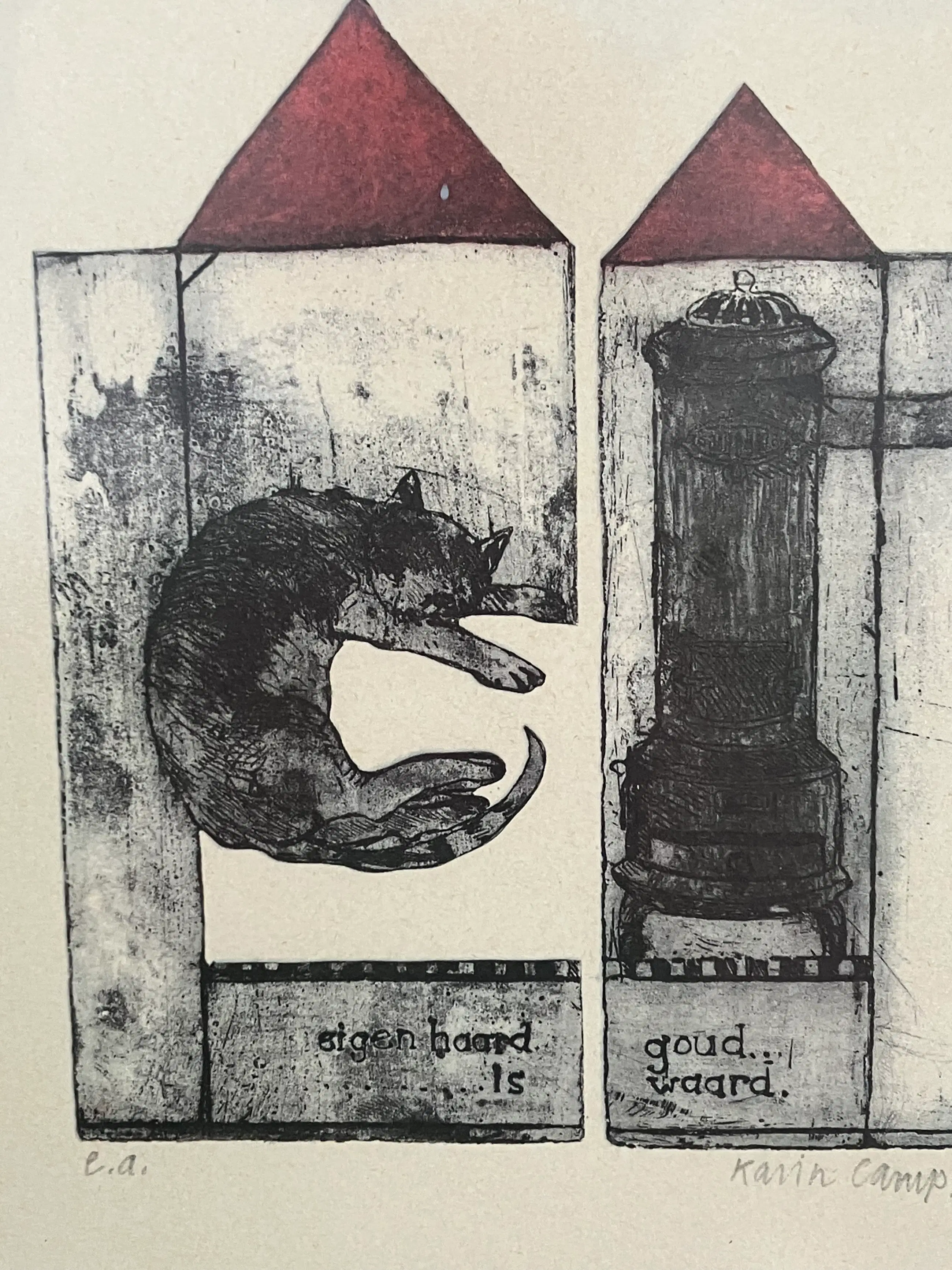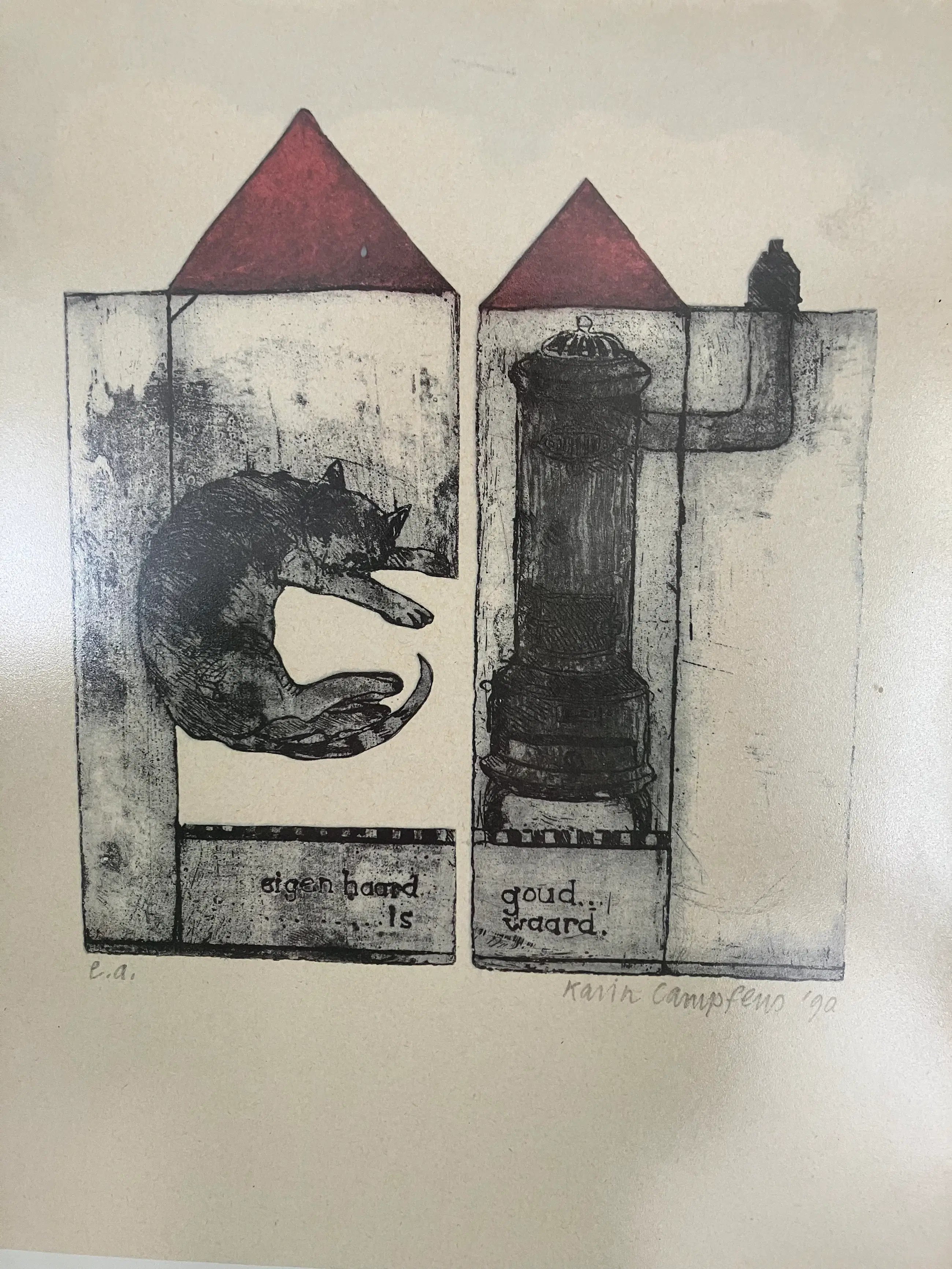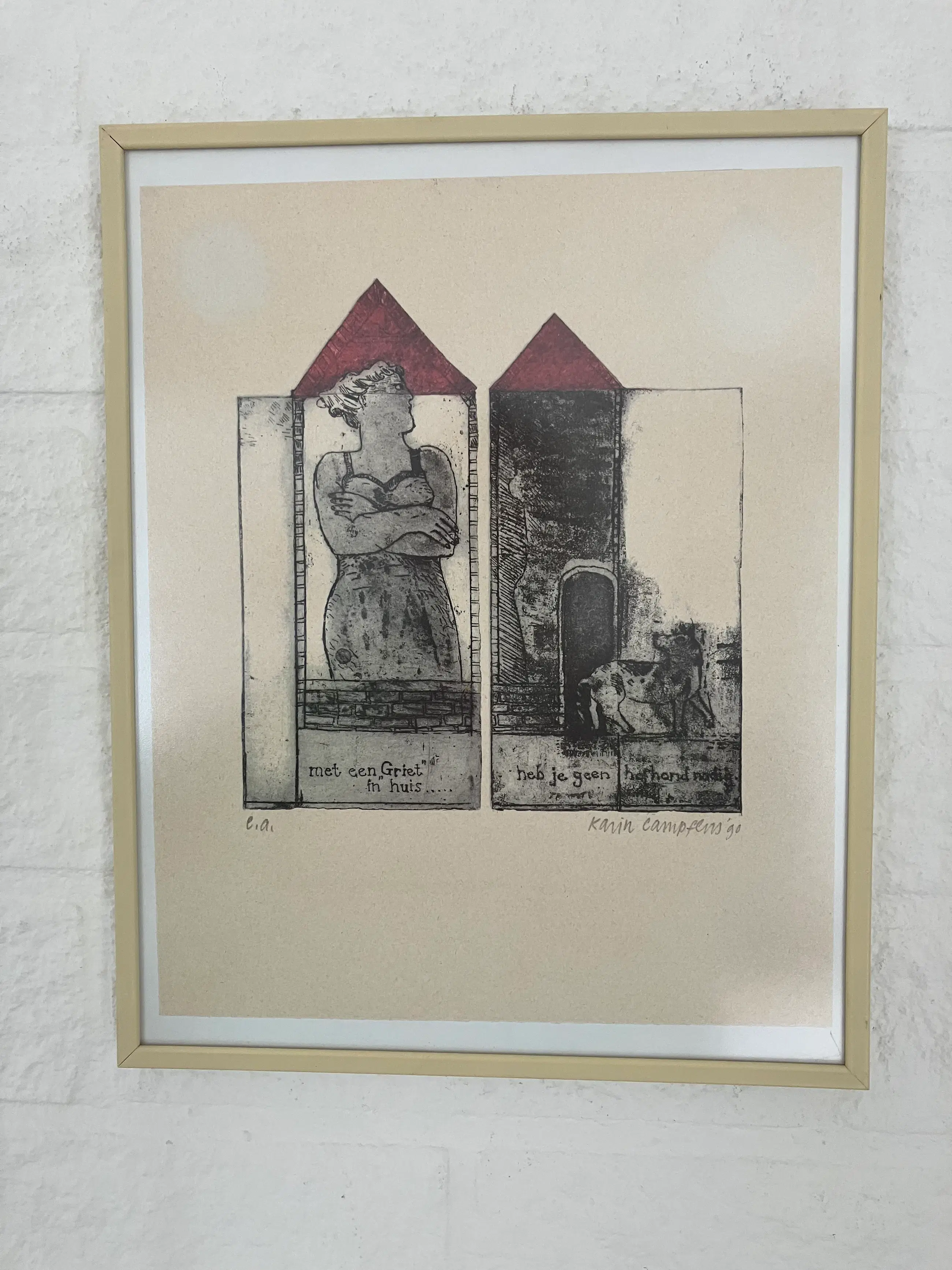 Mooie Litho van Karin Campfens (1946) handgesigneerd ,in goede staat.