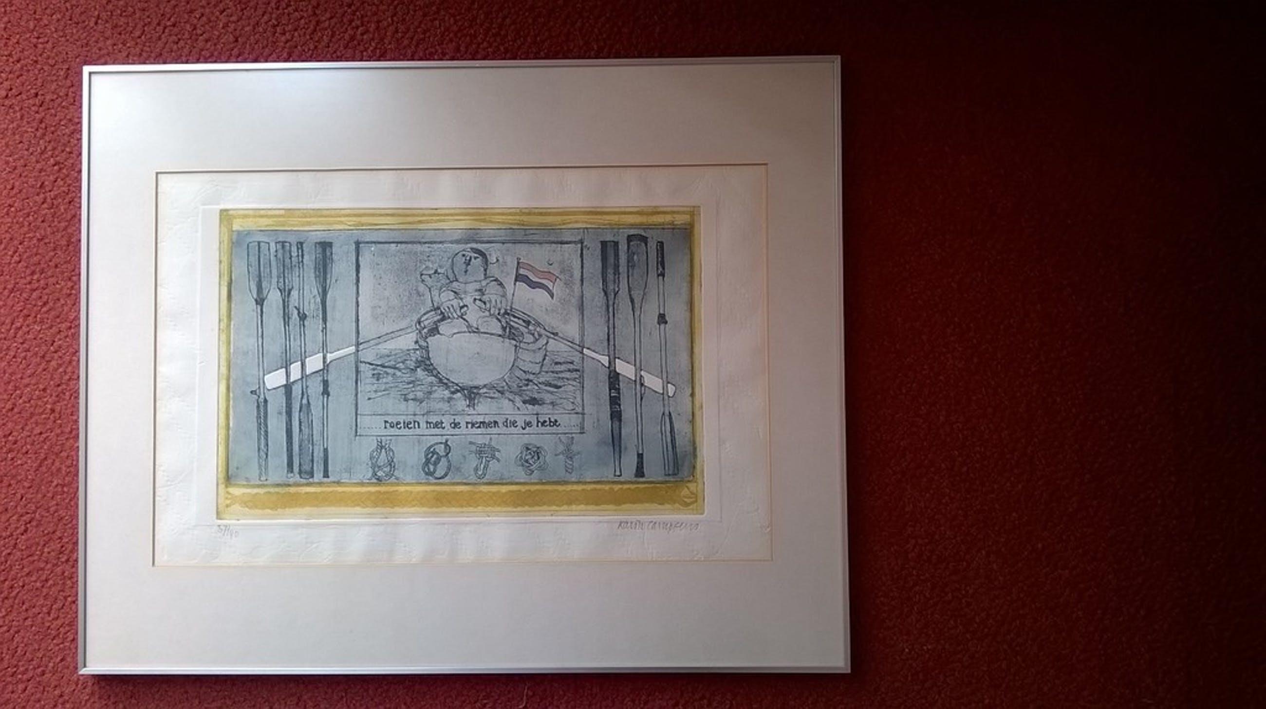 Tekst spreuk in deze ets: - 5. Roeien met de riemen die je hebt.