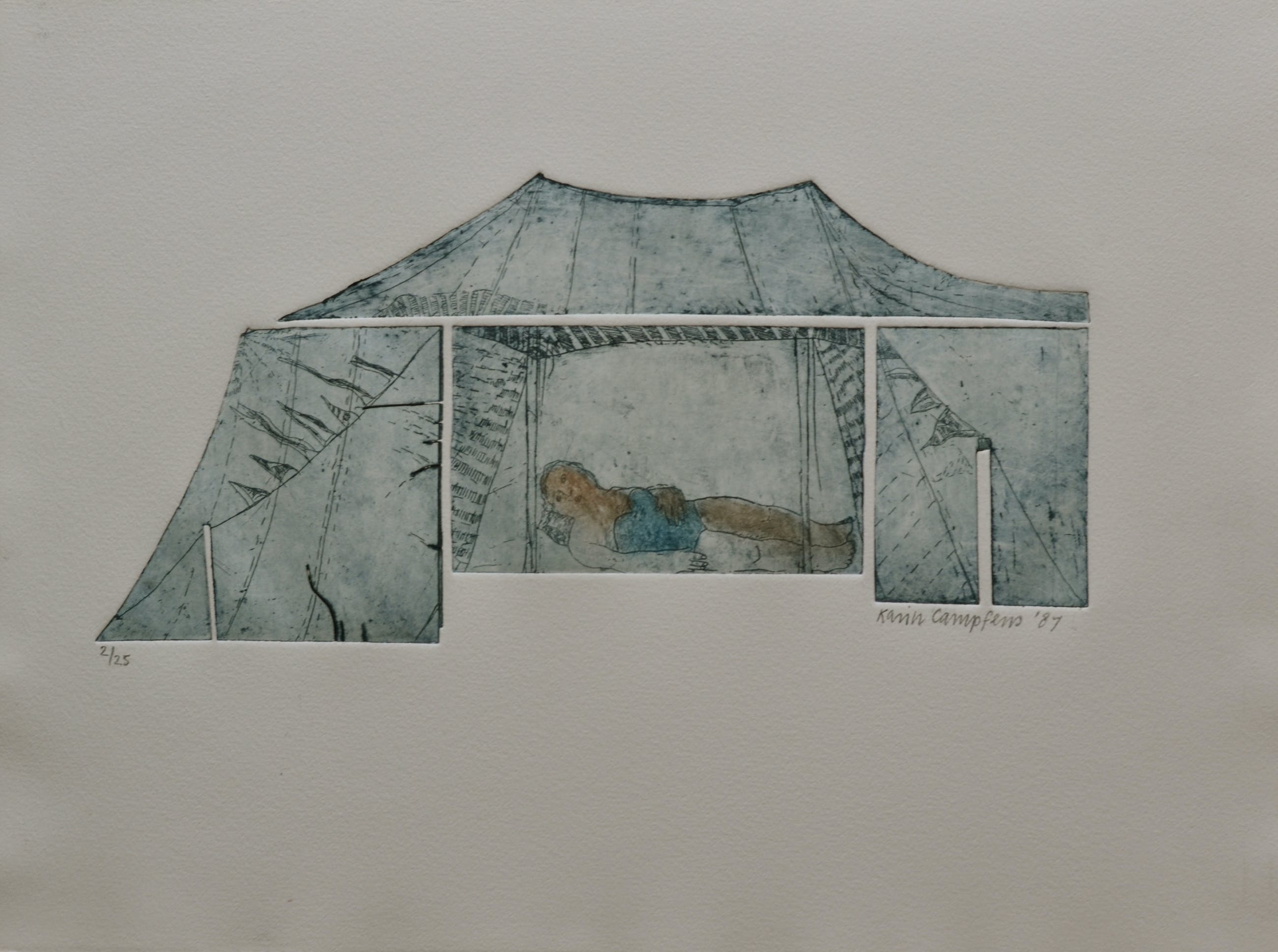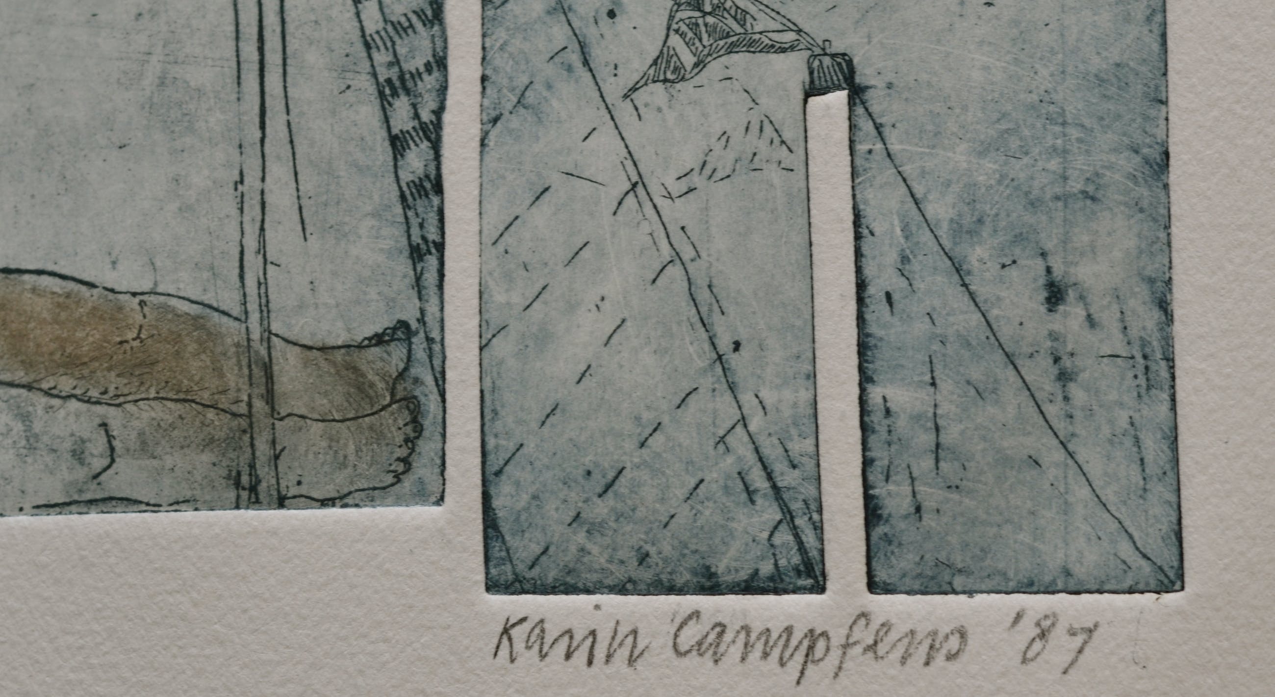De ets is gesigneerd en gedateerd rechtsonder: Karin Campfens '87. Linksonder genummerd: 2/25.