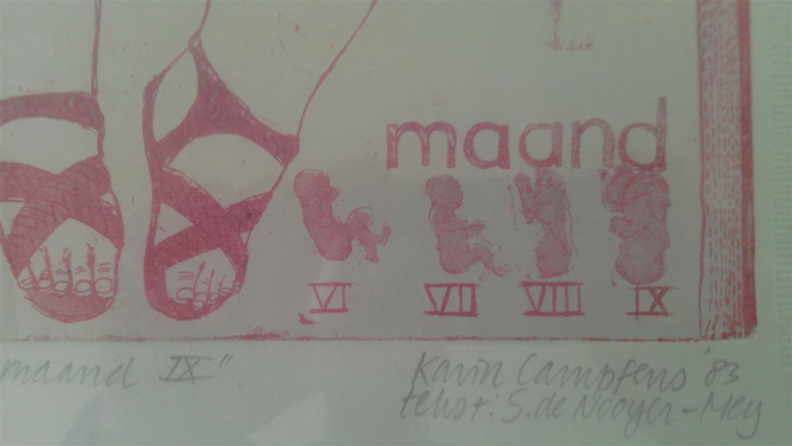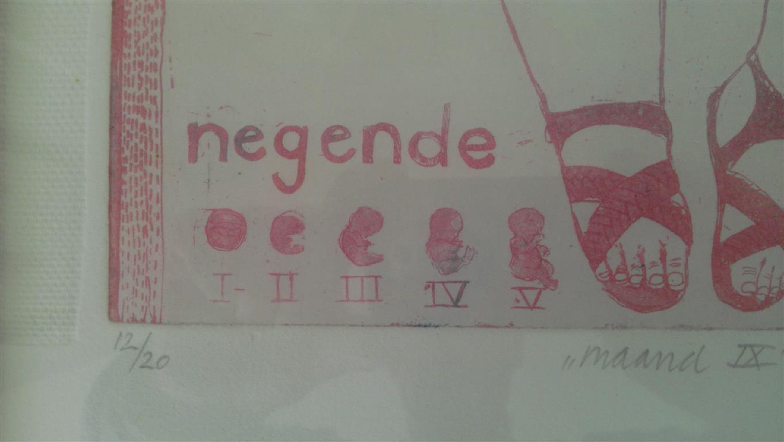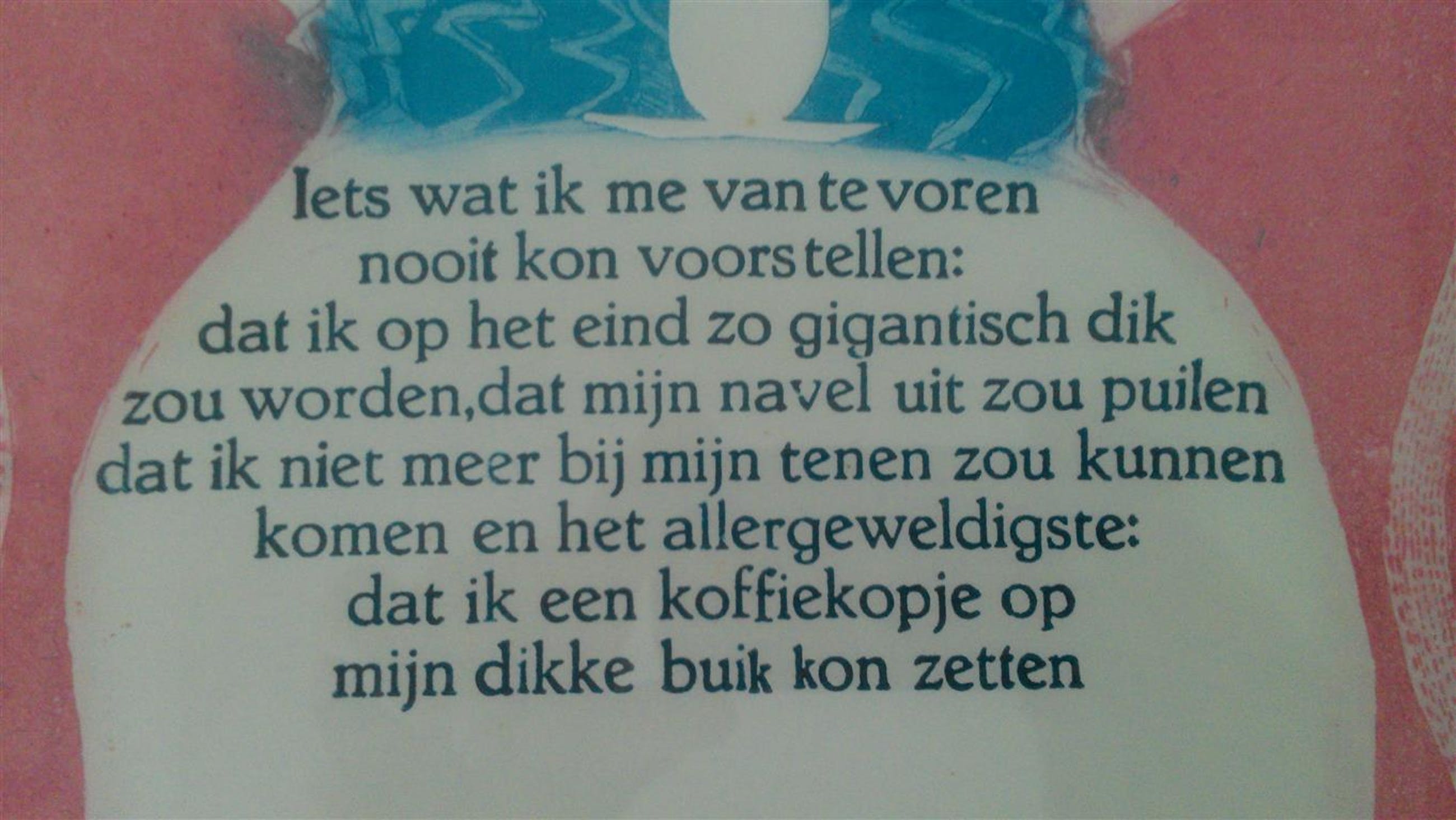 Nummer 12/20 mooi ingelijst Negende maand aan beide zijden naast de vrouw in verwachting reliëf decoratie in het papier Tekst van S de Nooijer Meij