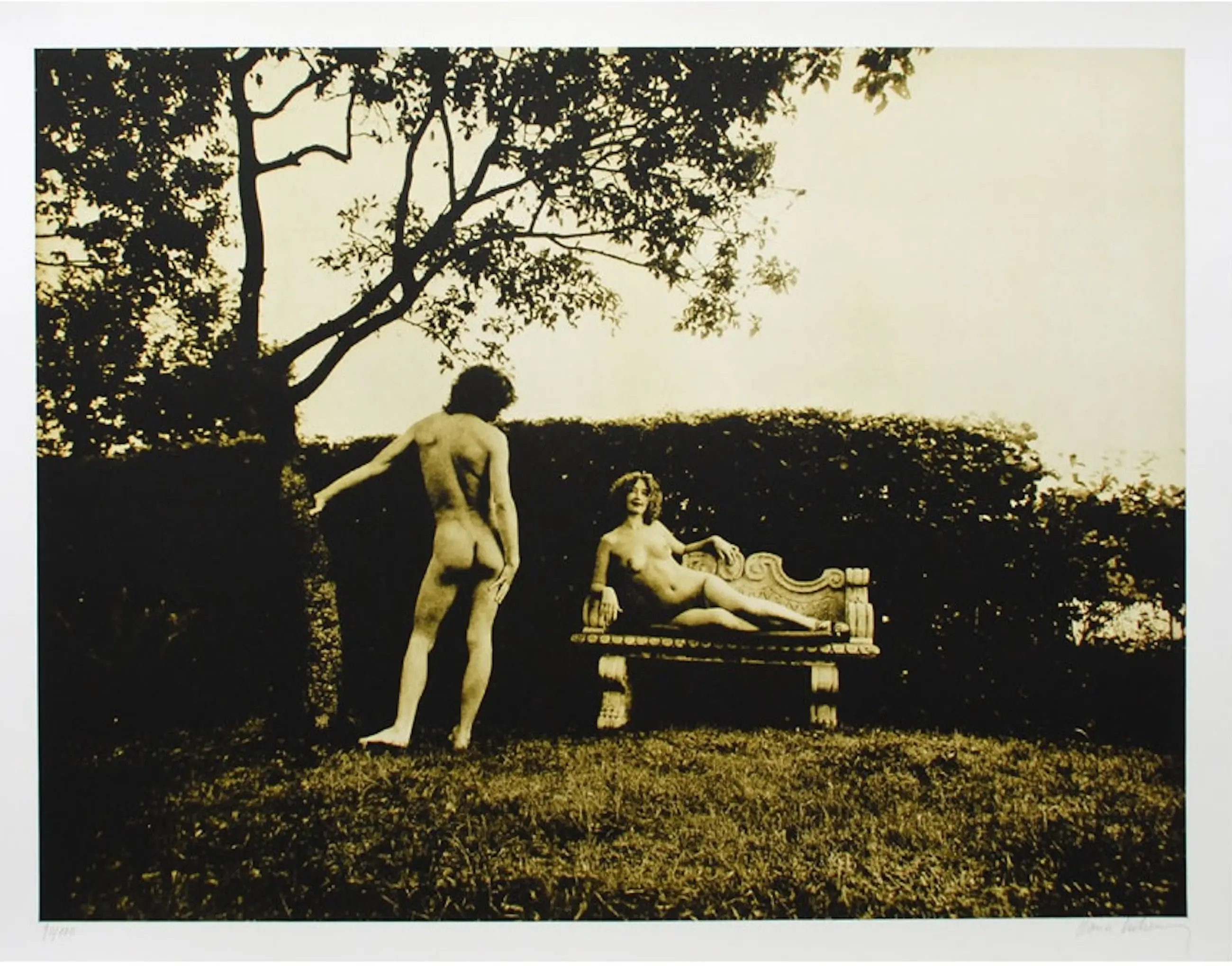 'Akt im Garten', naaktfoto door Karin Székessy, werd ook wel eens betiteld als 'Adam en Eva'. Linksonder door de kunstenares met potlood genummerd 59/100 en gesigneerd. Afmetingen : 48 x 63 cm (beeld) op 54 x 69 cm (blad). In perfecte staat.