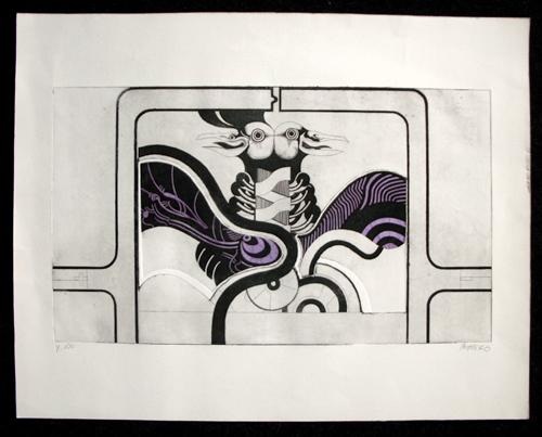 Karl Bianga - Handkolorierte Radierung, 1970.