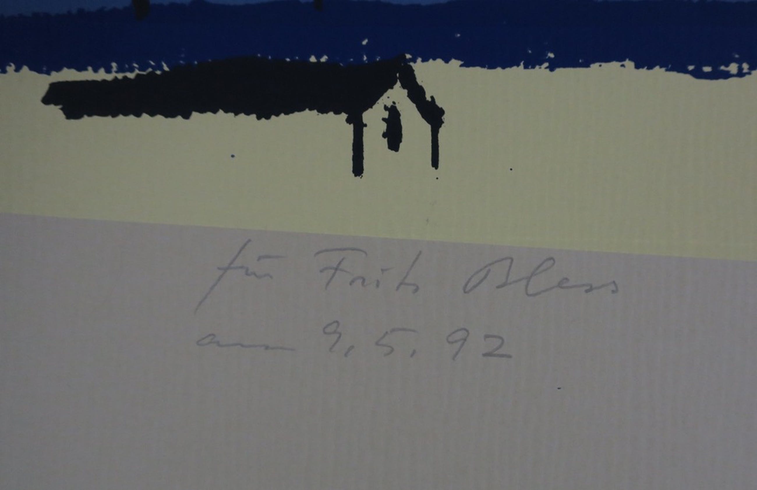 Conditie: In goede staat. Lichte vegen in de matte inkt en buiten beeld wat lichte kreuken in het blad. Met annotatie 'für Frits Bless'; is eventueel weg te gummen.