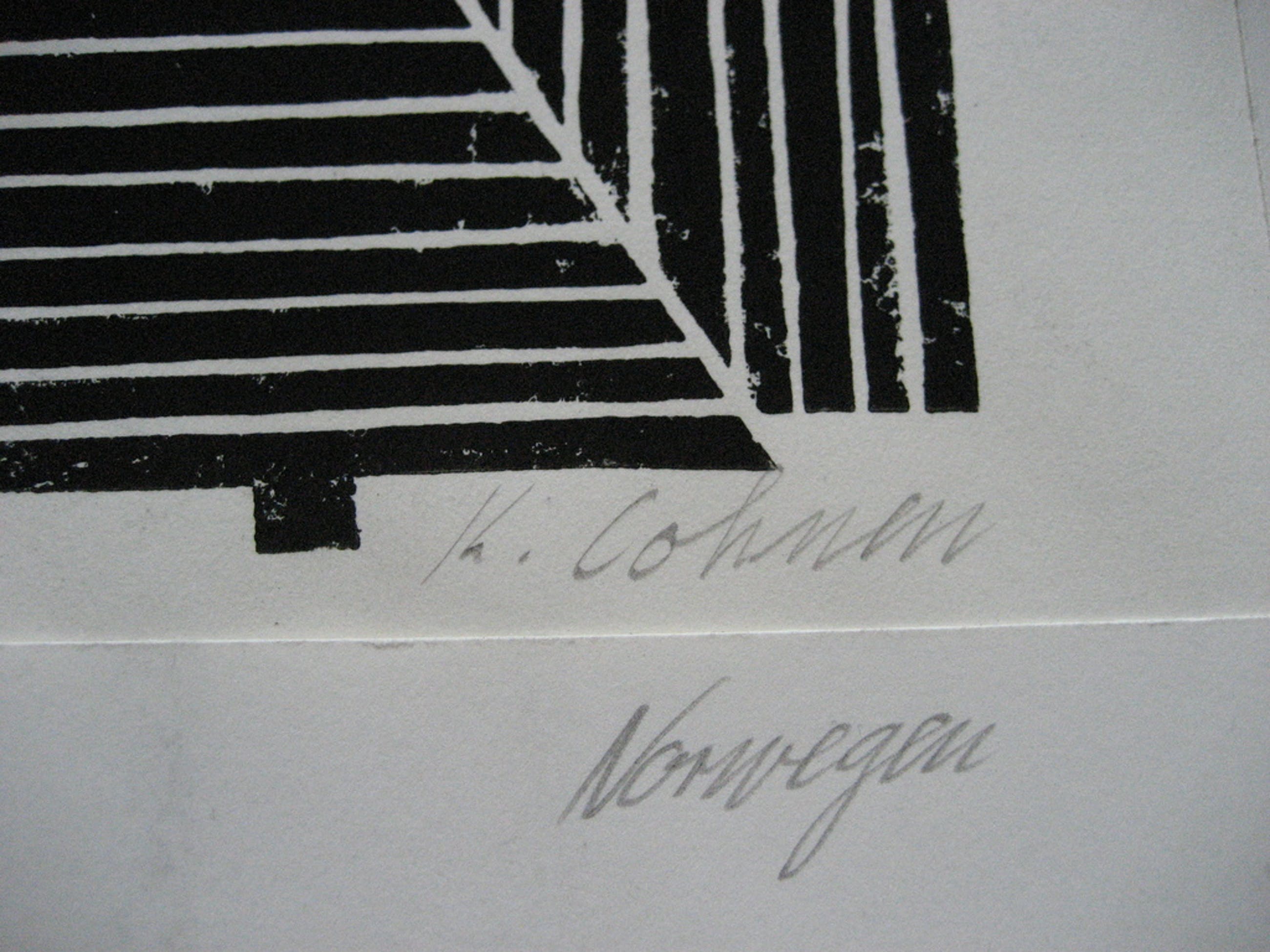 Karl Cohnen woont in Holzminden, was er van 1973-1999 werkzaam in de parfumindustrie als grafisch ontwerper.Linosnede Gesigneerd in potlood