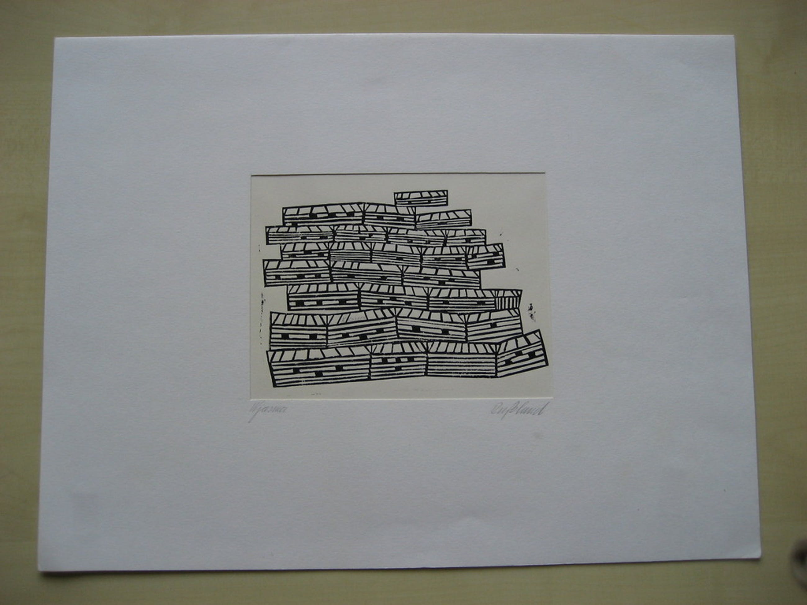 Linosnede Gesigneerd in potlood