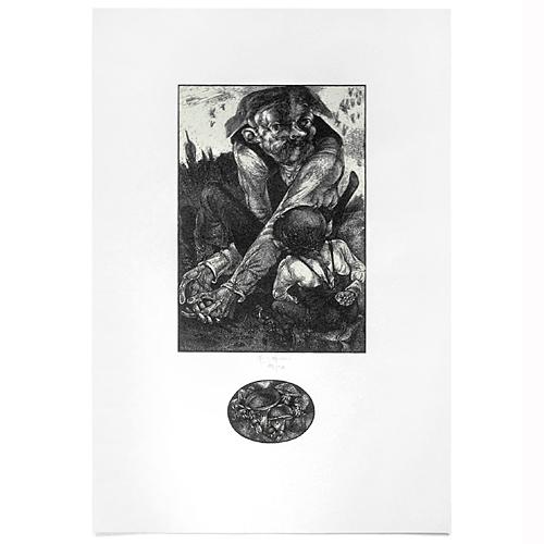 Abzug in Schwarz (über farbiger Tonplatte) auf sehr festem Velin.