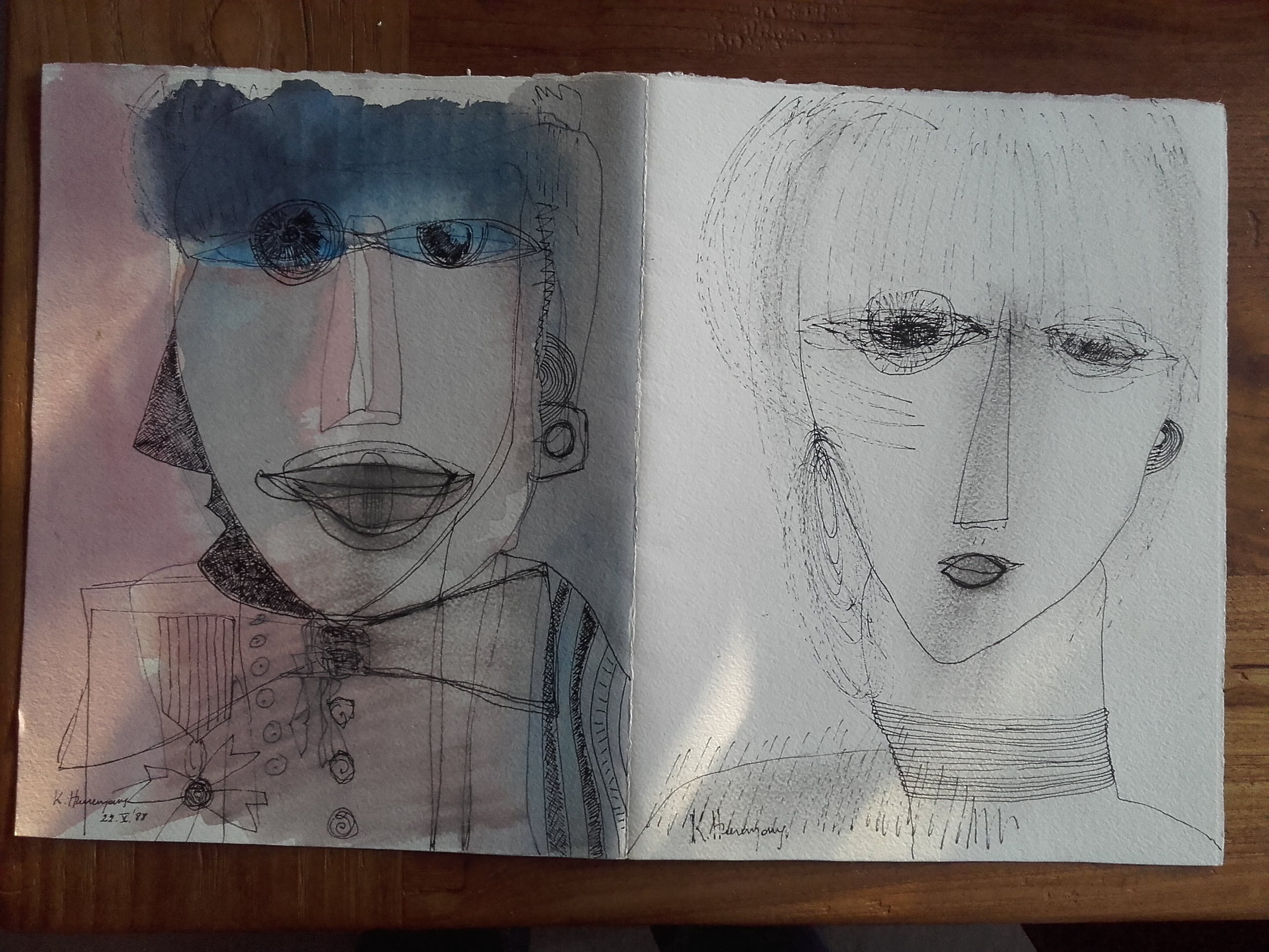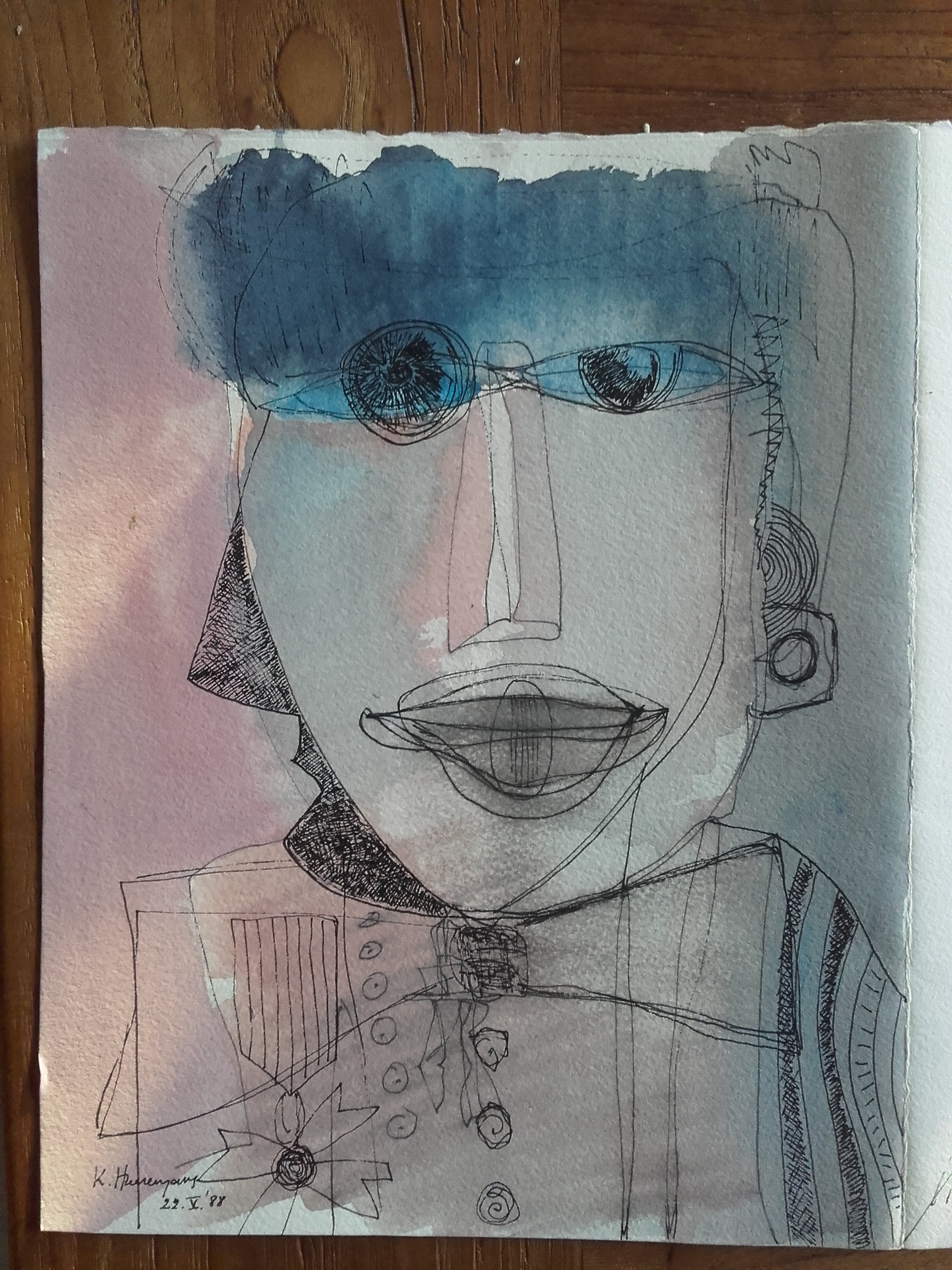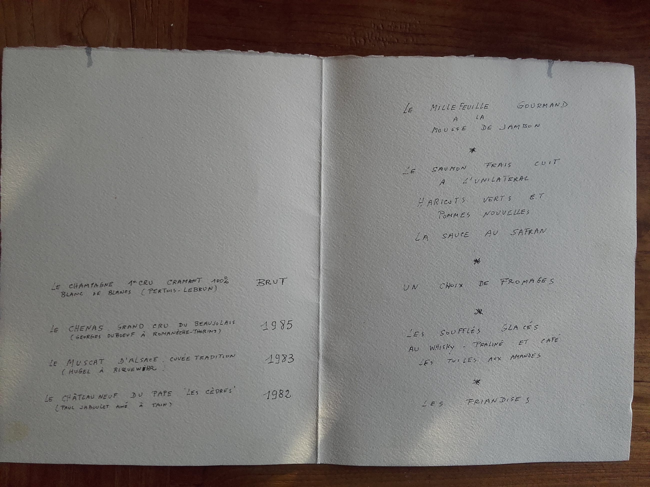 Het betreft een werk gemaakt naar aanleiding van het communiefeest van zijn zoon Tom. Op de buitenzijde werd de pentekening gemaakt en daarbij slechts de helft door aquarel ingekleurd. De binnenzijde geeft het menu weer van deze gelegenheid - Origineel !! Karl Heeremans startte kunstgeschiedenis en musicologie aan de KULeuven (vanaf 1957) en vervolgens vervolledigd hij deze opleiding aan de Düsseldorfse academie(1959) , met o.a. Ewald Mataré als professor. Nadien studeerde hij Geneeskunde; is huisarts geworden (1967) om "artiestenleven" te financieren. Hij verhuisde naar Parijs op het atelier van Anthonie Clavé en had vriendschappen met Guiramand, Aïzpiri, Tamayo en ontmoette Picasso en Chagall (1960). De Vlaamse expressionist Albert Saverijs aanvaarde hem vanaf 1961 in zijn atelier tot aan zijn dood in 1964. In 1964 ontving hij de "Prijs van de stad Namen" en van 1965 tot 1967 nog enkele onderscheidingen zoals de Italiaanse Olivetti-prijs en de prijzen van Knokke. De Grote Internationale Prijs van Deauville ontving hij in 1968 . Karl Heeremans behaalde nadien nog onderscheidingen te Cannes (1970) en te Ronse (1970); De prijs Anto Carte in 1976). Diverse werken bevinden zich in verscheiden musea en in de verzamelingen van de Belgische Staat.