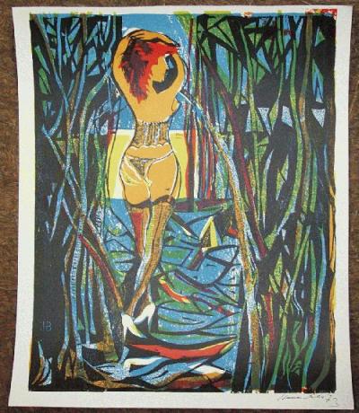 Akt, Serigraphie nach Farbholzschnitt , drucksigniert , sehr groß 40 x 50 cm , ausgezeichneter Zustand