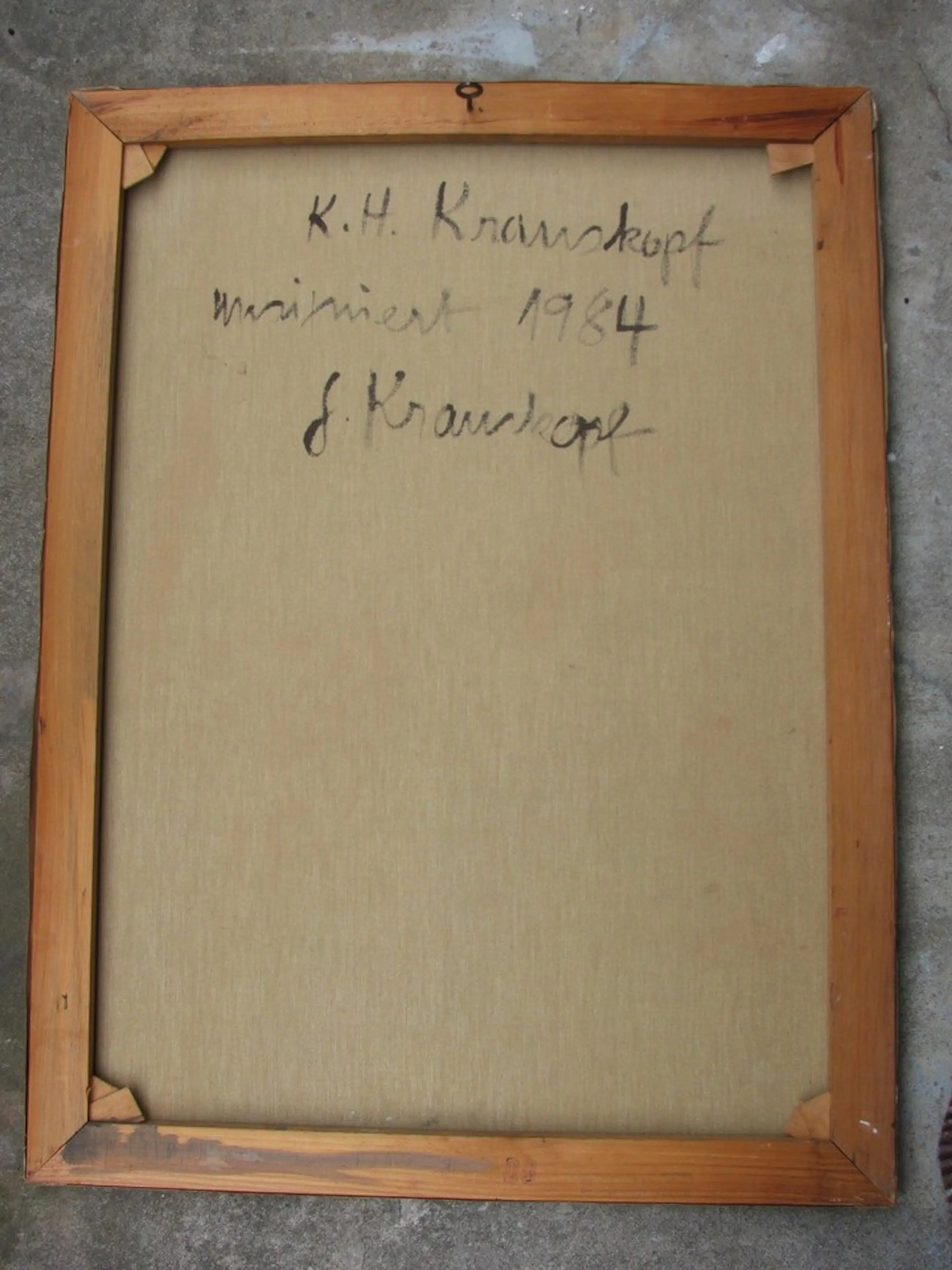 Olieverfschilderij op canvas en spieraam, 80 x 60 cm. Gesigneerd en gedateerd 1984 op de achterzijde. Waarschijnlijk een van de laatste werken van de kunstenaar. In zeer goede staat.