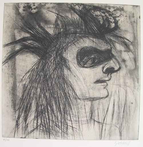 Frau mit Maske (Ellen), Radierung, Blattgröße 64,5 x 54cm, Plattengröße 39,5 x 40cm, Auflage 41/100, rechts unten handsigniert, der äußerste Blattrand ist umgehend leicht gebräunt ansonsten guter Zustand, Versandkosten innerhalb von Deutschland als versichertes Paket 8,- Euro.