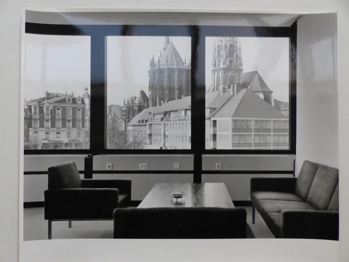 Fotografie von Karl-Hugo Schmölz, Motiv: Interieur mit Blick auf das alte Kölner Rathaus, rückseitig Atelierstempel Schmölz - Huth, Maße: 30 x 24 cm