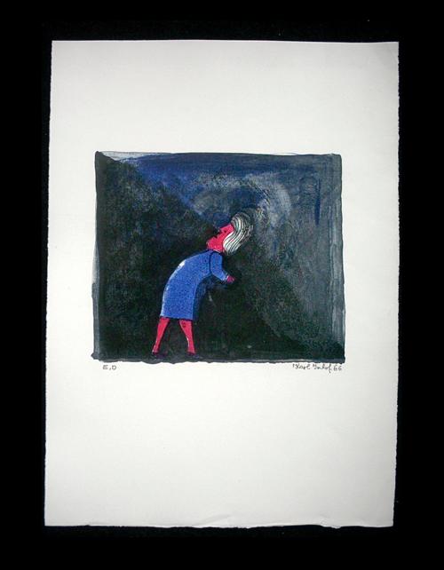 Prof. Karl Imhof. O.T. (Frau in Landschaft), Farblithographie, 1966.