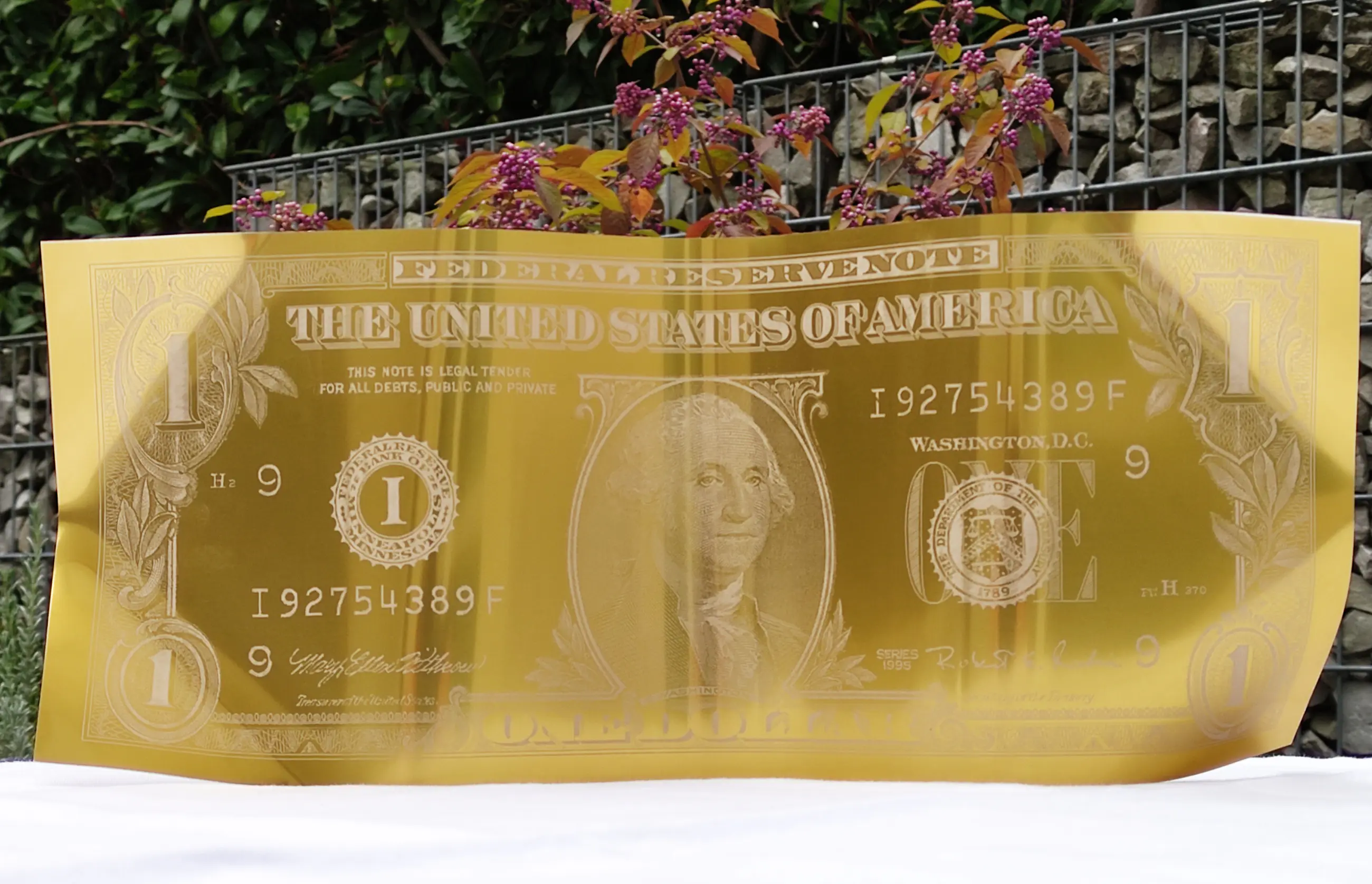 ONE DOLLAR GOLD KARL LAGASSE is een kunstwerk van de Franse kunstenaar Karl Lagasse.