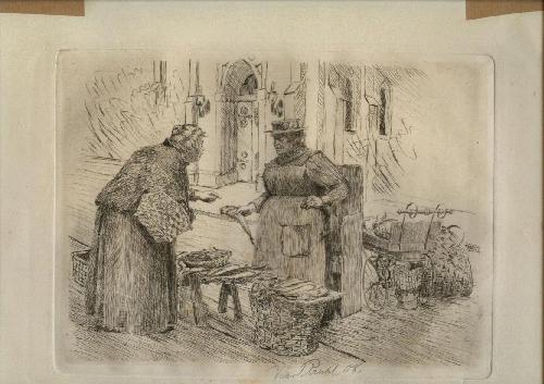 Karl Prahl - karl Prahl Fischweib Signierte Radierung 1908