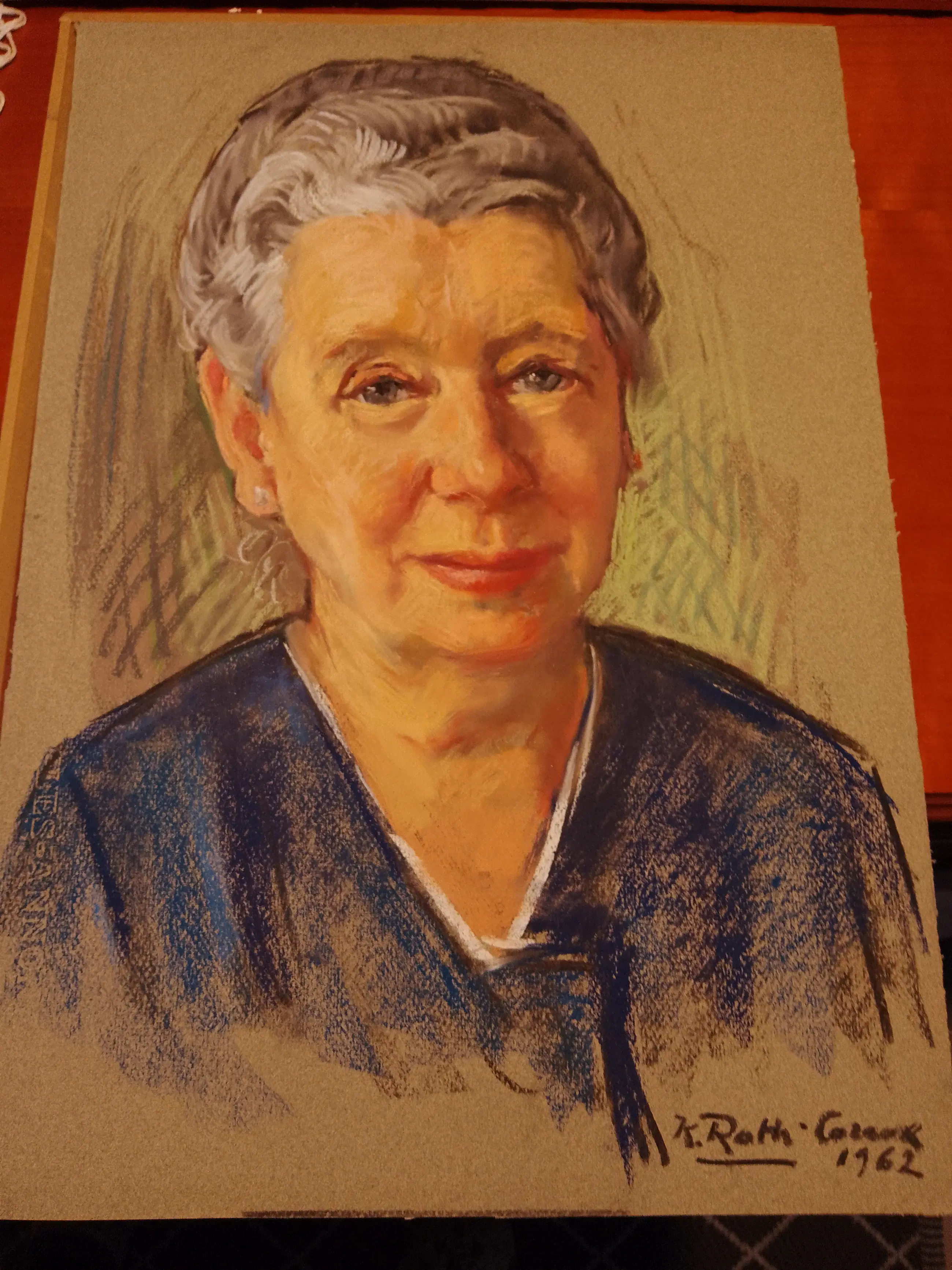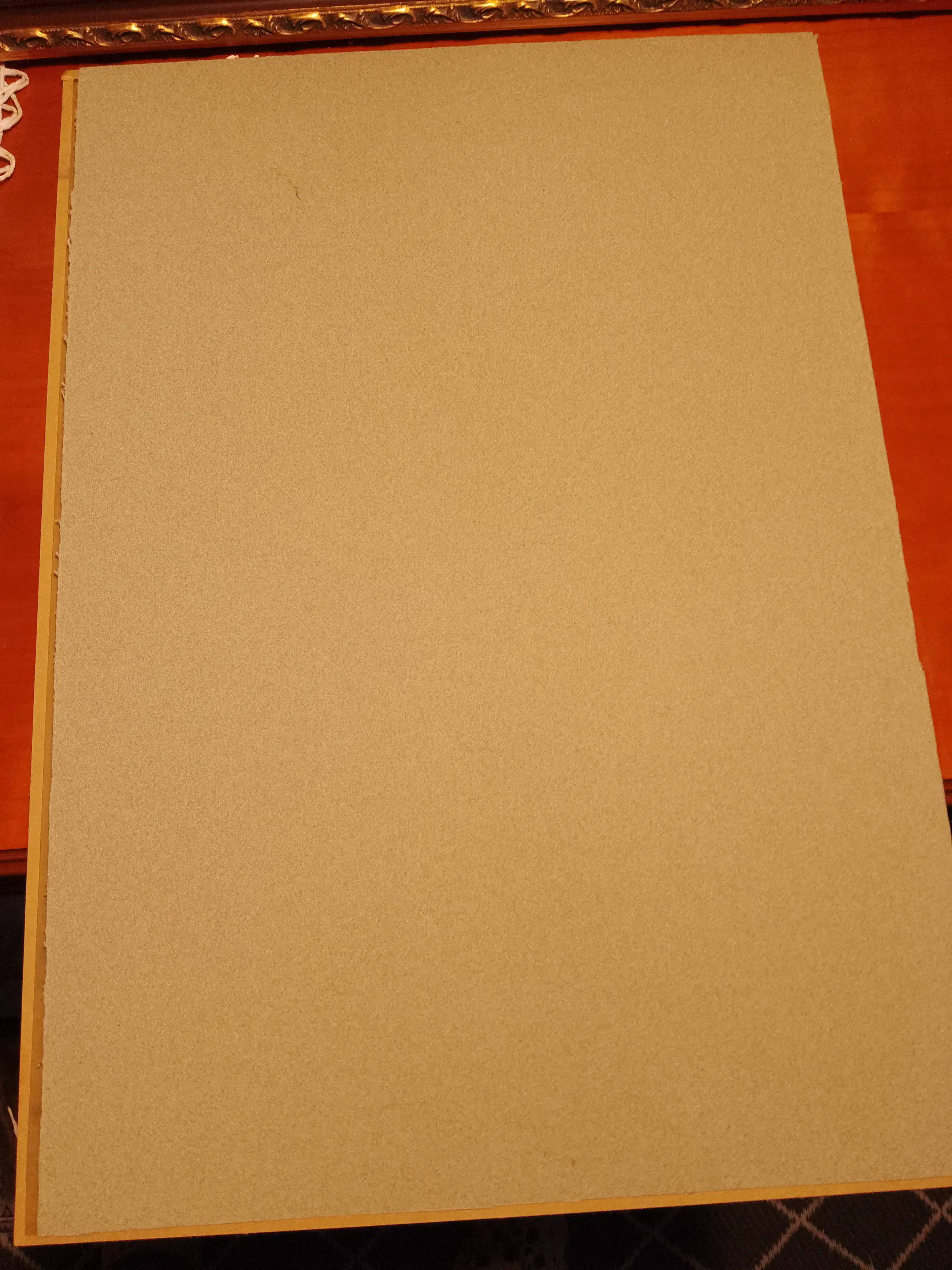 Krijt of olieverfpastel op papier tussen twee glasplaten.