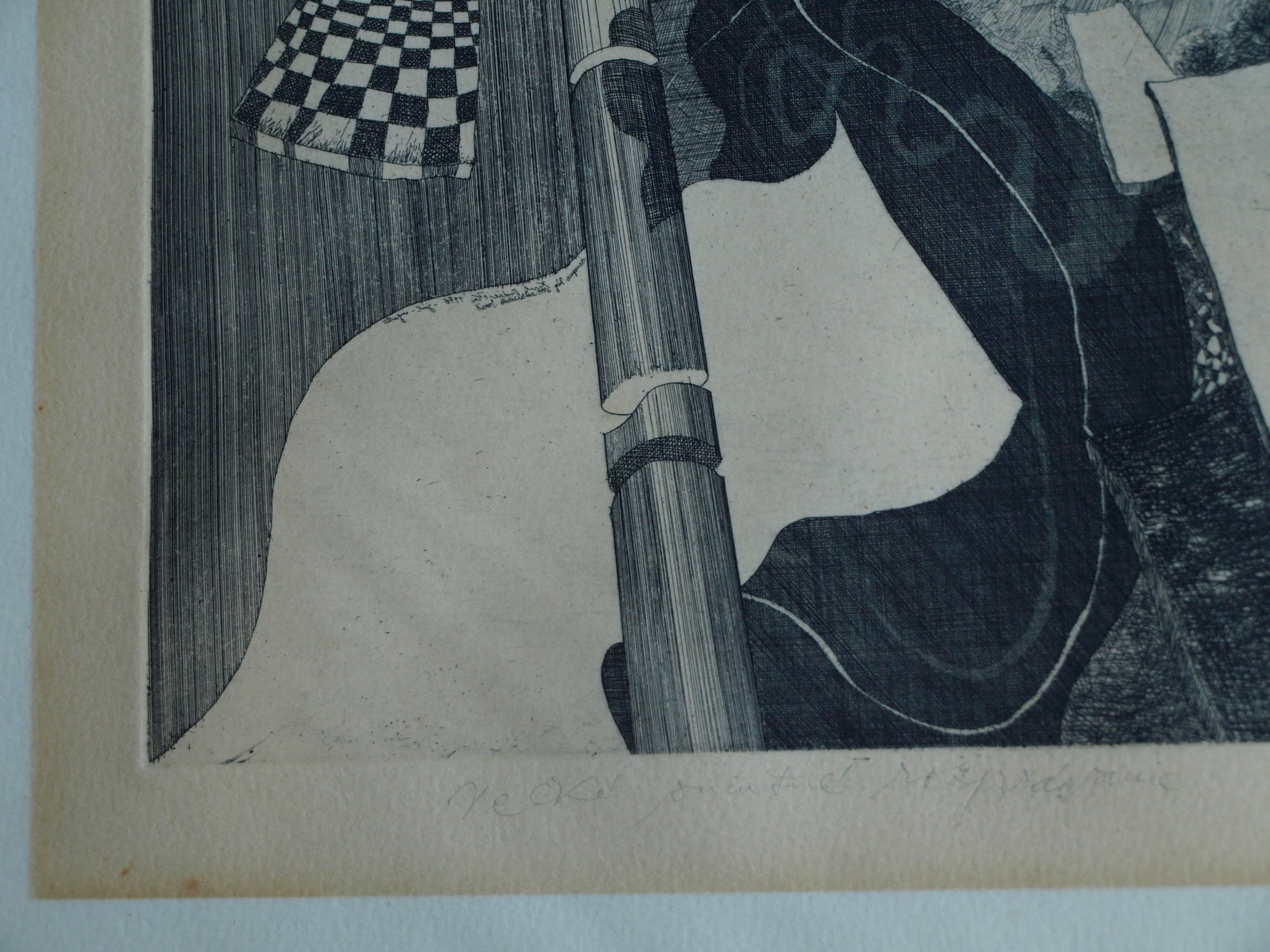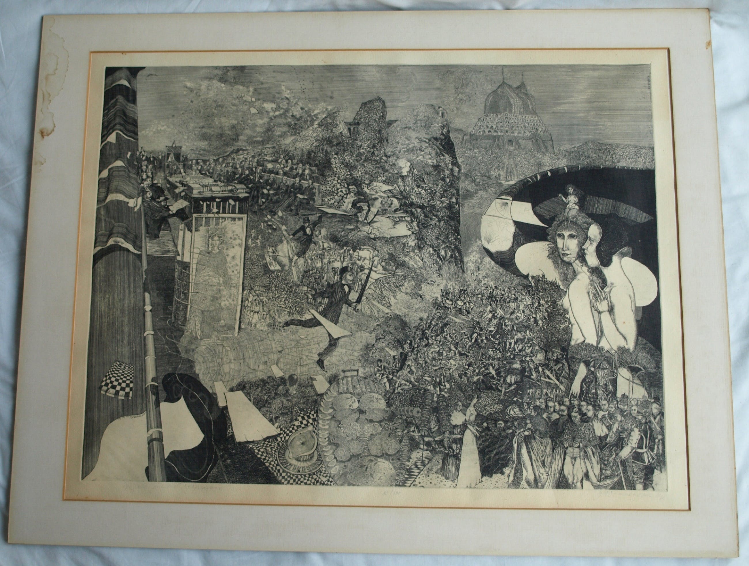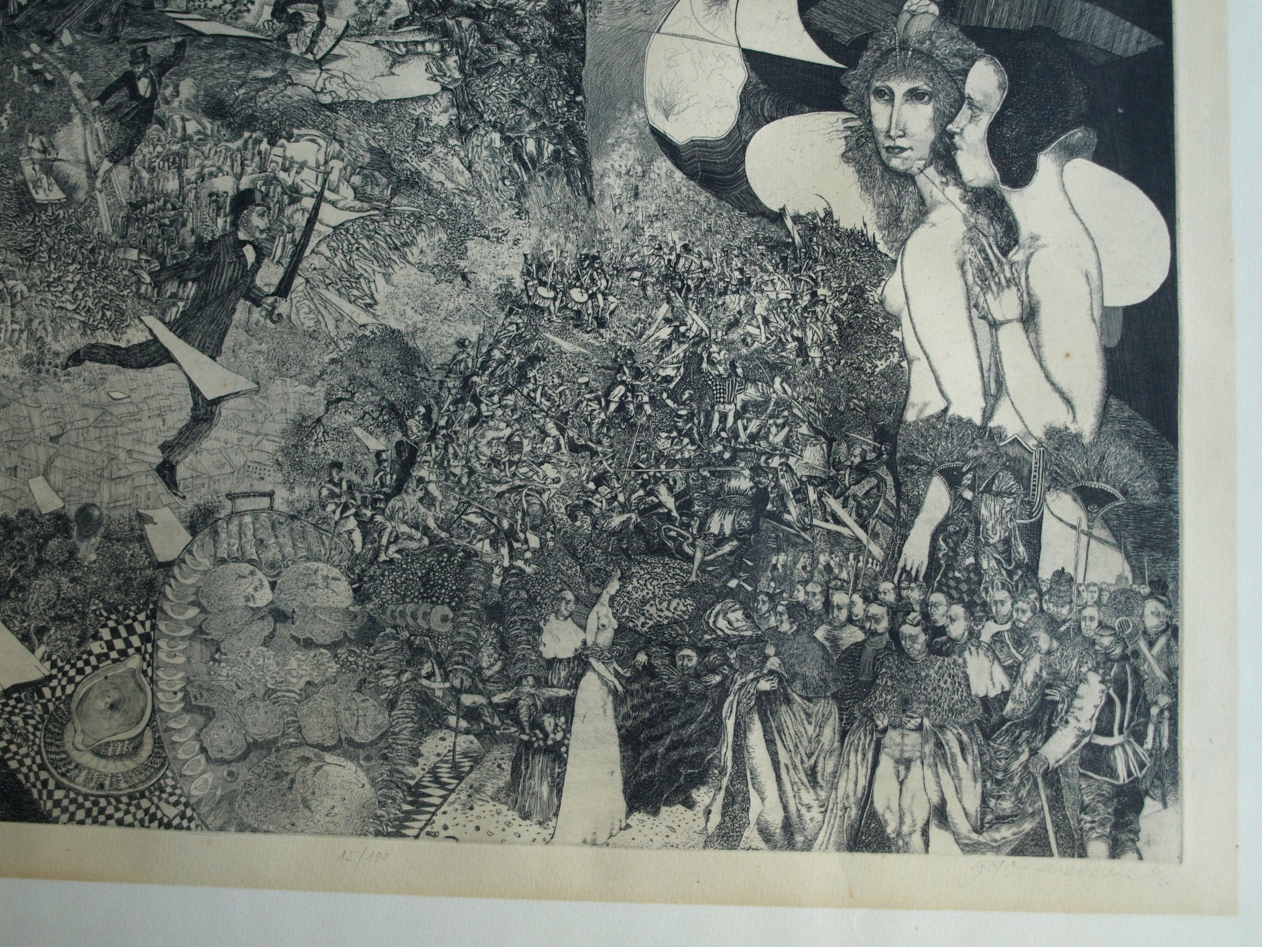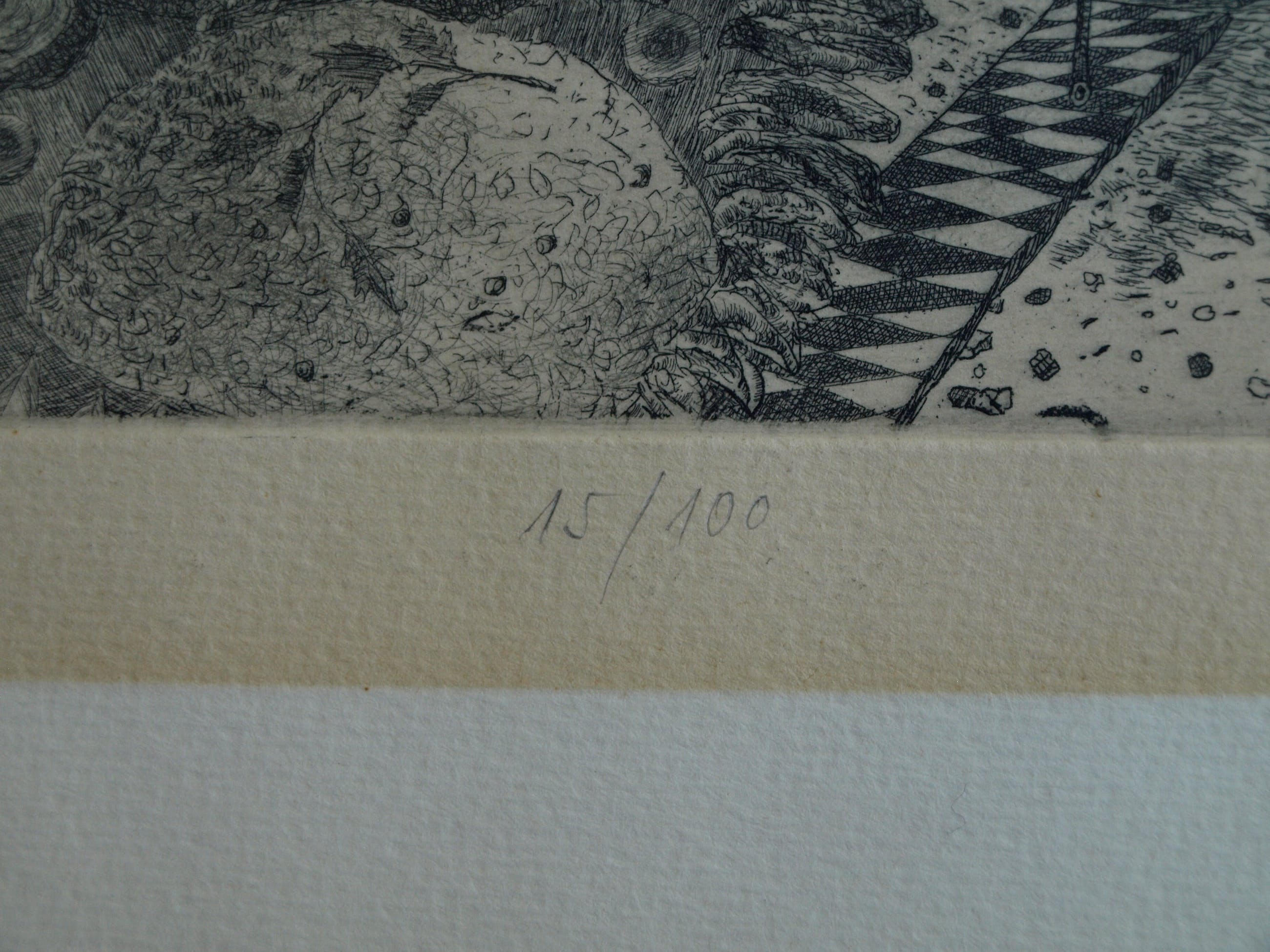 Een grote (49 x 64 cm) ets van de Slowaakse kunstenaar Karol Ondreicka (1944-2003).