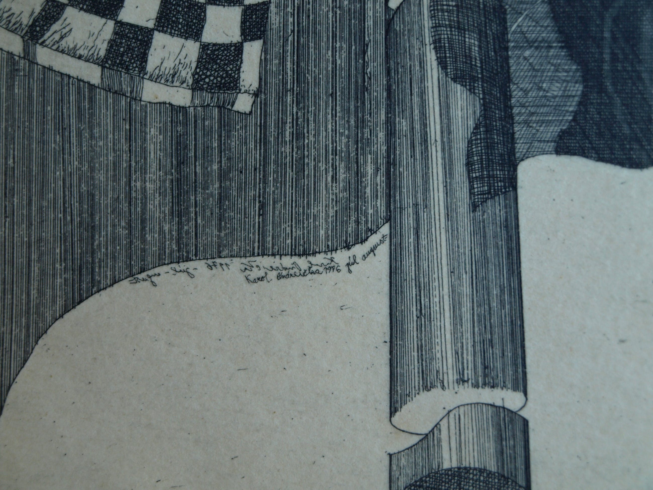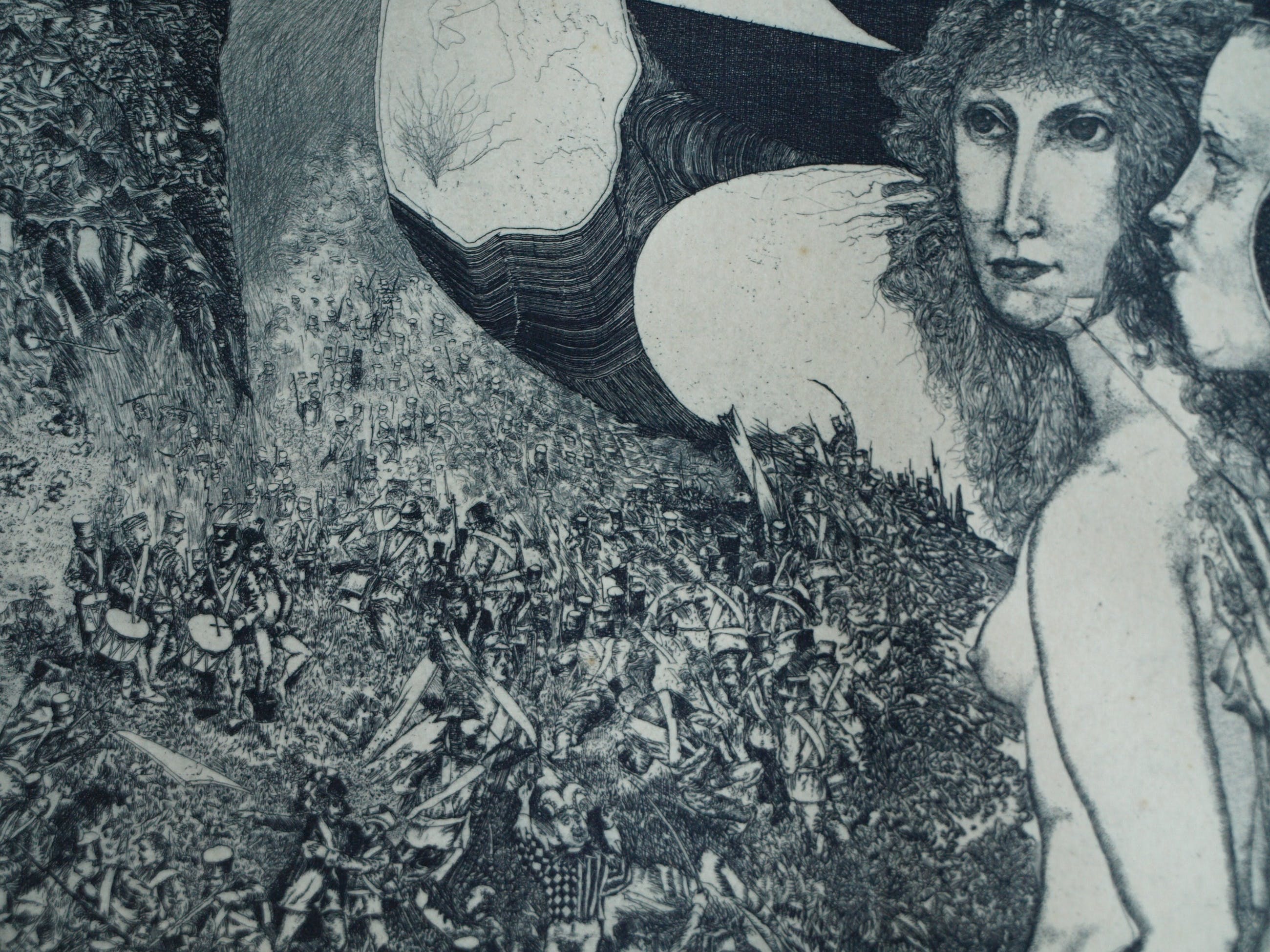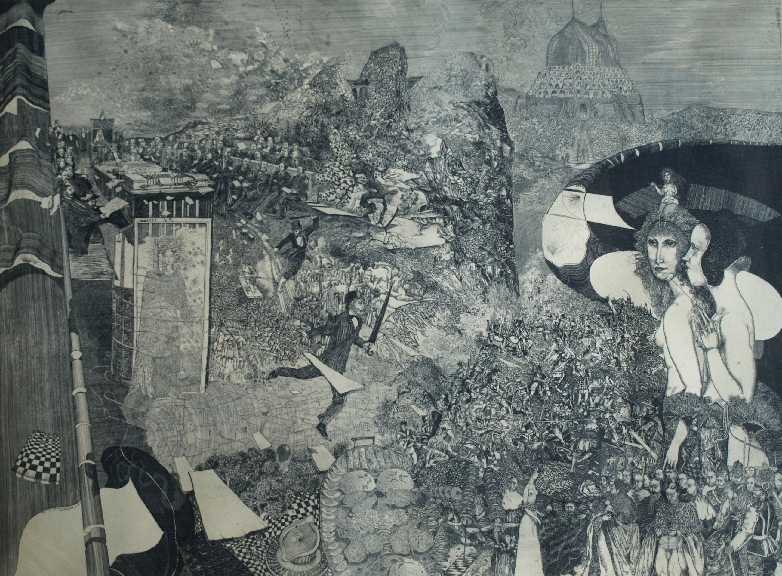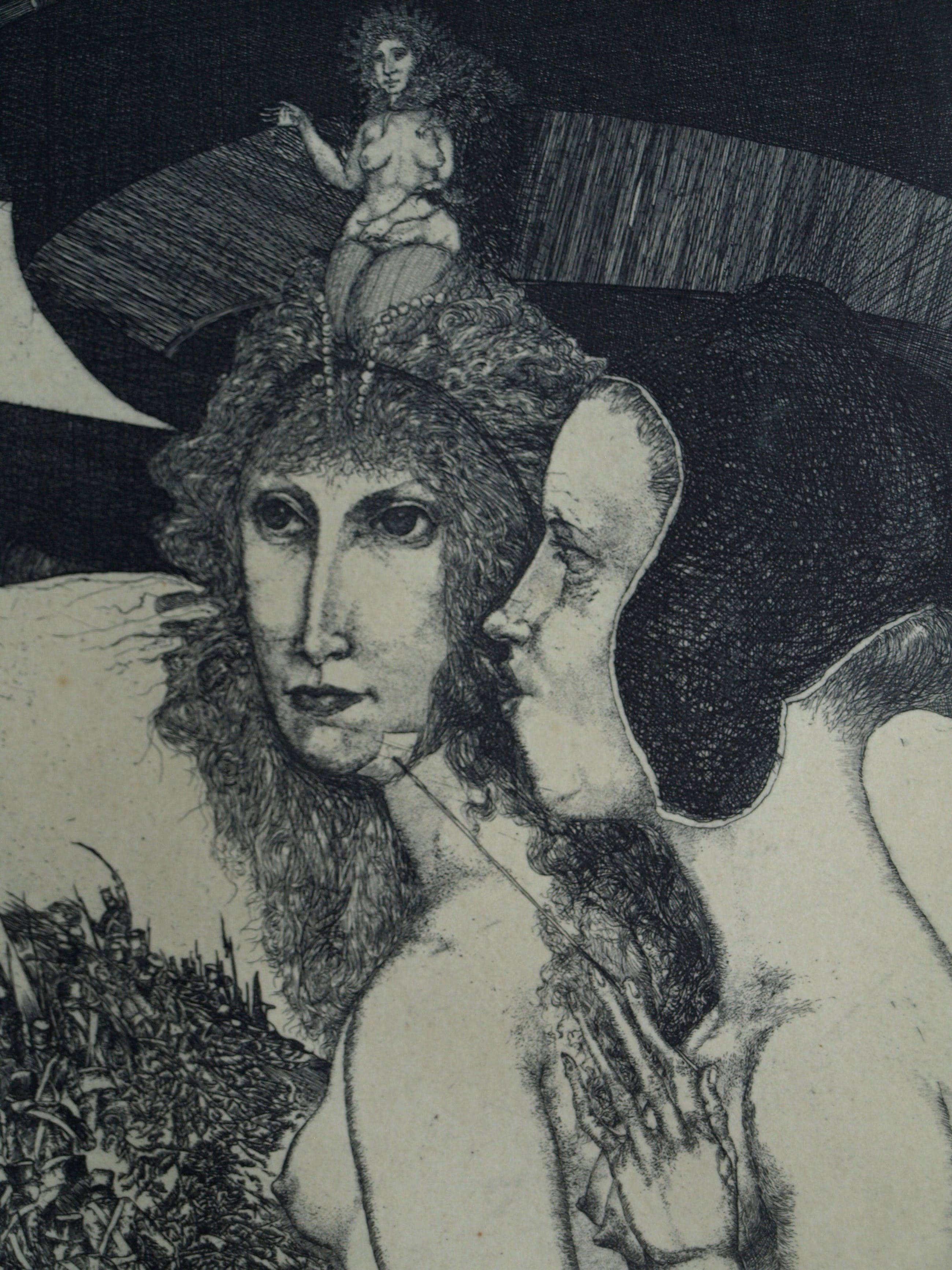 Een grote (49 x 64 cm) ets van de Slowaakse kunstenaar Karol Ondreicka (1944-2003).