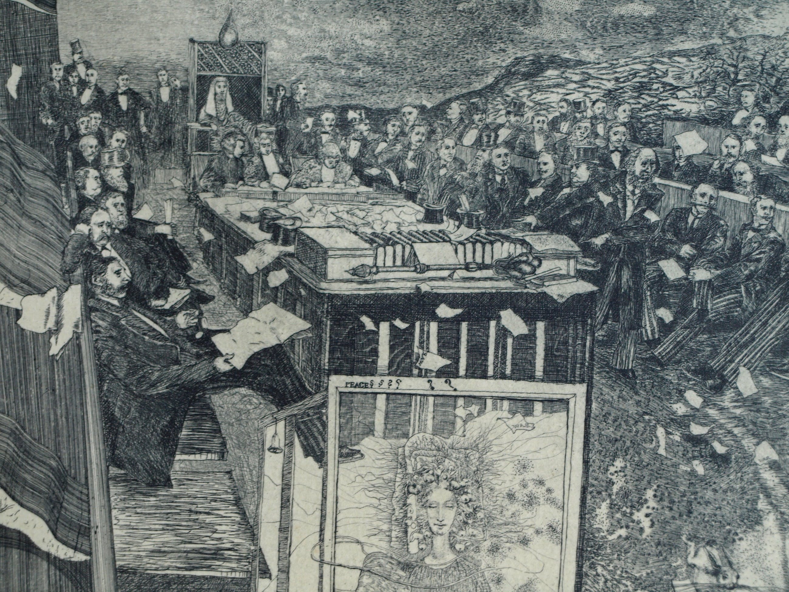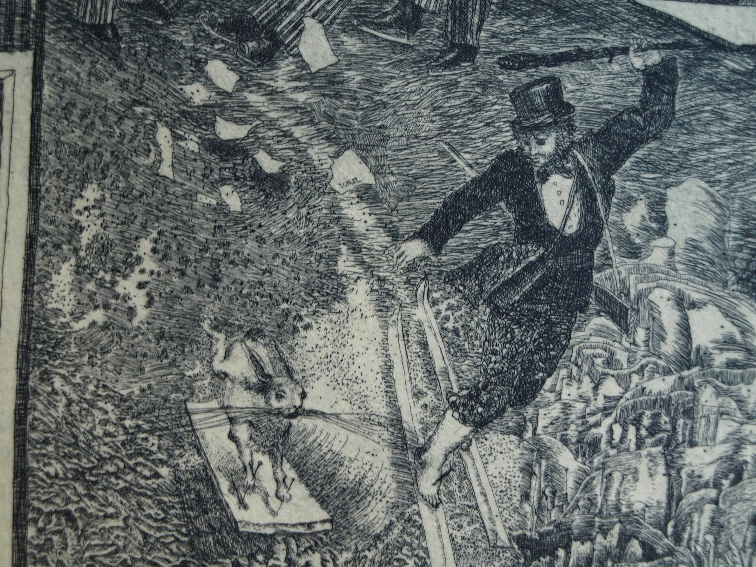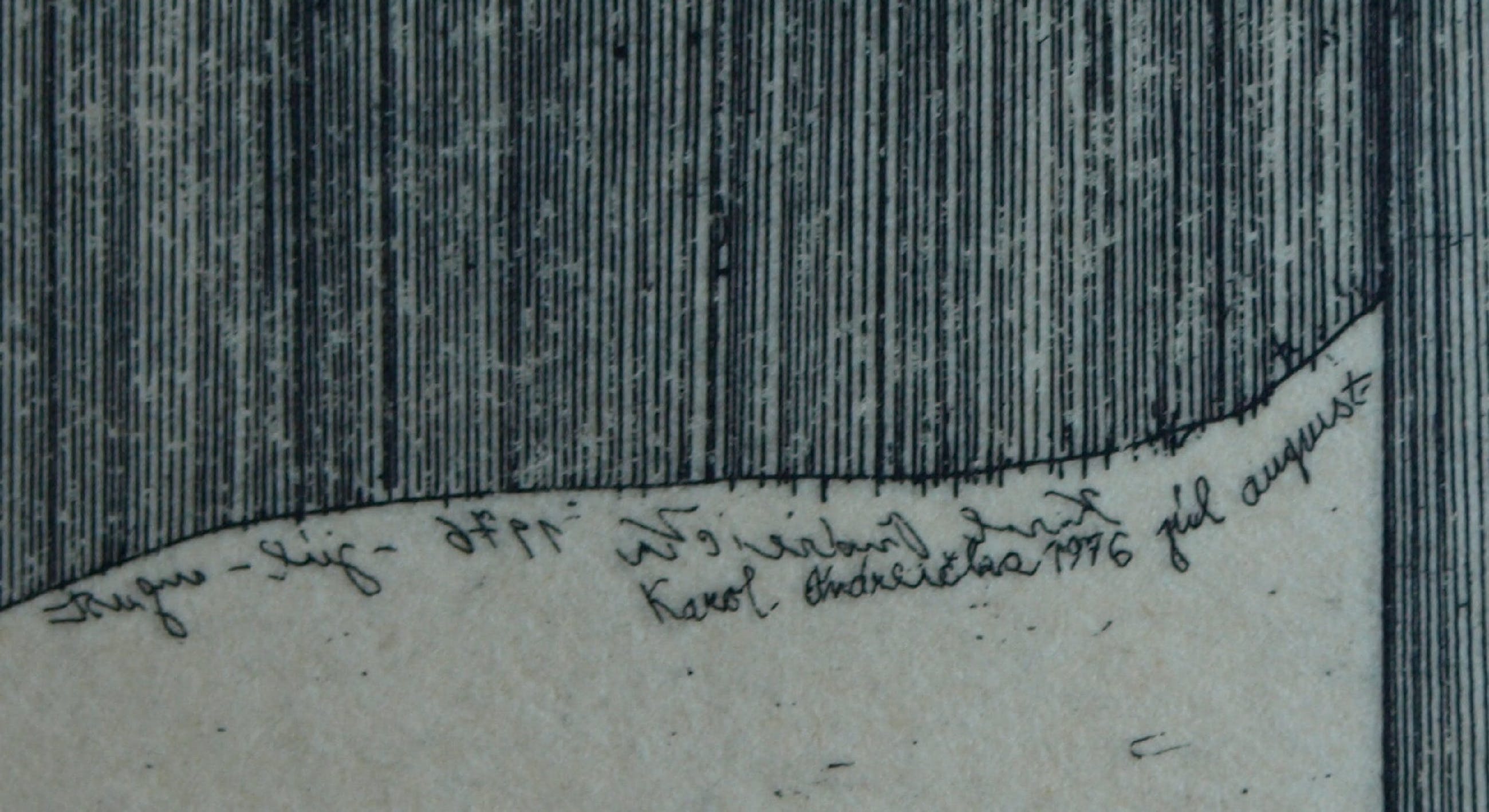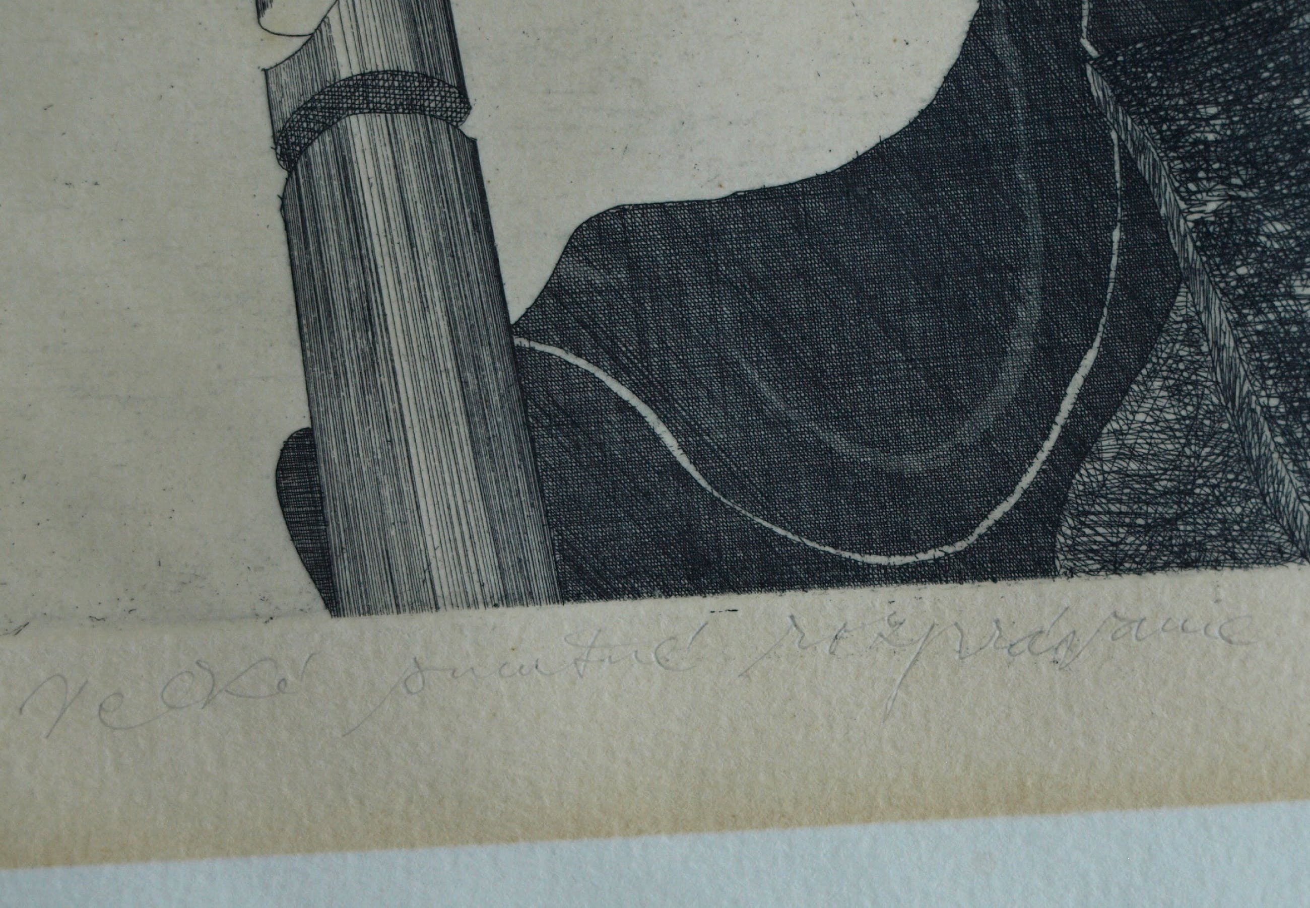 Een grote (49 x 64 cm) ets van de Slowaakse kunstenaar Karol Ondreicka (1944-2003).