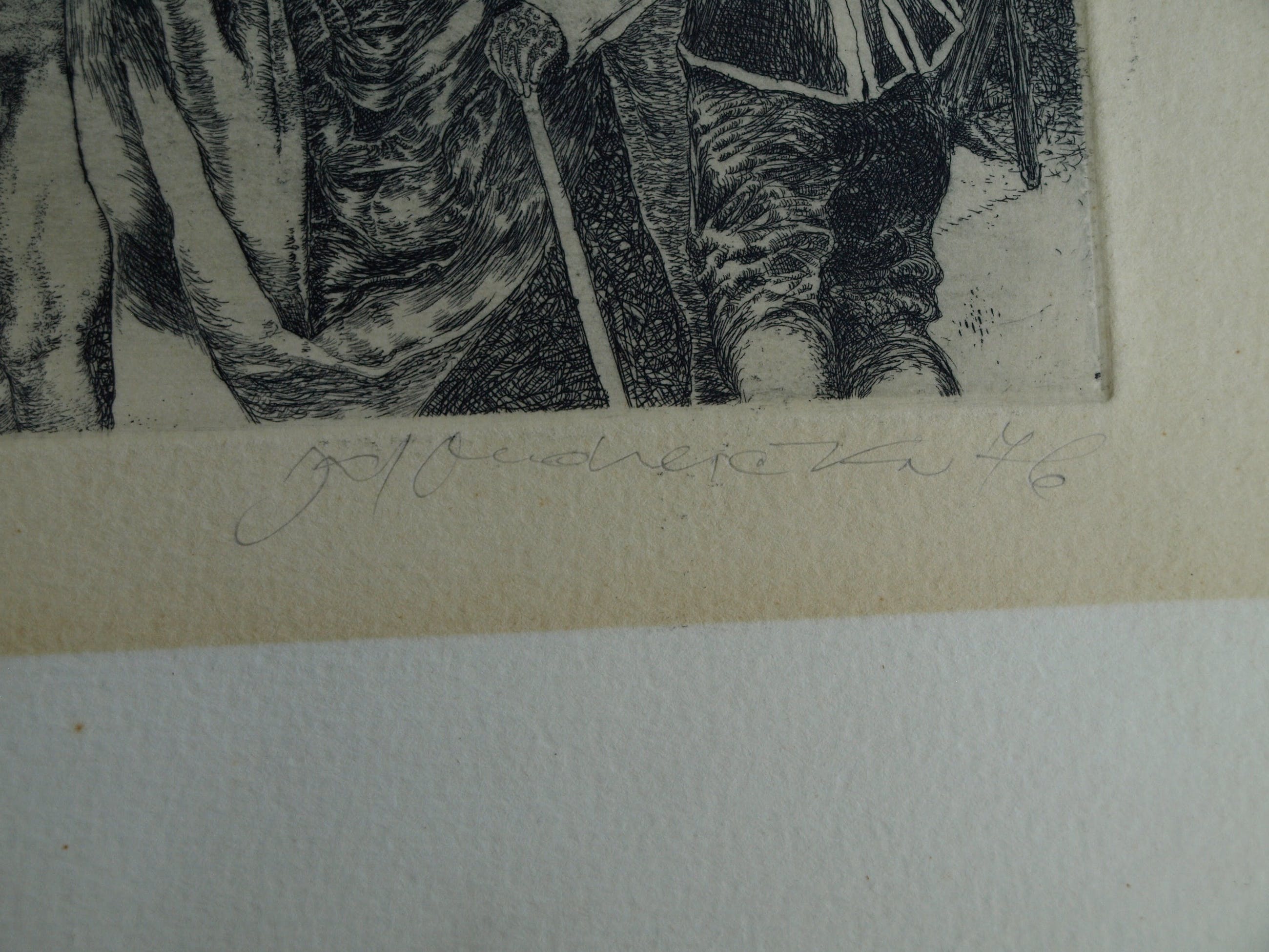 -Conditie: Het papier van de ets en van het passe-partout is ‘vergeeld’. Het passe-partout heeft vlekken en het blad van de ets heeft vlekken op de hoeken (buiten beeld). Verder in prima staat.