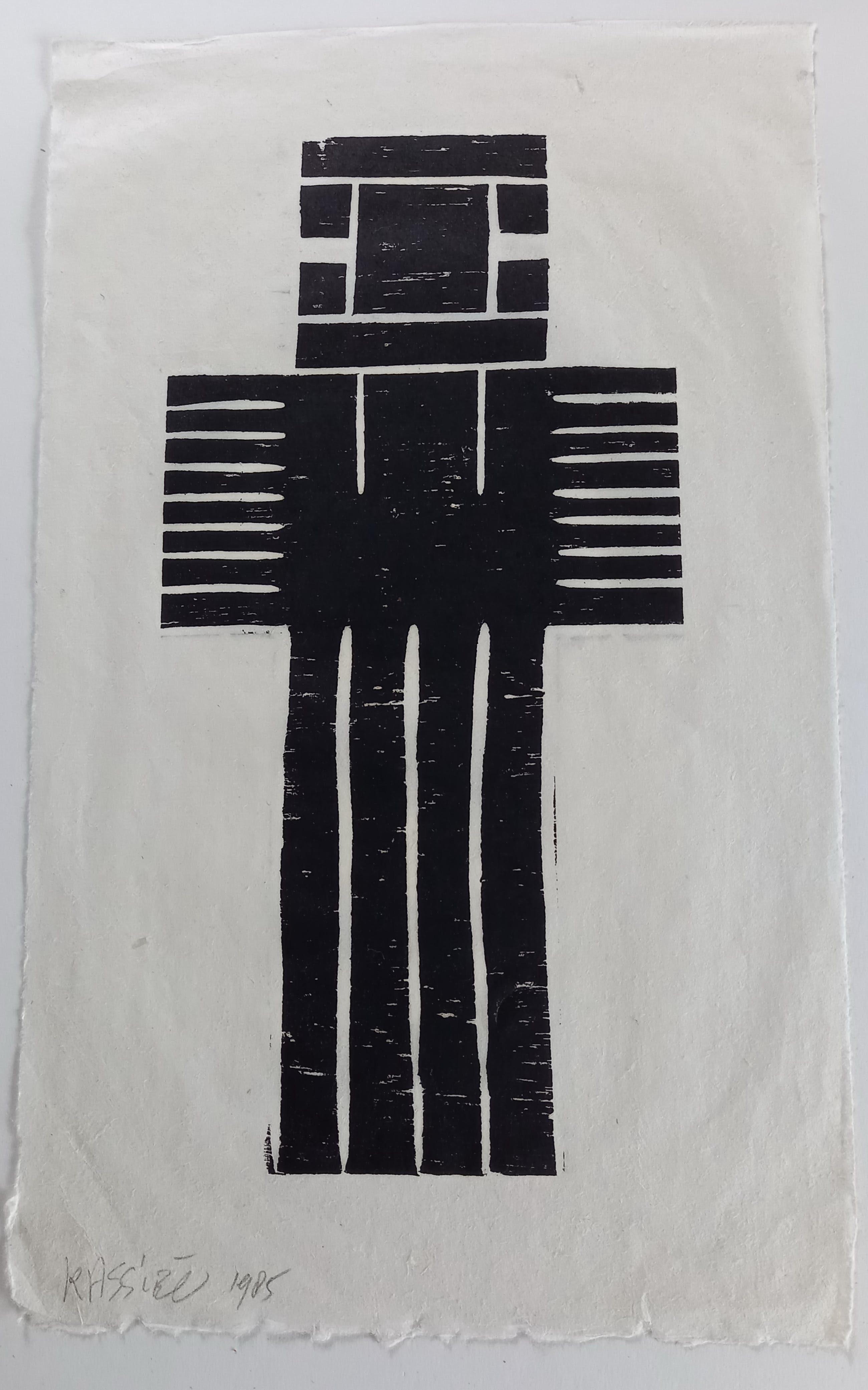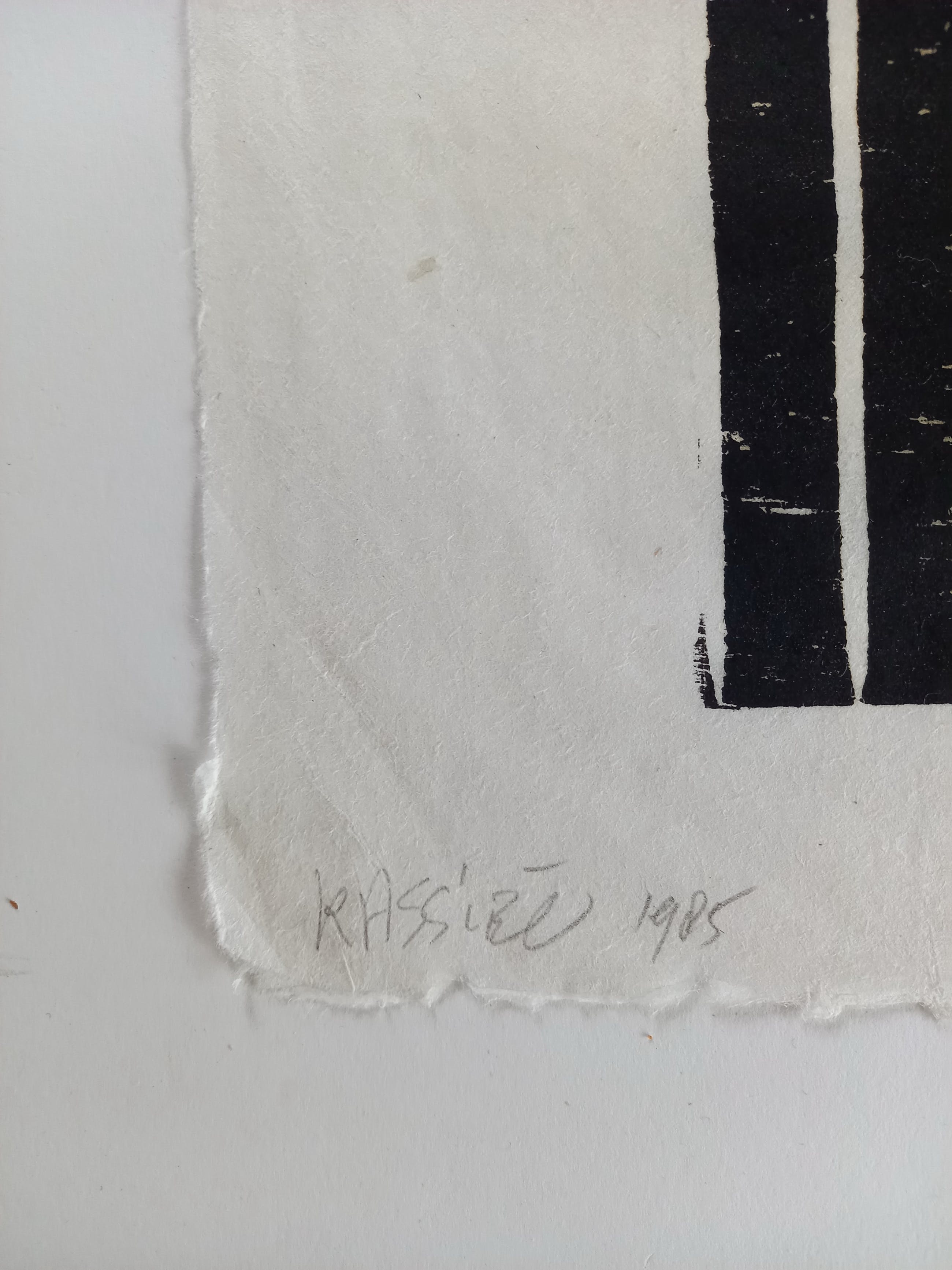 houtsnede op japans papier, 40 x 24 cm, aan de bovenzijde geplakt op wit karton, 45 x 30 cm. gesigneerd met potlood
