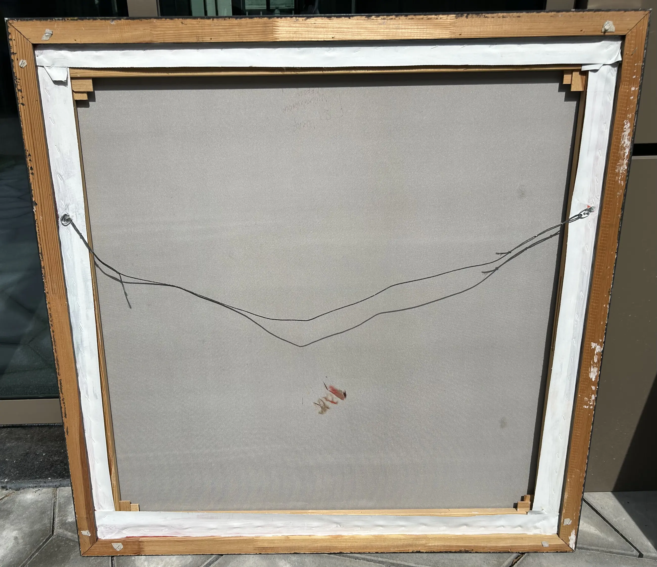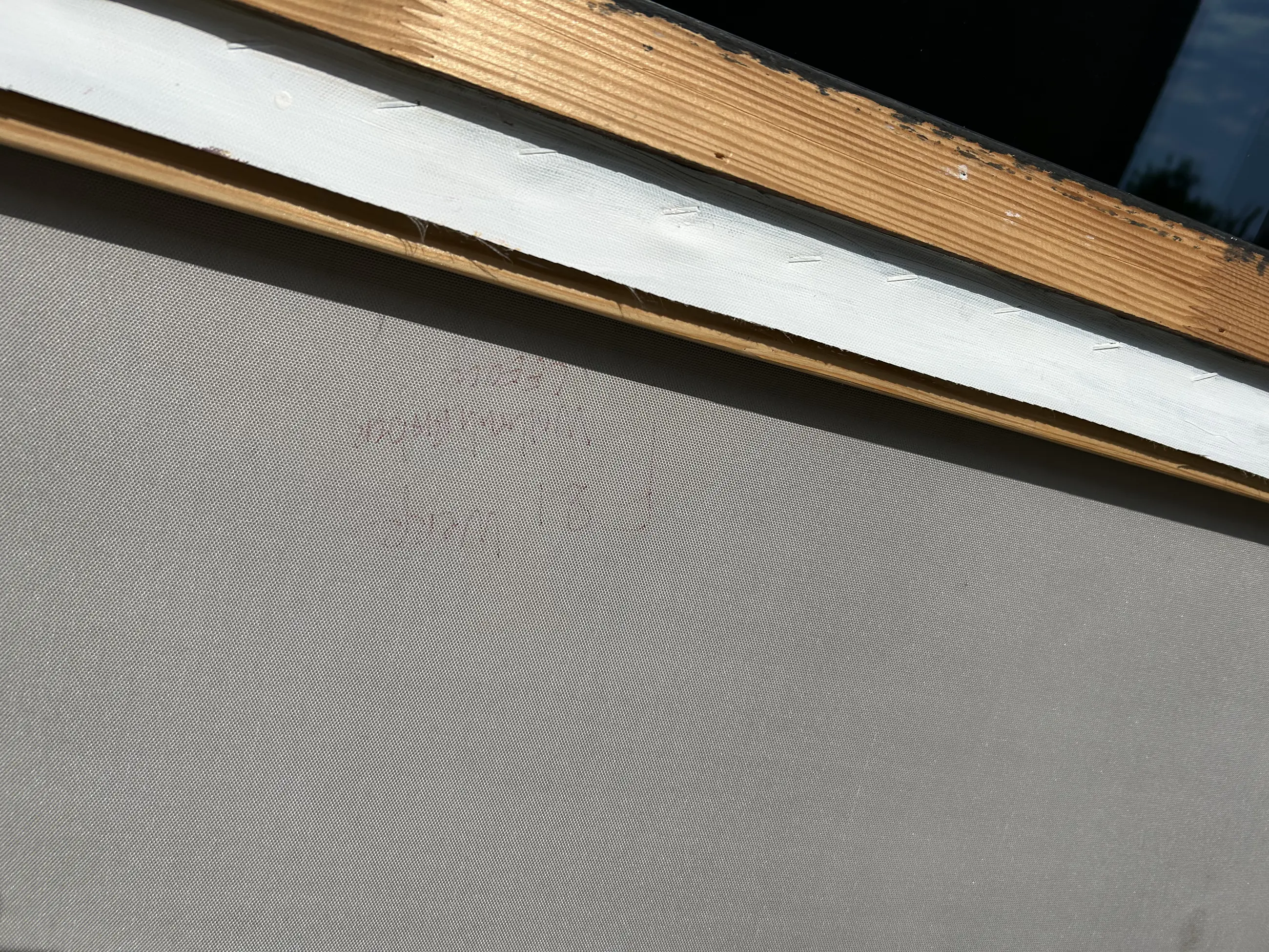 De staat van het schilderij is goed. De geverfde lijst is beschadigd.