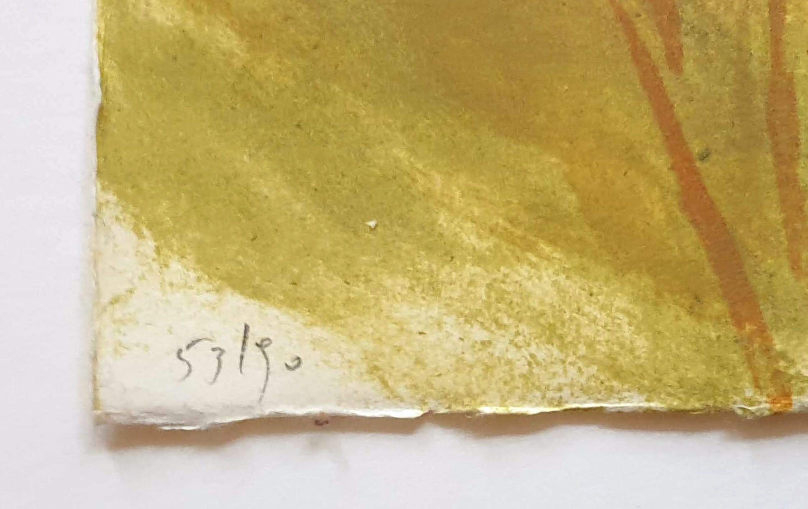 Litho van Katrien Caymax met de titel: 'Yesterday'. Het werk is rechtsonder met de hand gesigneerd door de kunstenaar.