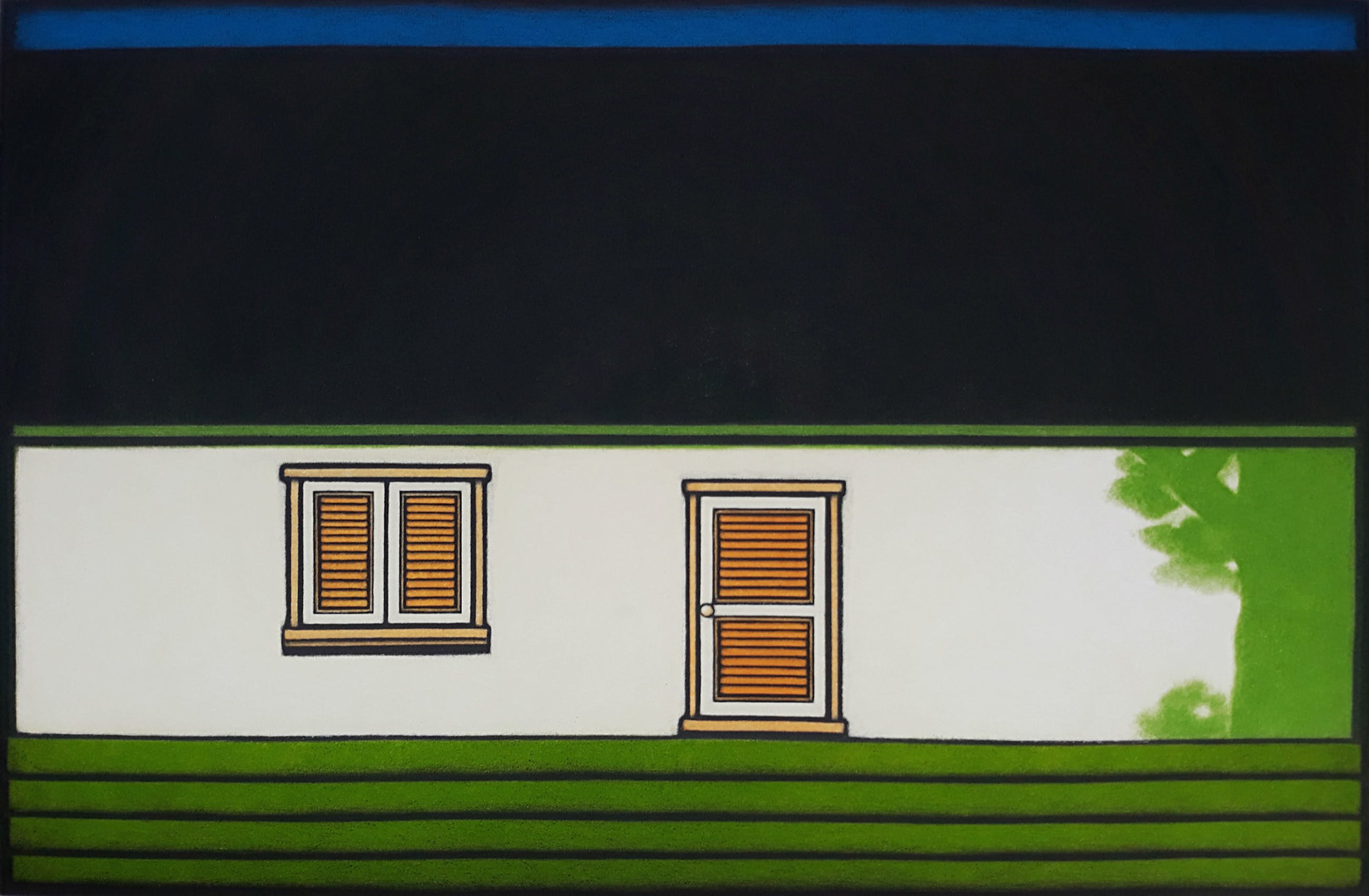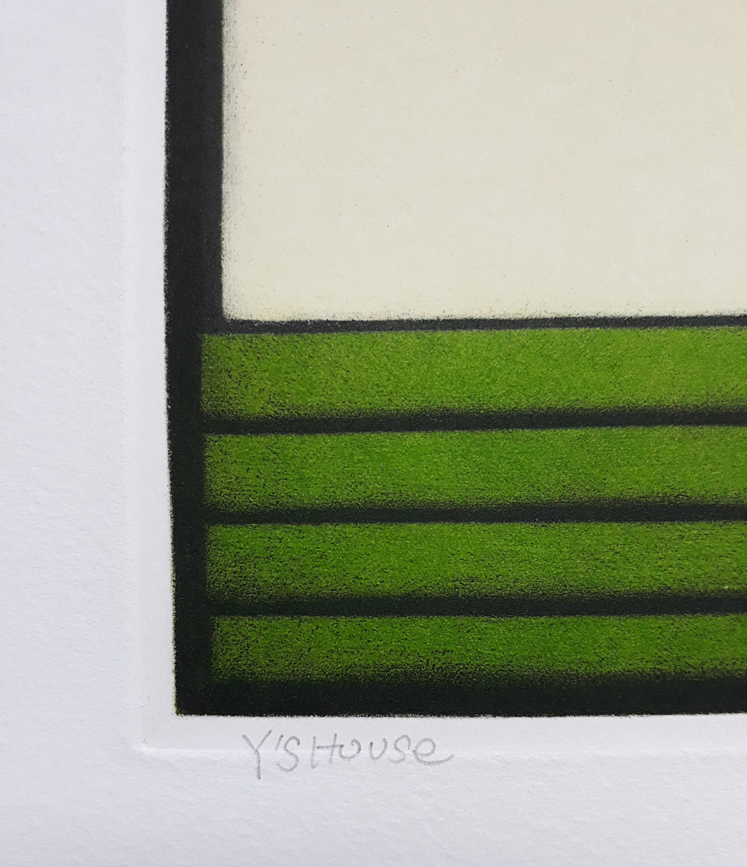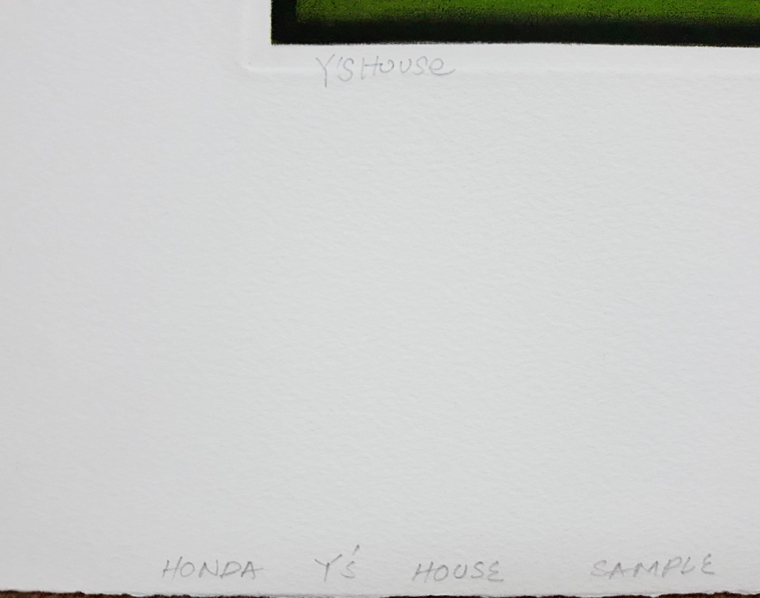 Karakteristieke kleuren mezzotint van Kazuhisa Honda. Mezzotint ets op geschept papier, met potlood gesigneerd(?) en getiteld, een “Sample” exemplaar. In zeer goede conditie, klein kreukje rechts in beeld.
