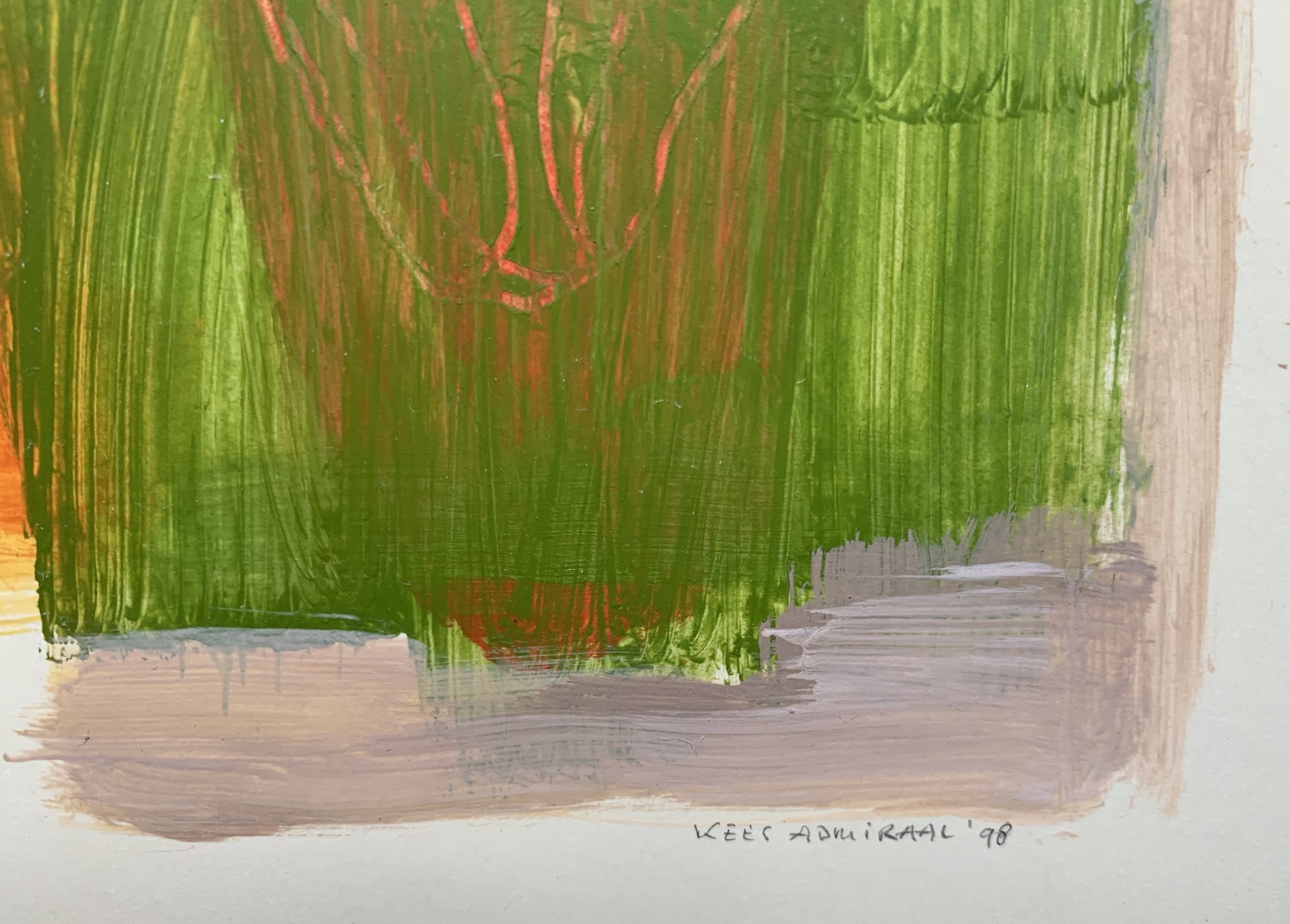 Door hem vervaardigd in 1998 en rechtsonder met de hand gesigneerd. Afmeting van het werk zelf is 16 x 16cm.