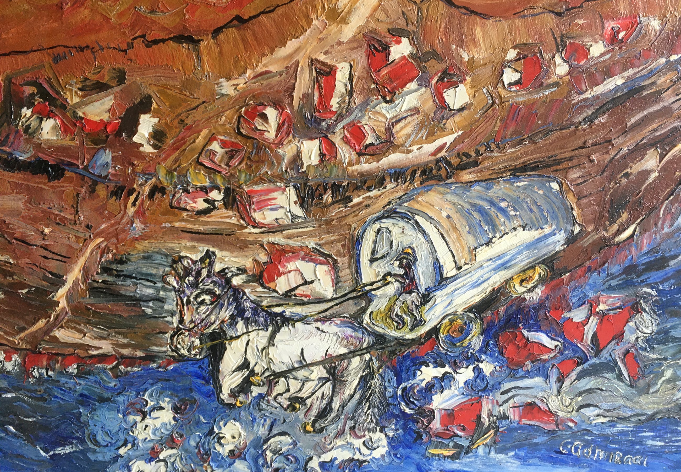 olieverf op spaanplaat van Cornelis Admiraal (Uitgeest 1936 - Bergen 2005)