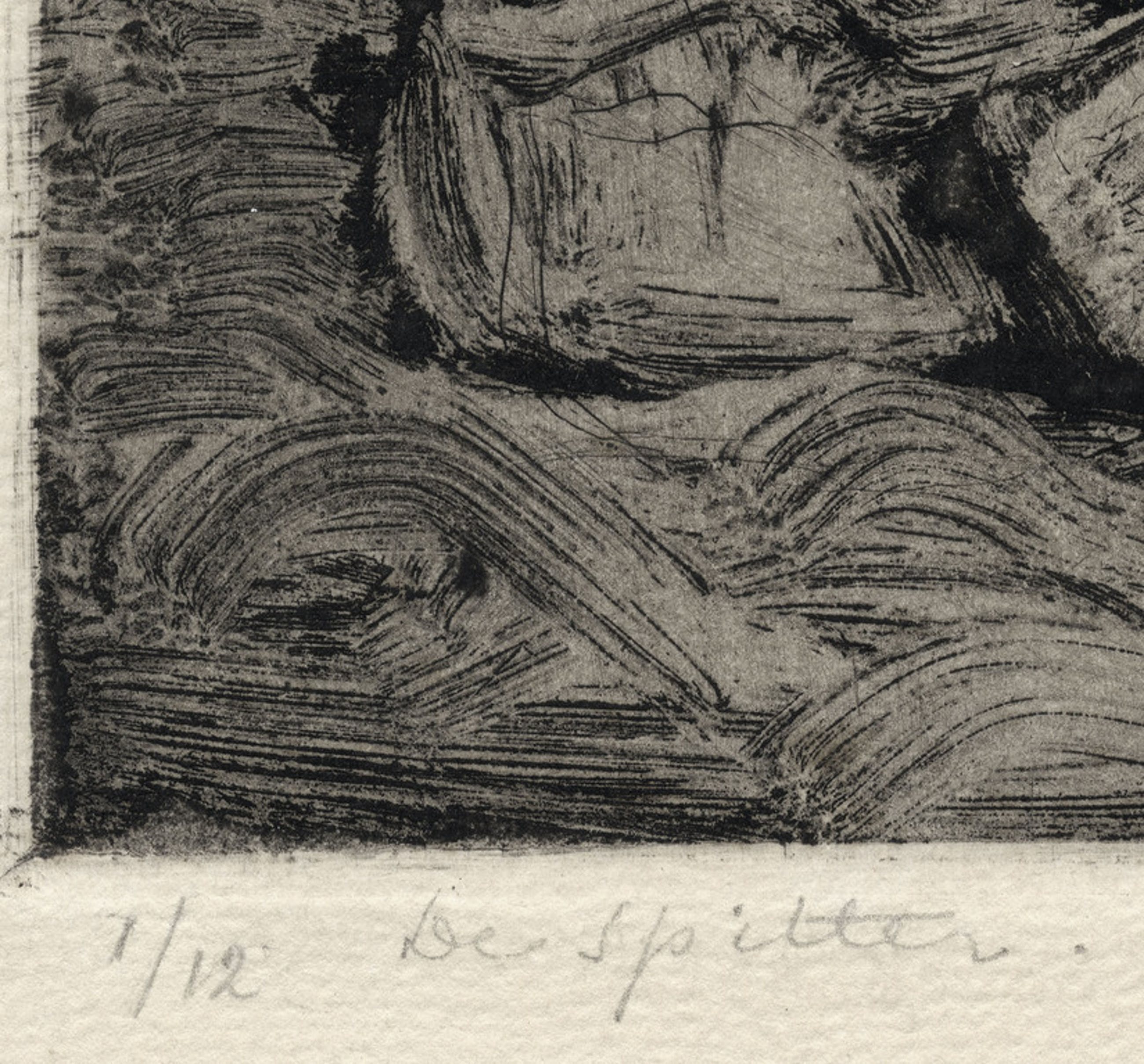 Gesigneerd en gedateerd rechtsonder, linksonder in potlood: "1/12" en "De Spitter"".