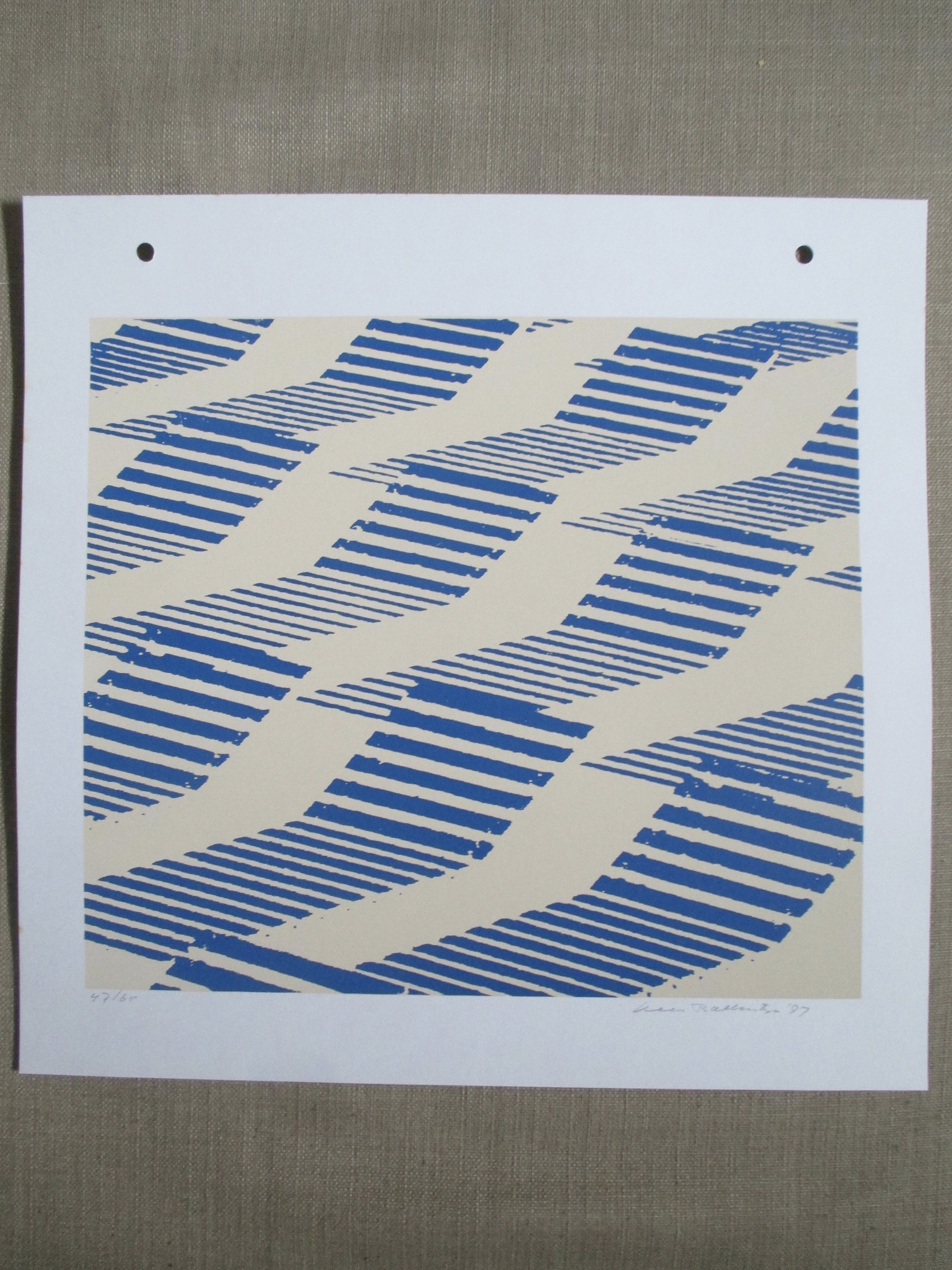 Zeefdruk van Kees Ballintijn, gesigneerd, gedateerd en genummerd in potlood. Verzending tussen twee platen, 8 euro, aangetekend 9,65