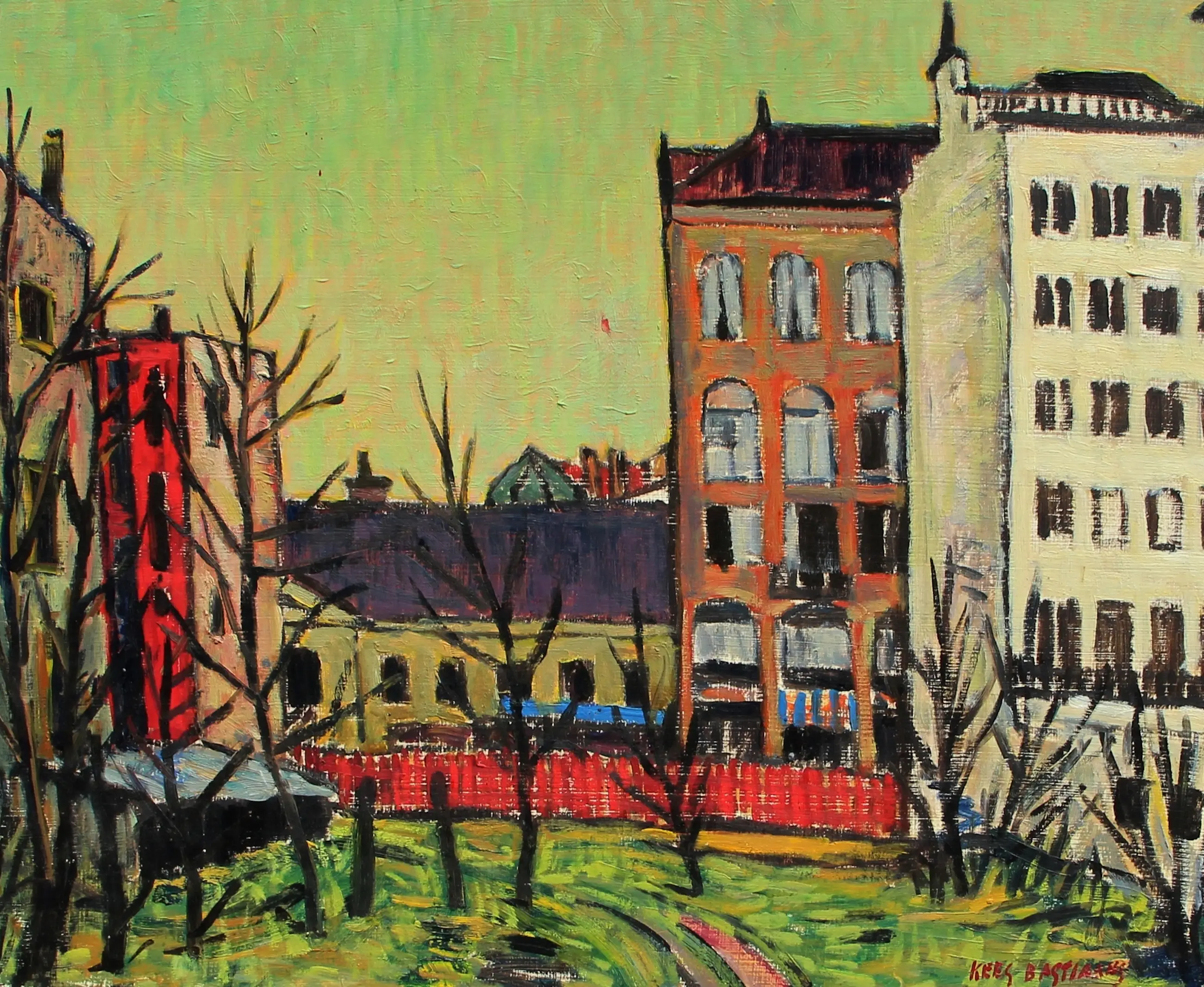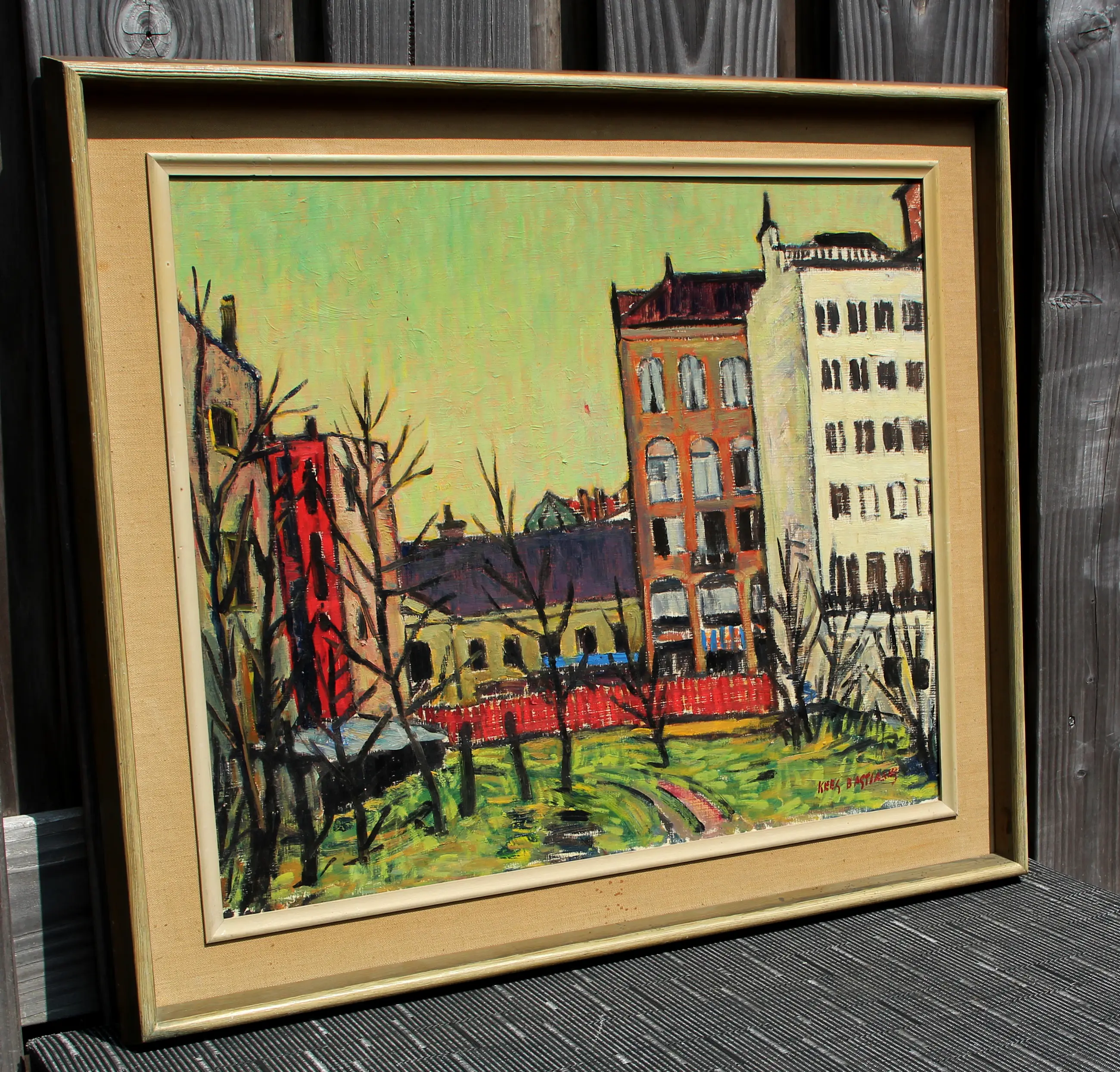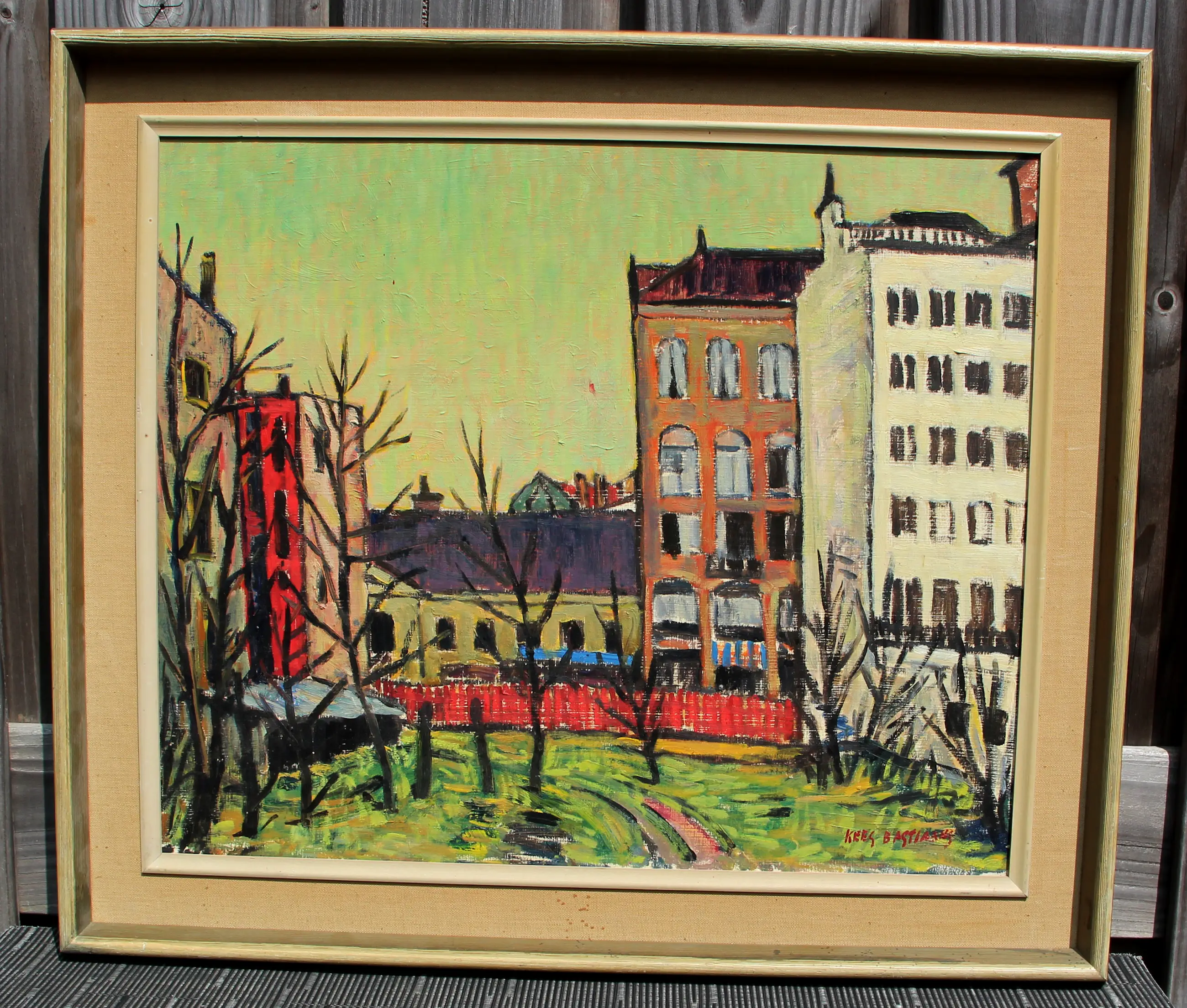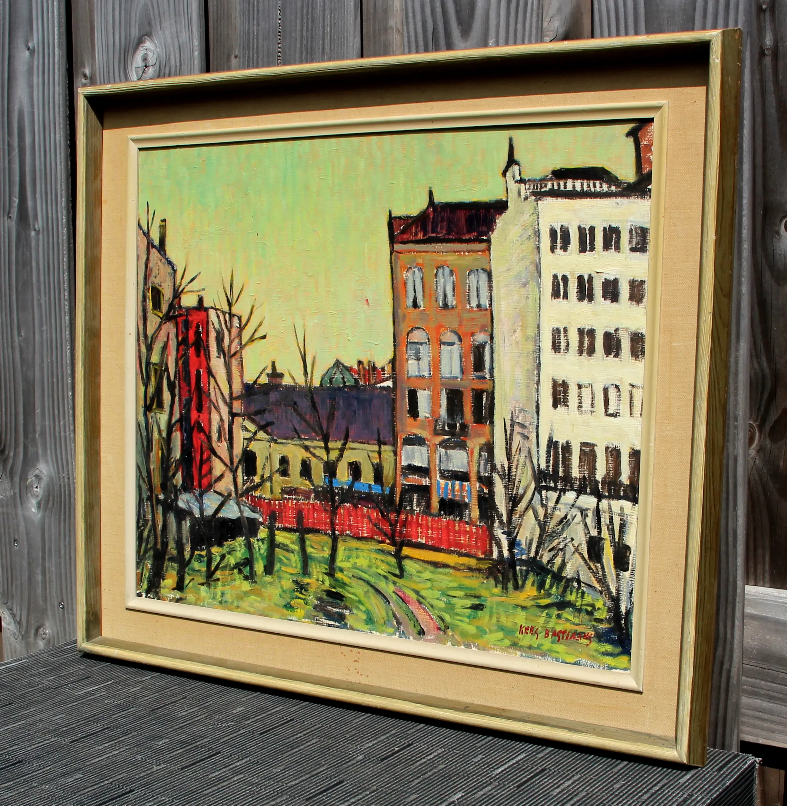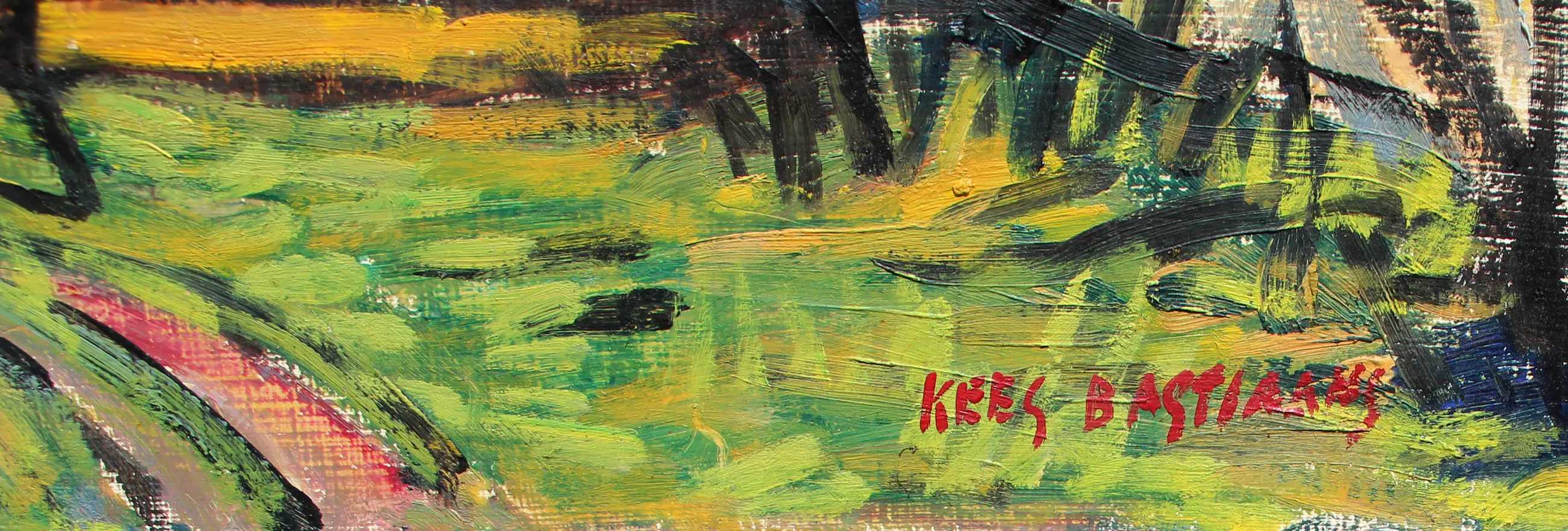 Olieverf op paneel van Kees Bastiaans. Het werk is rechtsonder gesigneerd door de kunstenaar. Afmetingen incl. lijst: H57,5 x b66,5 cm. Afmetingen voorstelling: H45 x b54 cm. De authenticiteit van het, aangeboden, werk wordt volledig gegarandeerd. Een certificaat van echtheid kan, op aanvraag, worden gemaild.