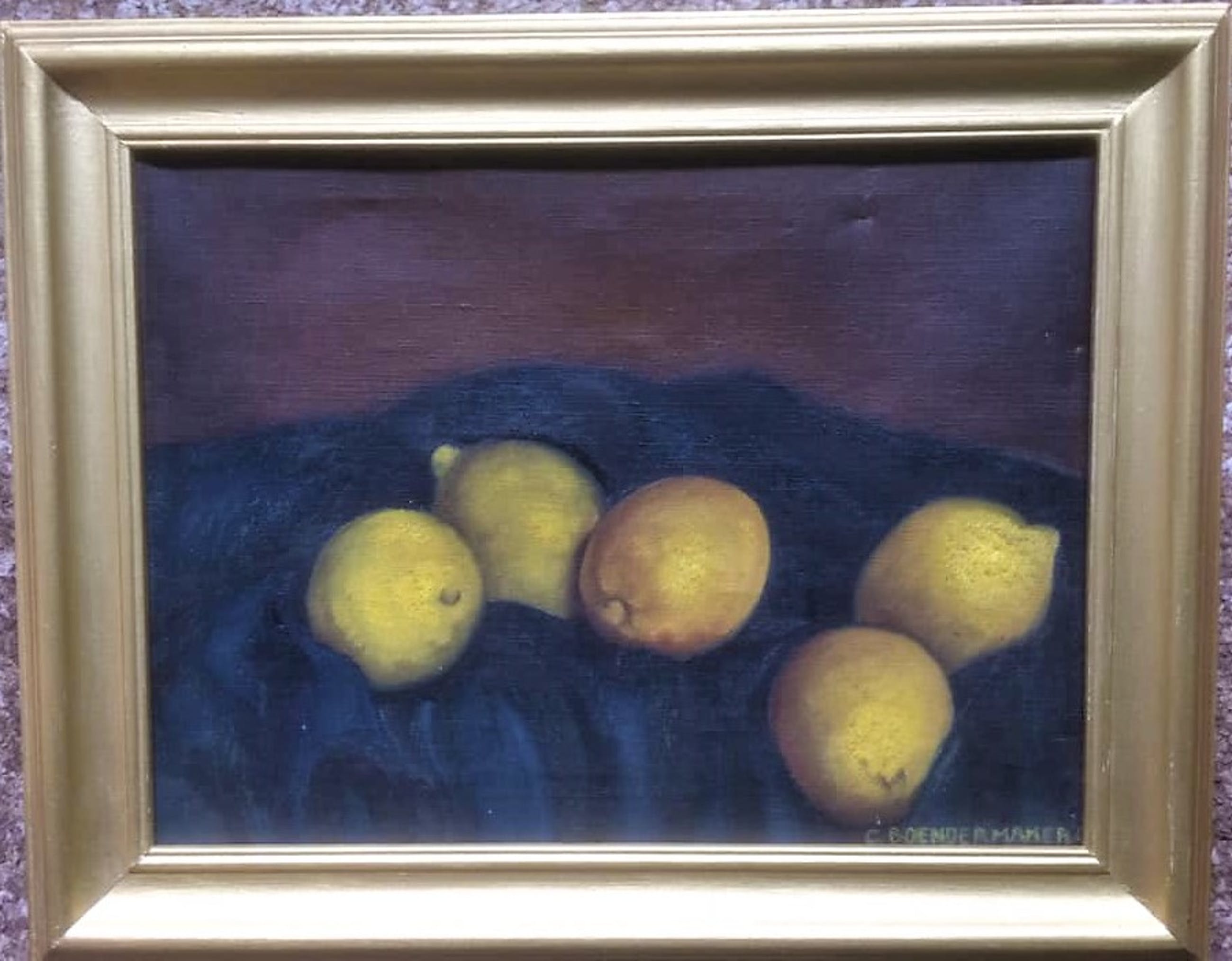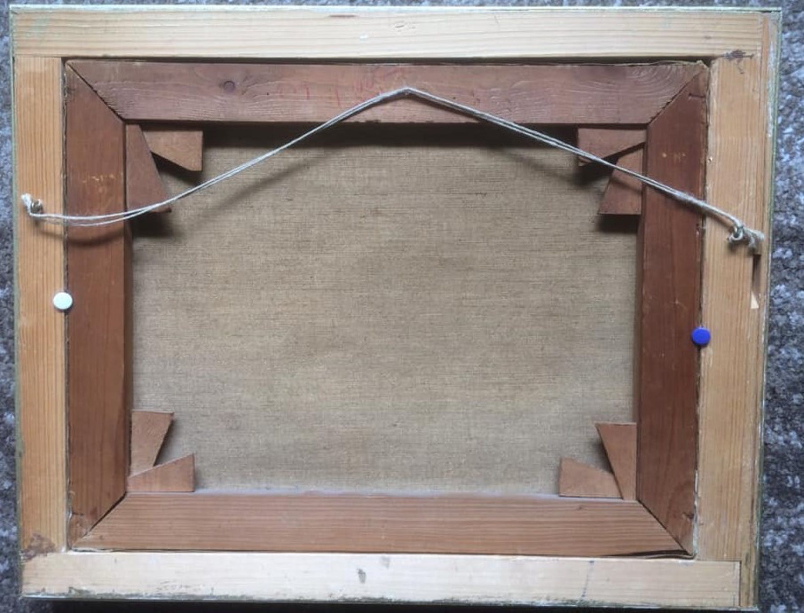 Schilderij is in goede staat met een klein deukje in het doek rechtsboven