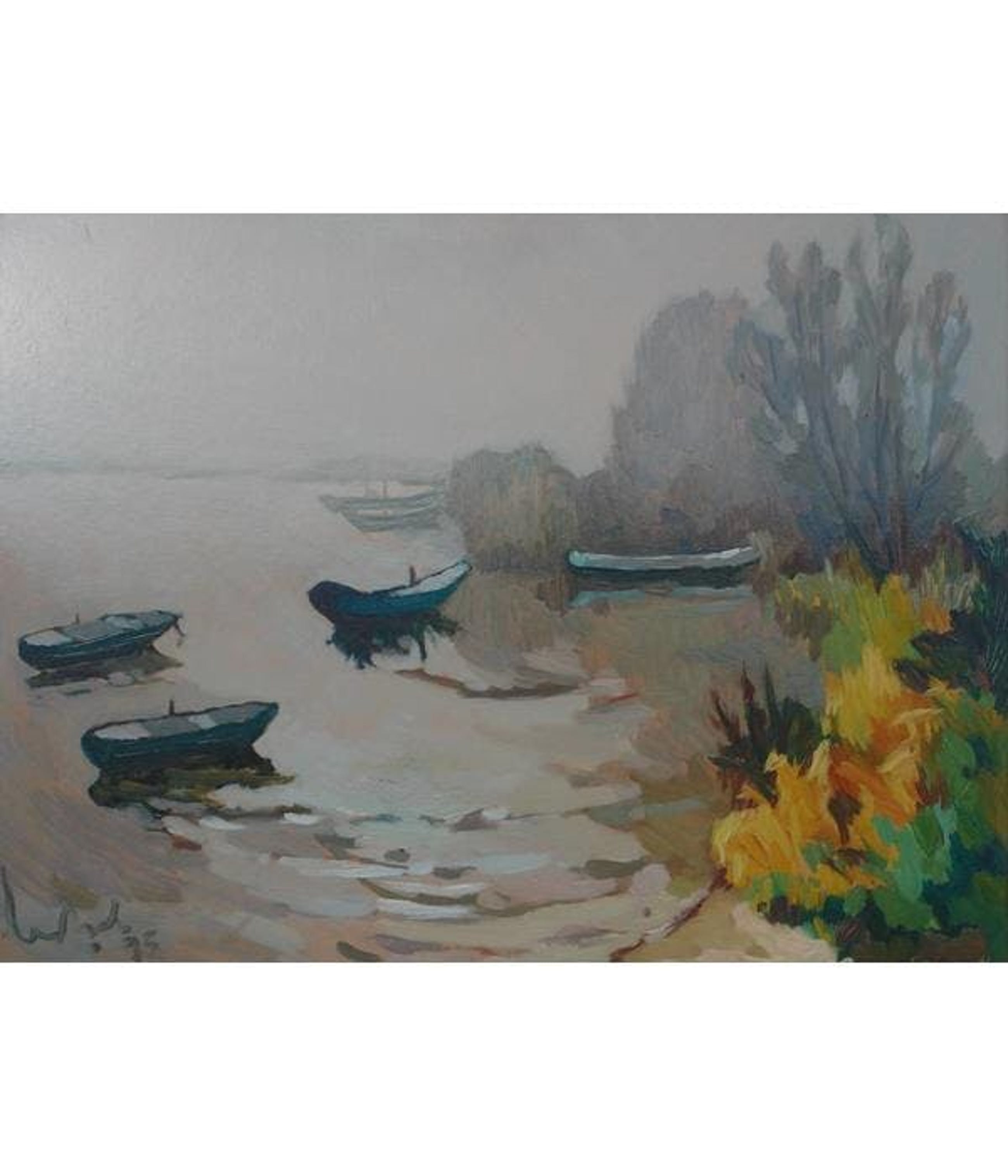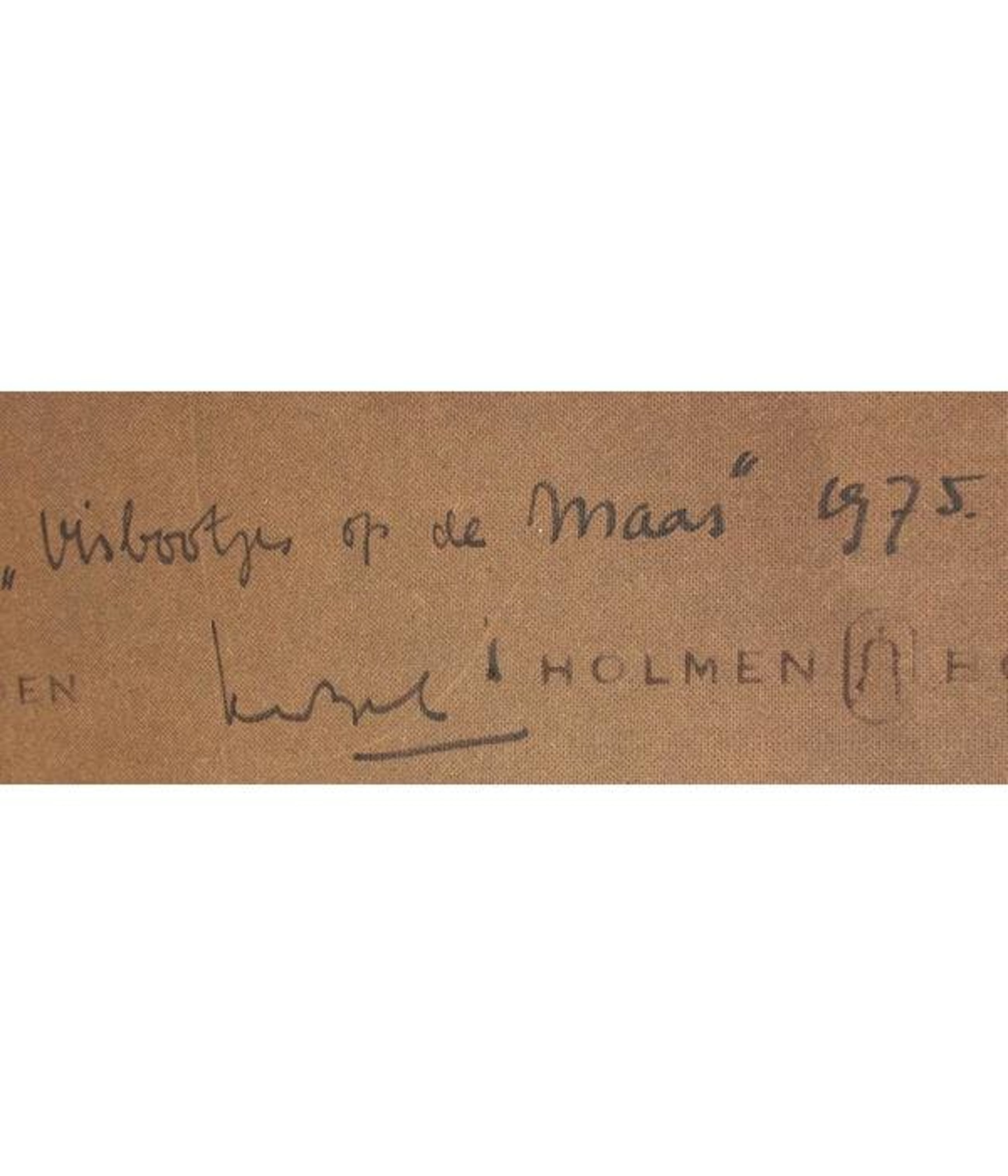Prachtig schilderij van deze bekende impressionist. Onbeschadigd met fraaie bijpassende lijst, speciaal op maat gemaakt voor dit werk. Op de achterzijde staat de titel "Visbootjes op de Maas" , het jaartal en nogmaals signatuur van de schilder. Bij voorkeur afhalen in Utrecht