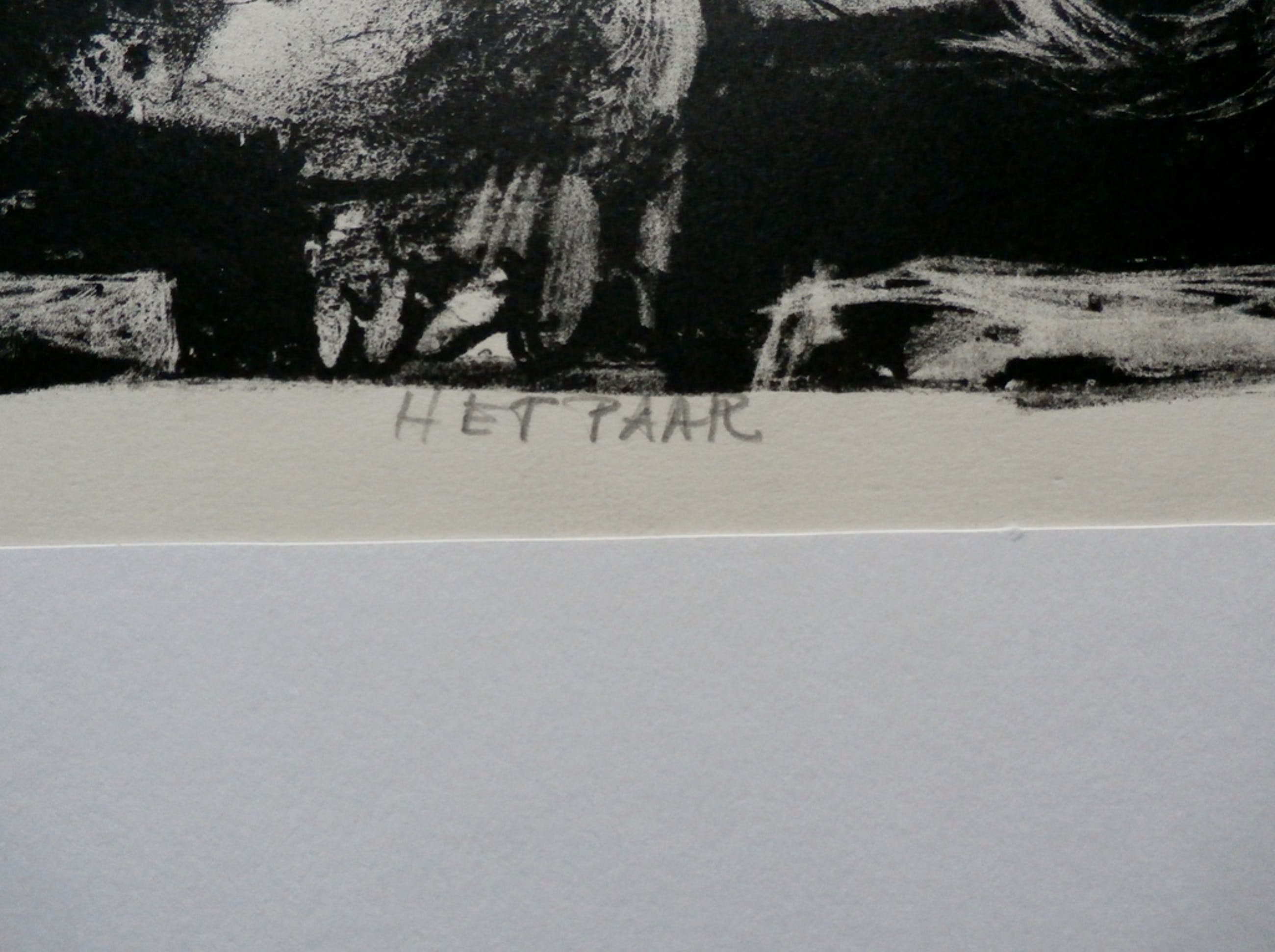 Litho van Kees Buurman uit 1964 (december). Titel: Het Paar. Genummerd: litho 2 6/8. De litho is met potlood linksonder gesigneerd door de kunstenaar. Afmetingen voorblad passe-partout litho: h35 x b50 cm. Afmetingen voorstelling: h22 x b28 cm.