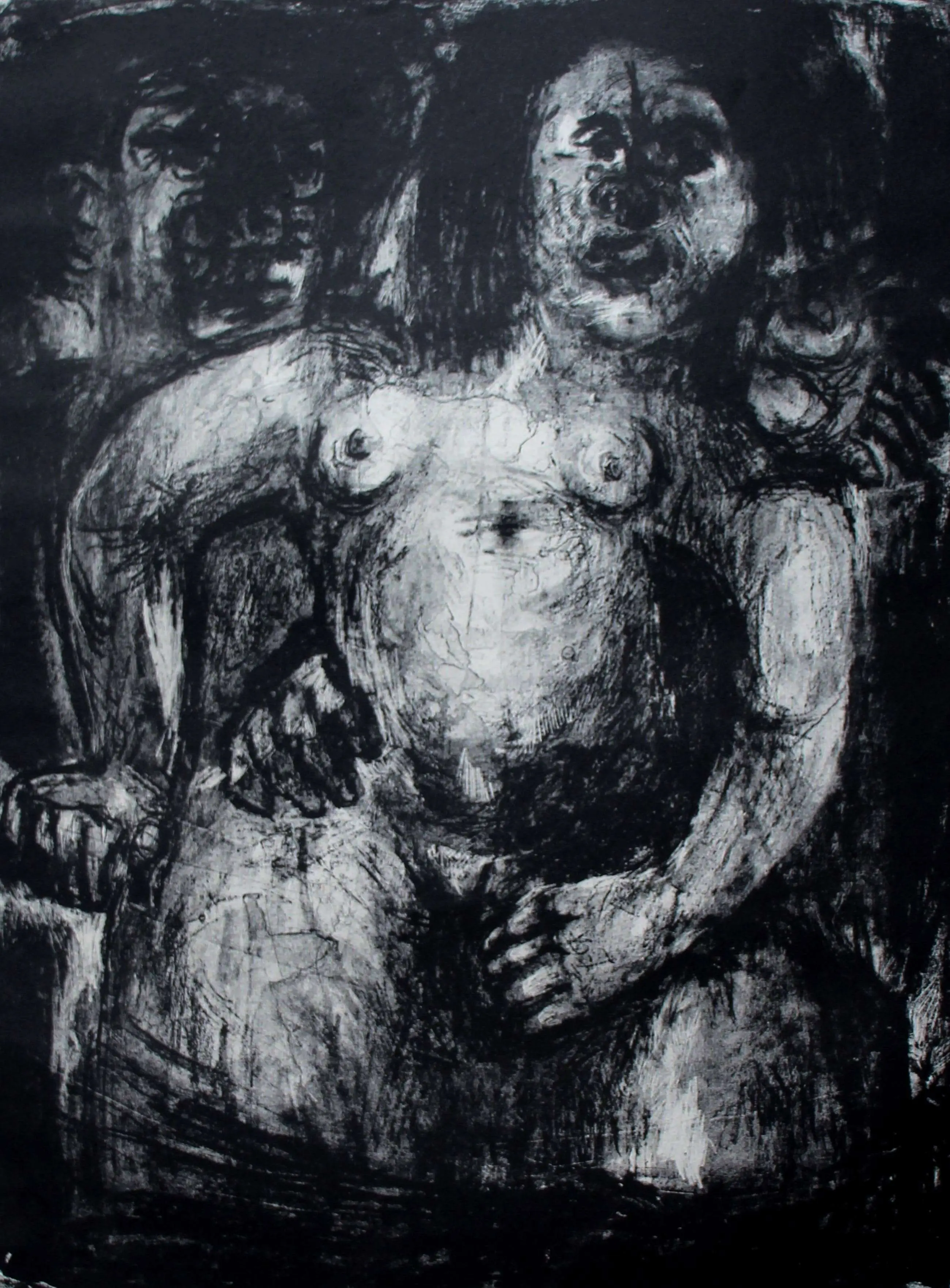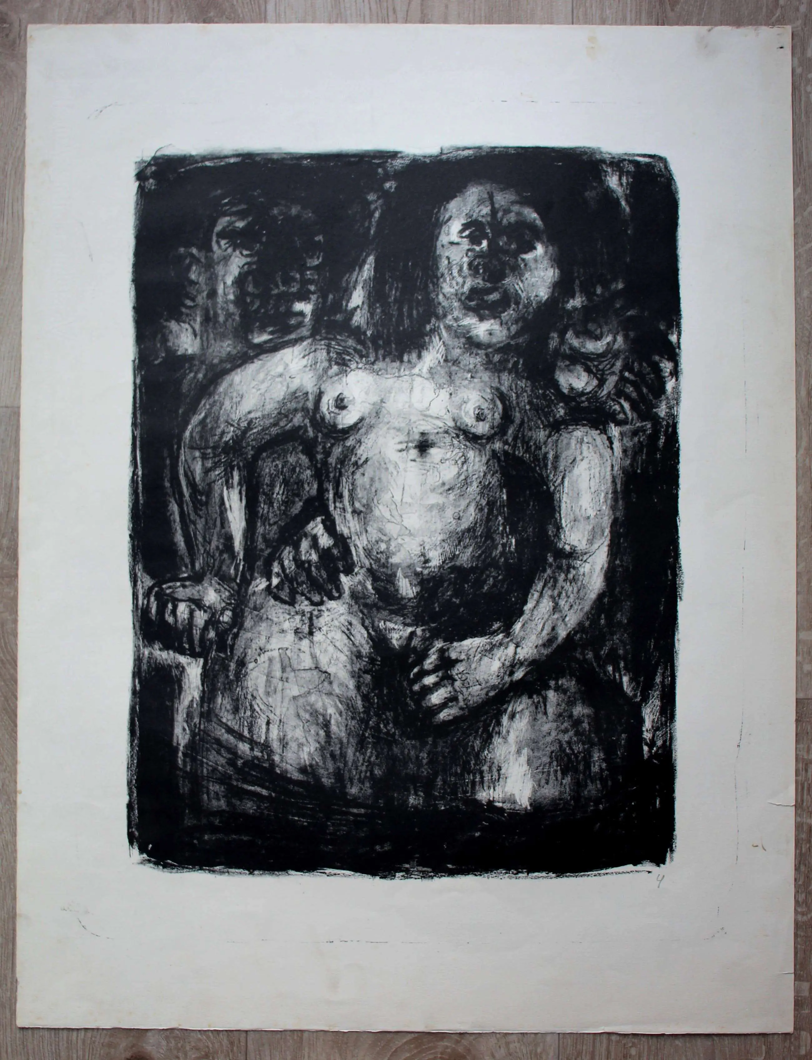 Litho van Kees Buurman. Afmetingen voorstelling: H65 x b50.5 cm. Afmetingen voorstelling: H46.5 X b35 cm. Het werk is niet gesigneerd. Het werk is in goede staat. De witte rand om het werk heen is wat vergeeld en er zitten wat vlekjes op.