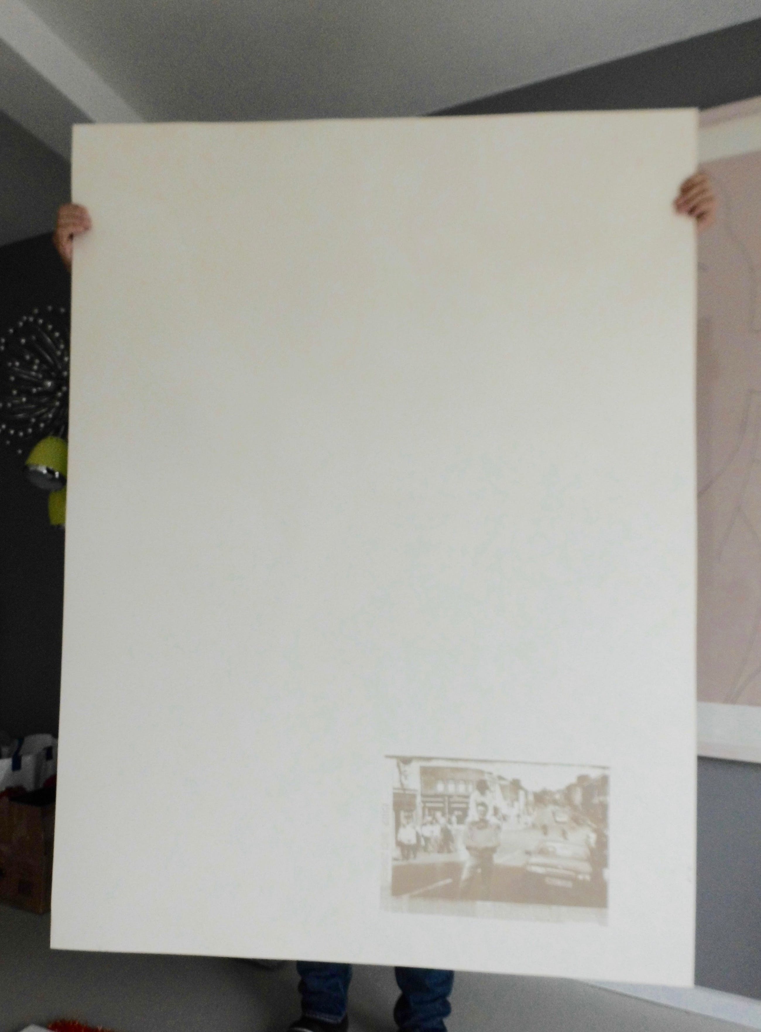 De foto's op de achterzijde van deze prenten verwijzen naar de gebeurtenis (aanslag IRA 1998 in het Noord-Ierse stadje Omagh, waarbij 29 mensen om het leven kwamen) die ten grondslag ligt aan deze werken.