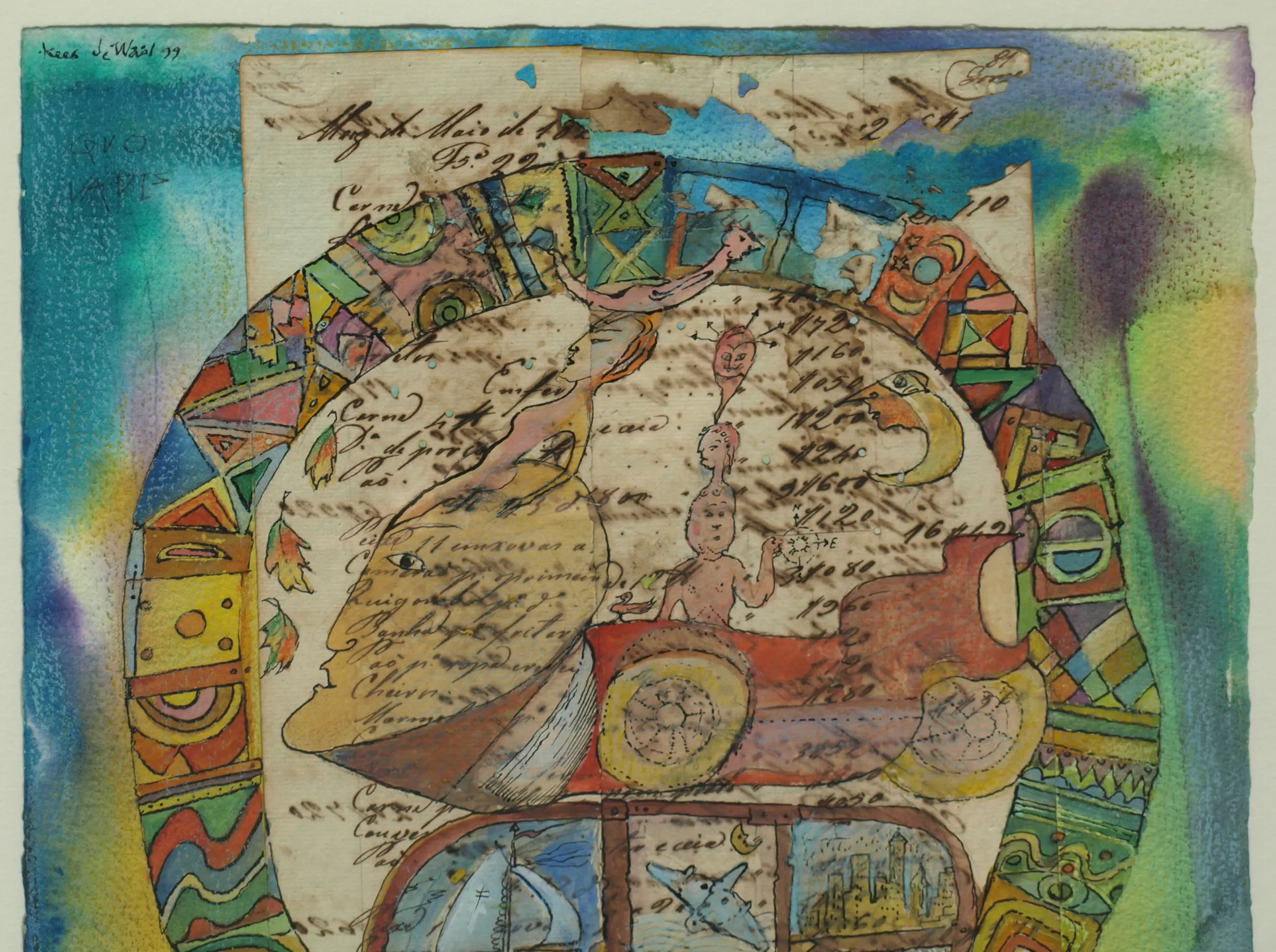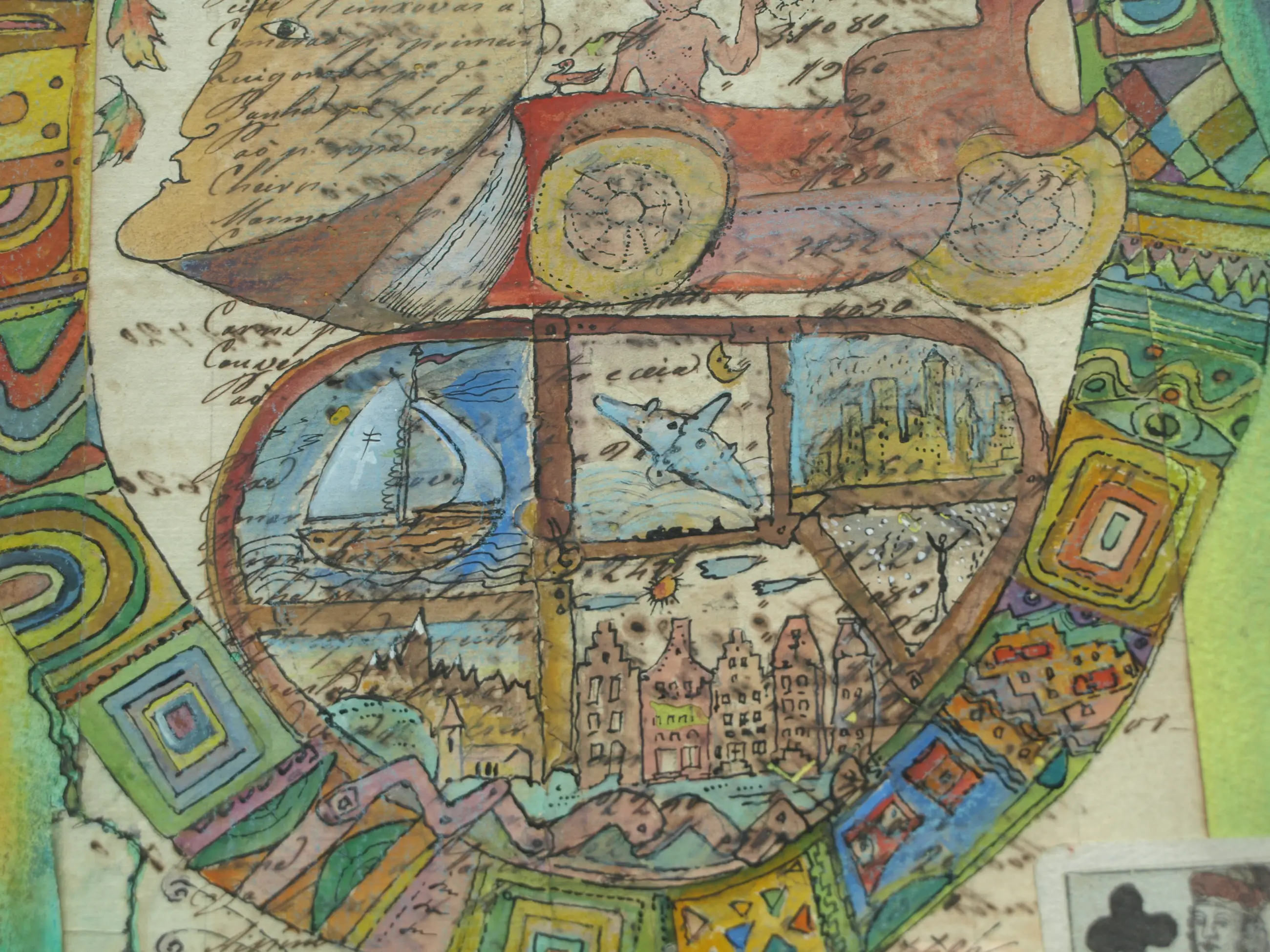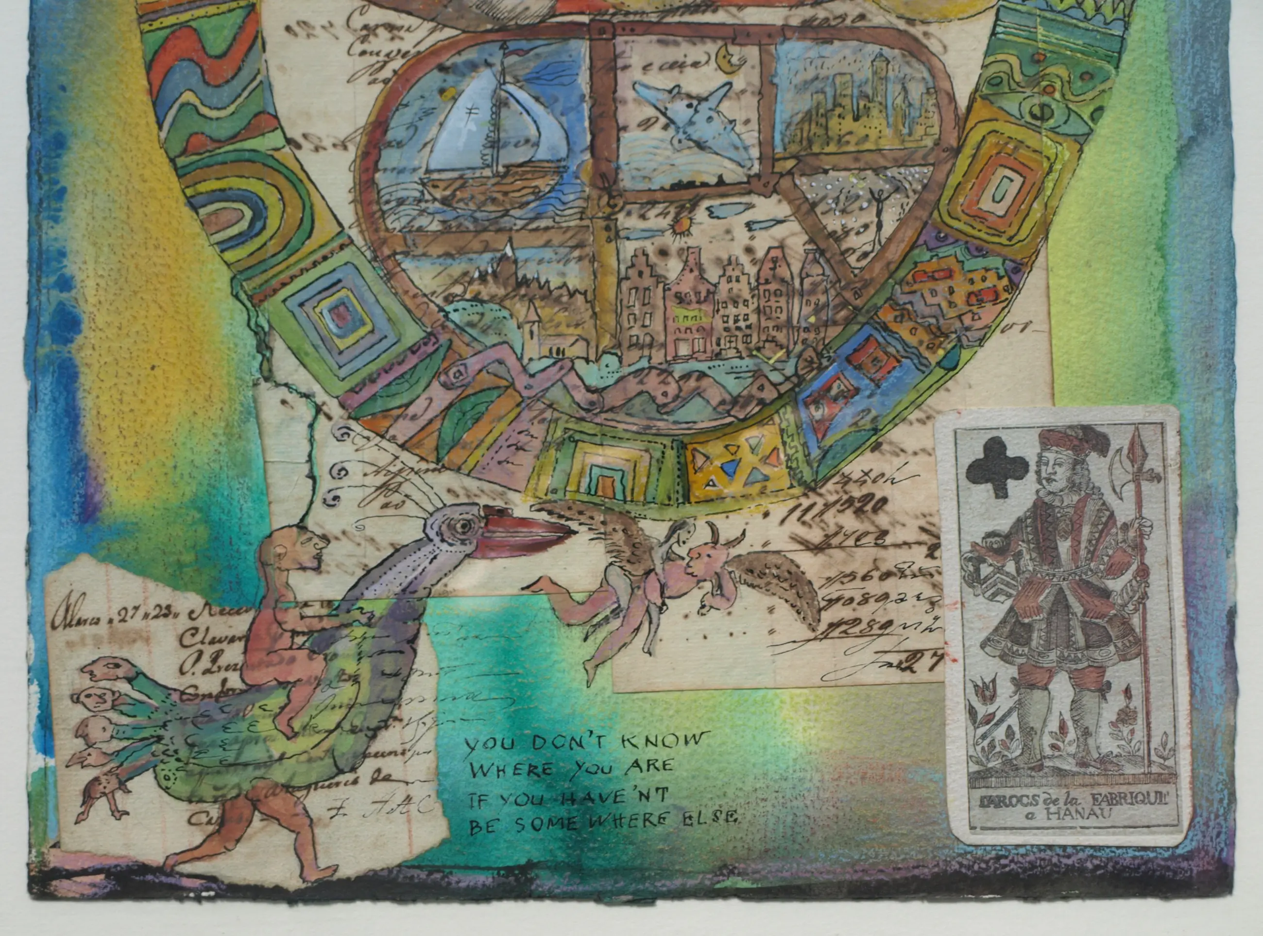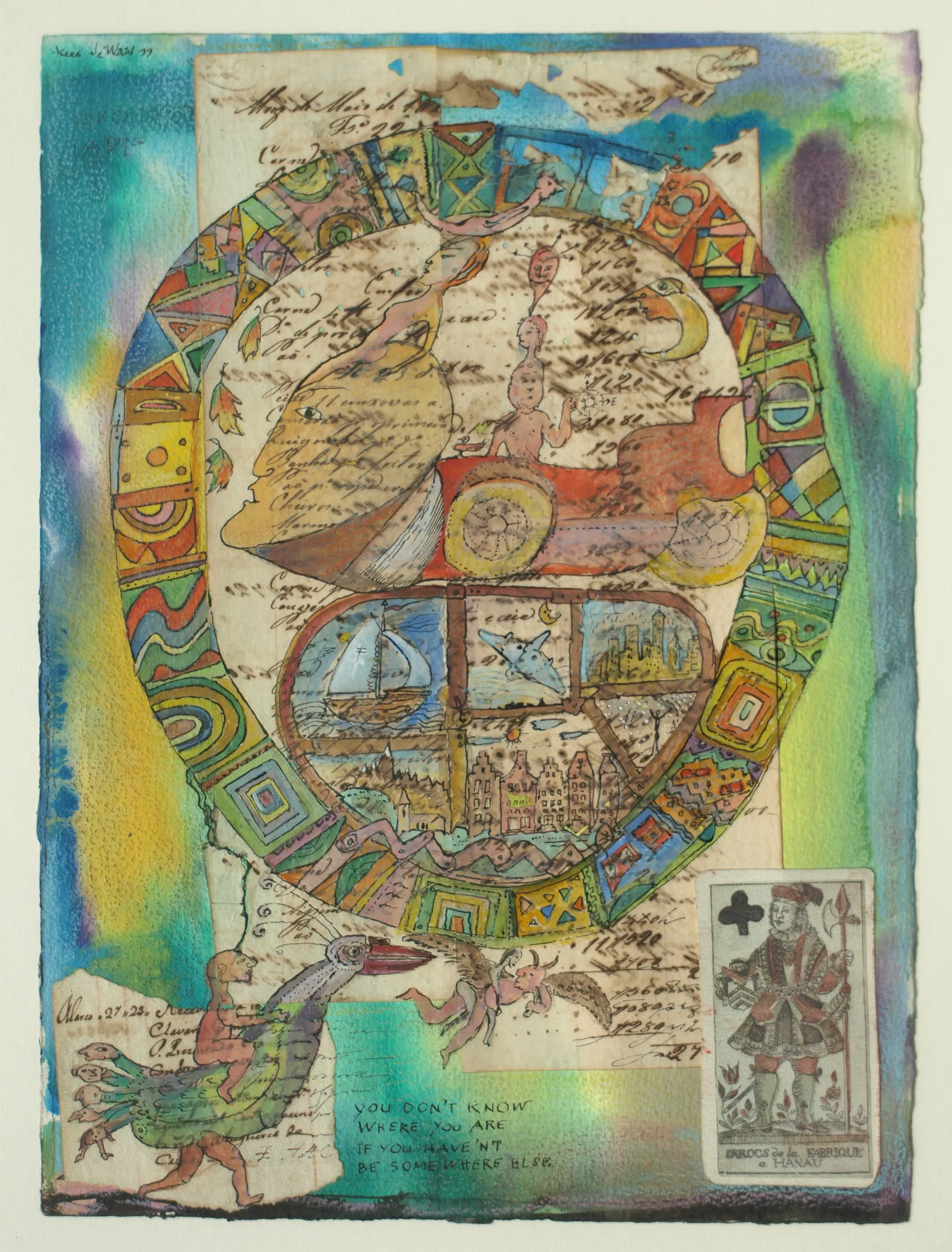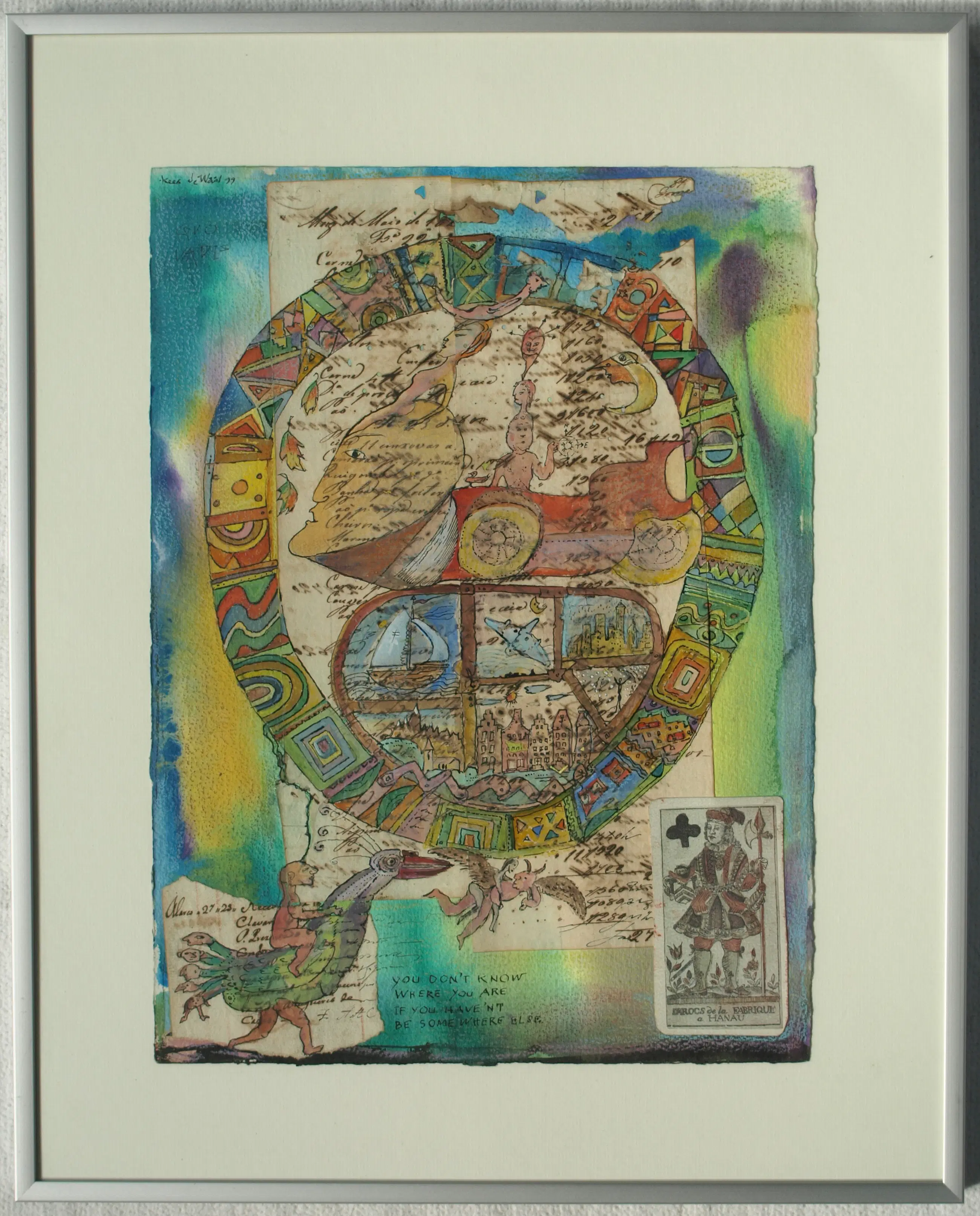 Informatie over de kunstenaar: Kees de Waal (Bussum, 1922 – New York (VS), juni 2025), ondernemer, collagist, graficus, tekenaar en schilder. -Opleiding: Kees de Waal is van jongs af voorbestemd voor het textielbedrijf van zijn vader. Hij volgt daarom de Hogere Textielschool in Enschede. Tijdens de Tweede Wereldoorlog wordt hij door z'n opvallend expressieve tekeningen van mensen, aangenomen op de Academie te Arnhem. Hij volgt daar van 1943 tot 1945 een opleiding schilderen en grafiek. Daarna leidt hij al die jaren in feite een dubbel leven. Aan de ene kant doet hij de commerciële leiding, reclame en de styling van de door hem in 1962 opgezette modeketen ‘HIJ’ (later opgegaan in het huidige ‘WE Fashion’). Aan de andere kant werkt hij – voor zover de tijd het toelaat – aan zijn ontwikkeling als kunstenaar. In 1984 trok Kees de Waal zich terug uit de modeketen en wordt hij een gedreven kunstenaar die door middel van zijn kleurige en figuratieve grafische werken een kritisch commentaar geeft op het wereldwijde doen en laten van de mens. Daarin identificeert hij zich met een vogel die in zijn vrije vlucht, al zwevend boven de aarde, het nietige menselijke bestaan waarneemt. Hij maakte schilderijen, kleuretsen, aquarellen, collages, grafiek, boekillustraties en linoleum- en houtsneden. Kees de Waal woonde en werkte voornamelijk in Greenwich Village (New York, USA) samen met zijn vrouw en collega-kunstenaar Deidre. Door de jaren heen heeft hij al vele succesvolle exposities gehad en zijn werk is opgenomen in verschillende collecties over de hele wereld.