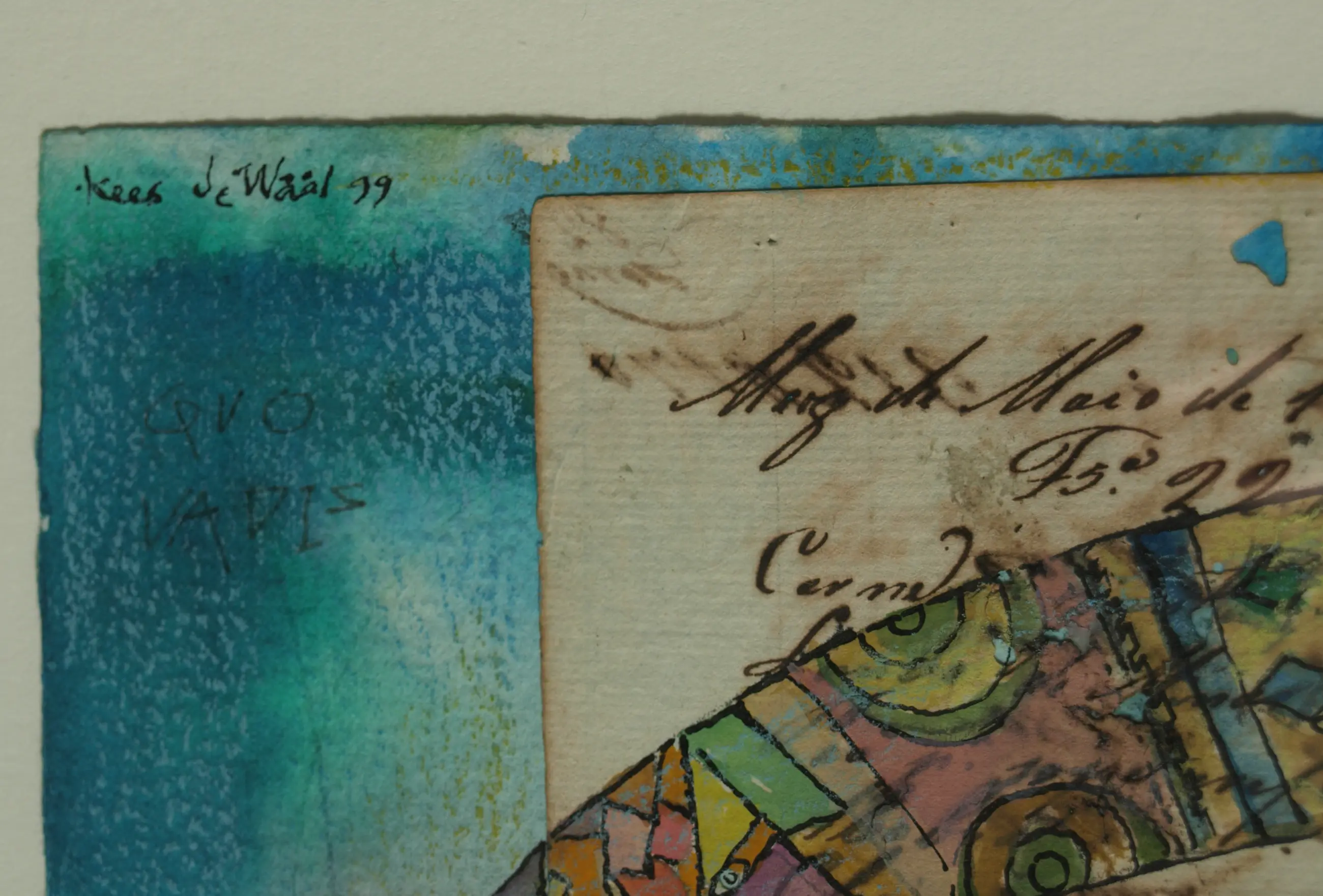 Een werk uit 1999 van de Nederlandse kunstenaar en oprichter van modeketen ‘HIJ’ Kees de Waal (1922-2025). -Techniek: een combinatie van o.a. inkt, aquarel en collage. -Gesigneerd linksboven en ingelijst in een aluminium lijst met passe-partout en glasplaat. Klaar op op te hangen. -Afmetingen: Lijst, 51 x 41 x 2 cm. Beeld, 38½ x 28½ cm. -Herkomst: Galerie Langewaal, Texel. -Conditie: In zeer goede staat. Zie ook de foto’s voor een eigen indruk. Kan zo aan de muur.